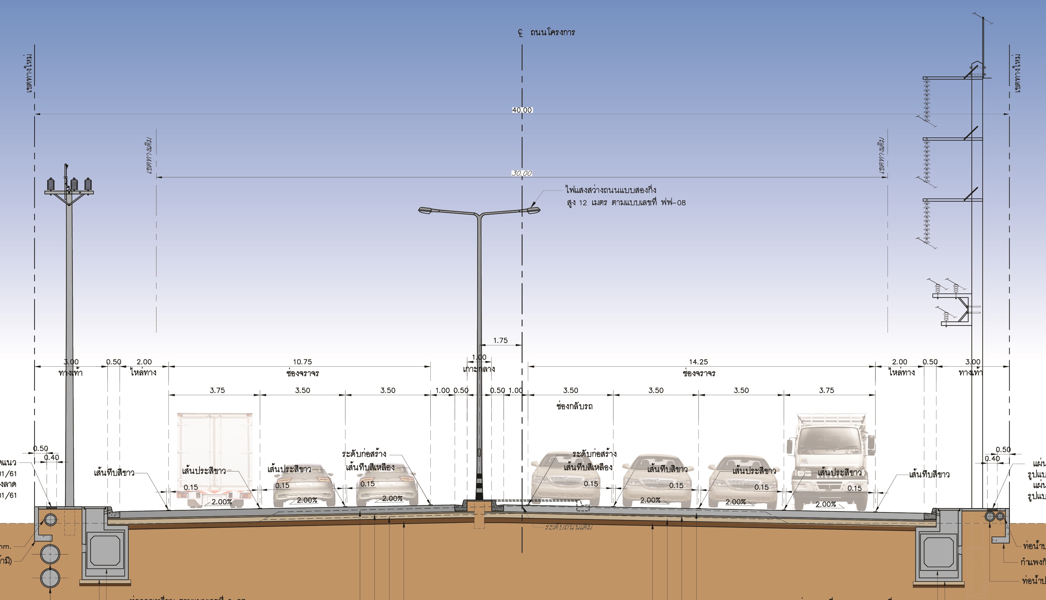ที่ปรึกษาจะจัดทำแนวสายทาง และ/หรือ รูปแบบของถนนโครงการเบื้องต้น โดยใช้ข้อมูลที่ได้จาก