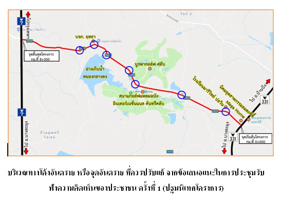 จากการเปิดเวทีรับฟังความคิดเห็นของประชาชน ได้เปิดโอกาสให้ผู้เข้าร่วมประชุมได้ซักถามในประเด็นต่าง ๆ ที่เกี่ยวข้องกับการดำเนินโครงการ ตลอดจนให้ข้อเสนอแนะ / ข้อคิดเห็น รวมทั้งข้อวิตกกังวล ซึ่งคณะผู้ศึกษาจะได้นำไปประกอบการศึกษาและพิจารณาปรับปรุงการศึกษาออกแบบในขั้นตอนต่อไป ซึ่งสามารถสรุปประเด็นต่าง ๆ ที่ได้จากการรับฟังความคิดเห็นและแบบแสดงความคิดเห็นต่อการประชุม ได้ดังนี้