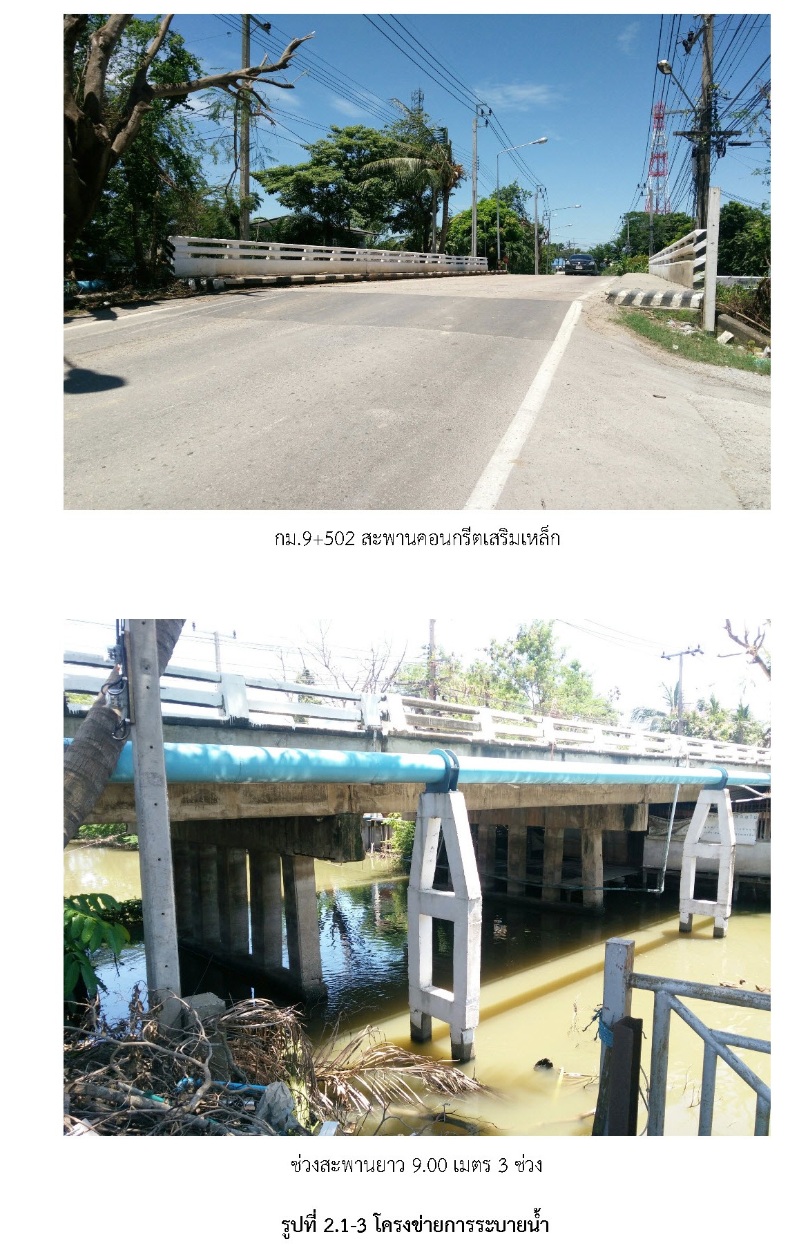 - กม.10+550 สะพานคอนกรีตเสริมเหล็กเชื่อมต่อถนนโครงการ เข้าหมู่บ้านเจริญทรัพย์ ซึ่งบริเวณนี้ต้องทำการรื้อย้ายระบบสาธารณูปโภค เนื่องจากอยู่ในแนวเขตทางโครงการ