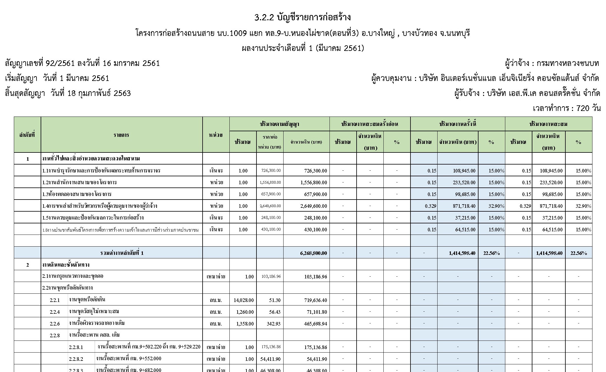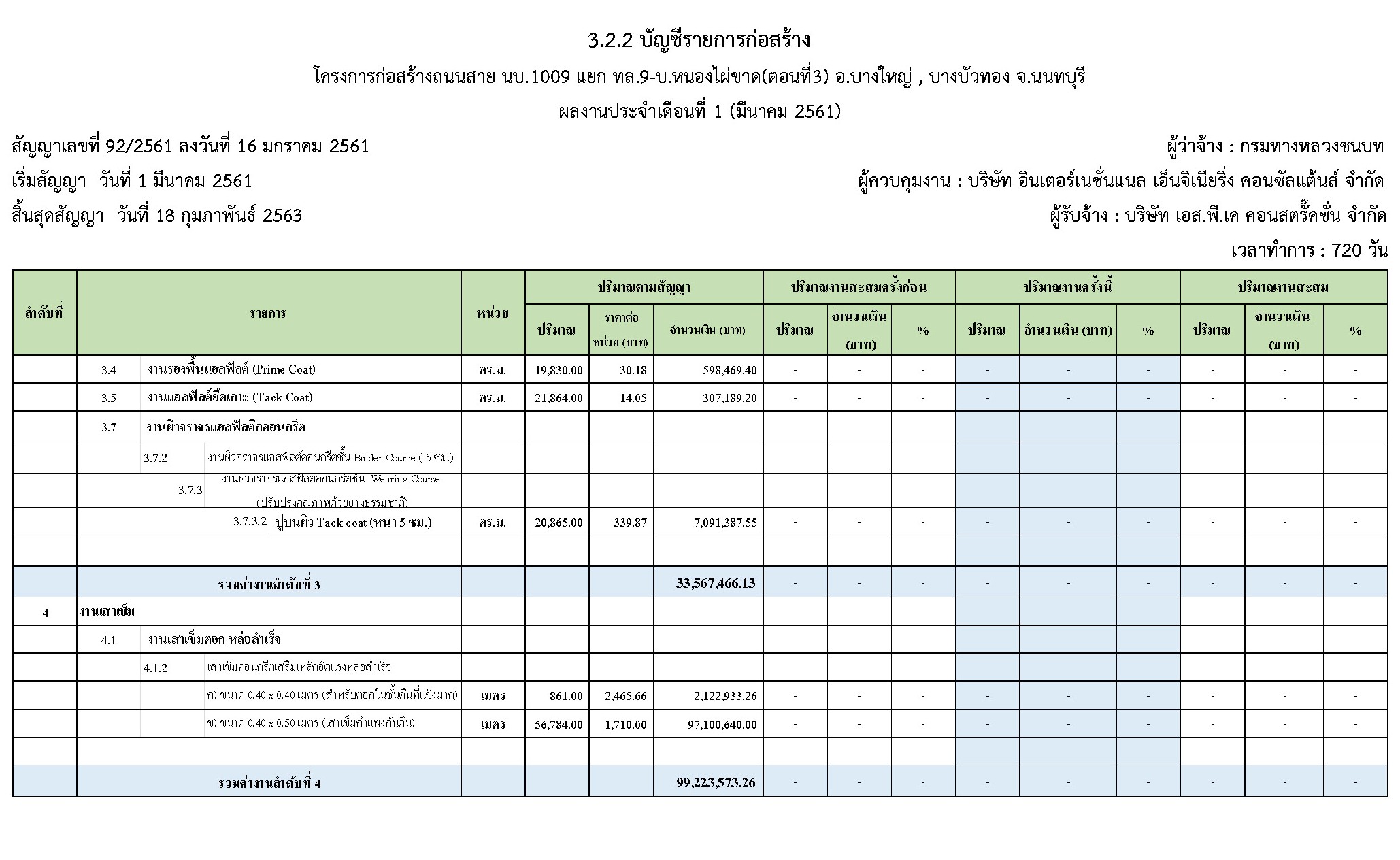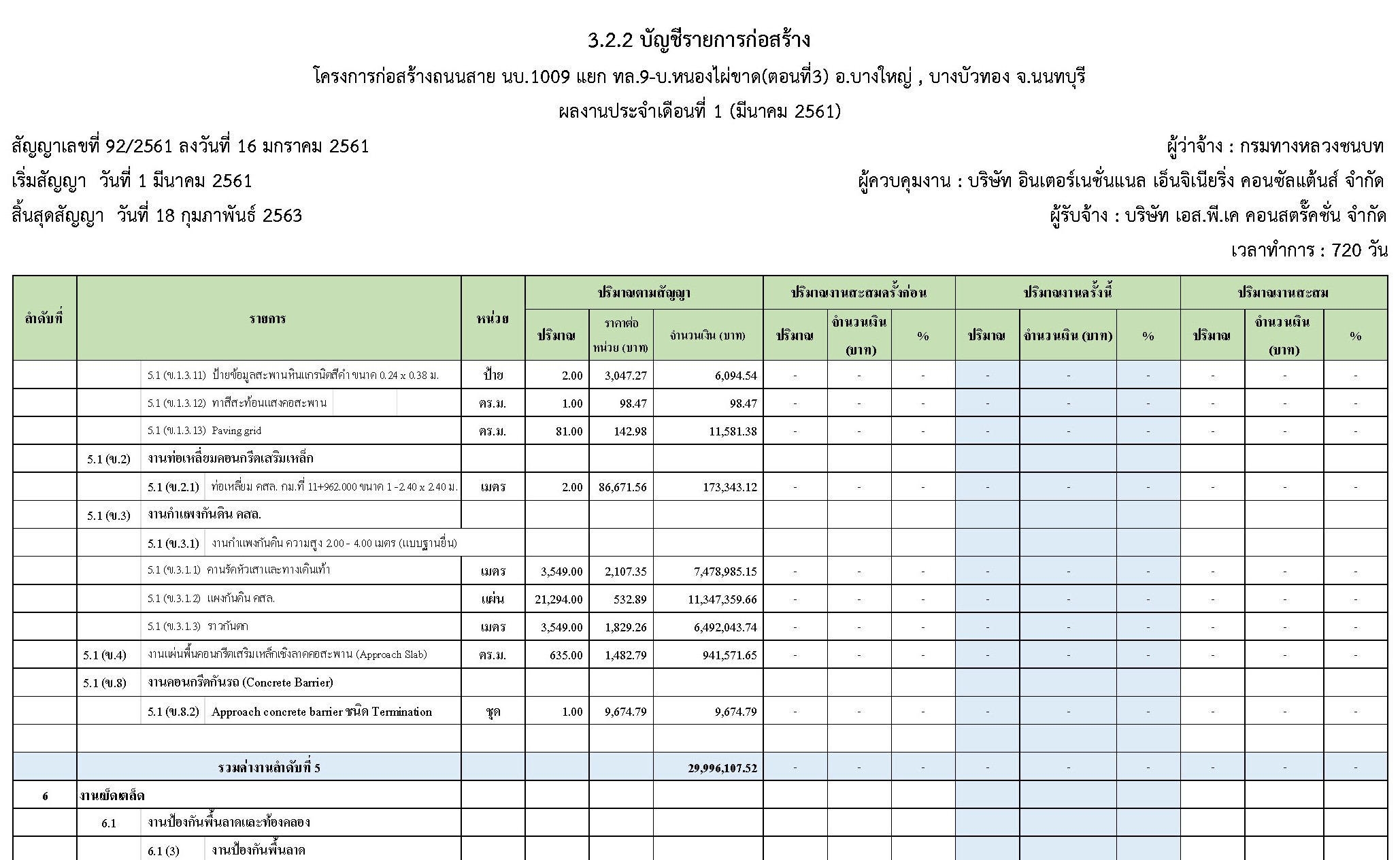 ในระหว่างวันที่ 1 มีนาคม 2561 ถึงวันที่ 31 มีนาคม 2561 ผู้รับจ้างได้ดำเนินงานในส่วนต่างๆดังนี้