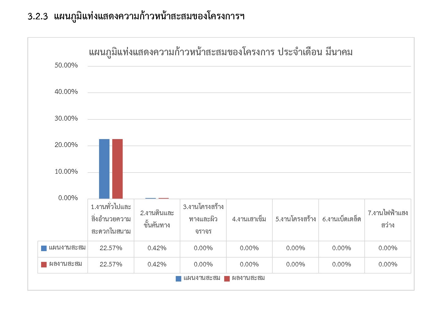 3.2.3 แผนภูมิแท่งแสดงความก้าวหน้าสะสมของโครงการฯ