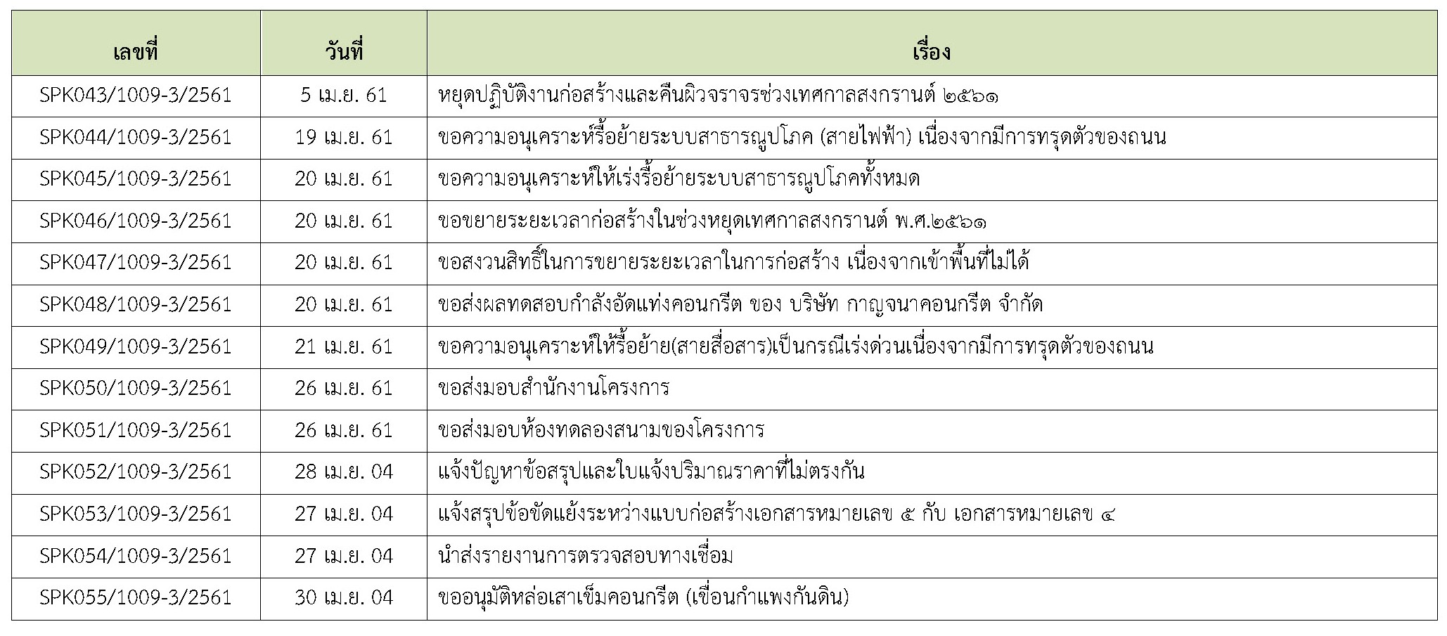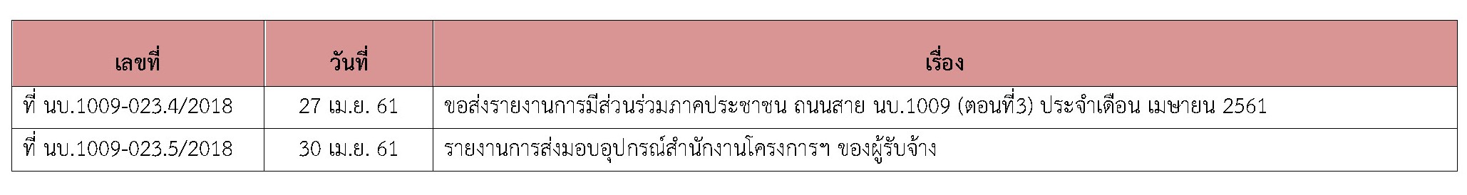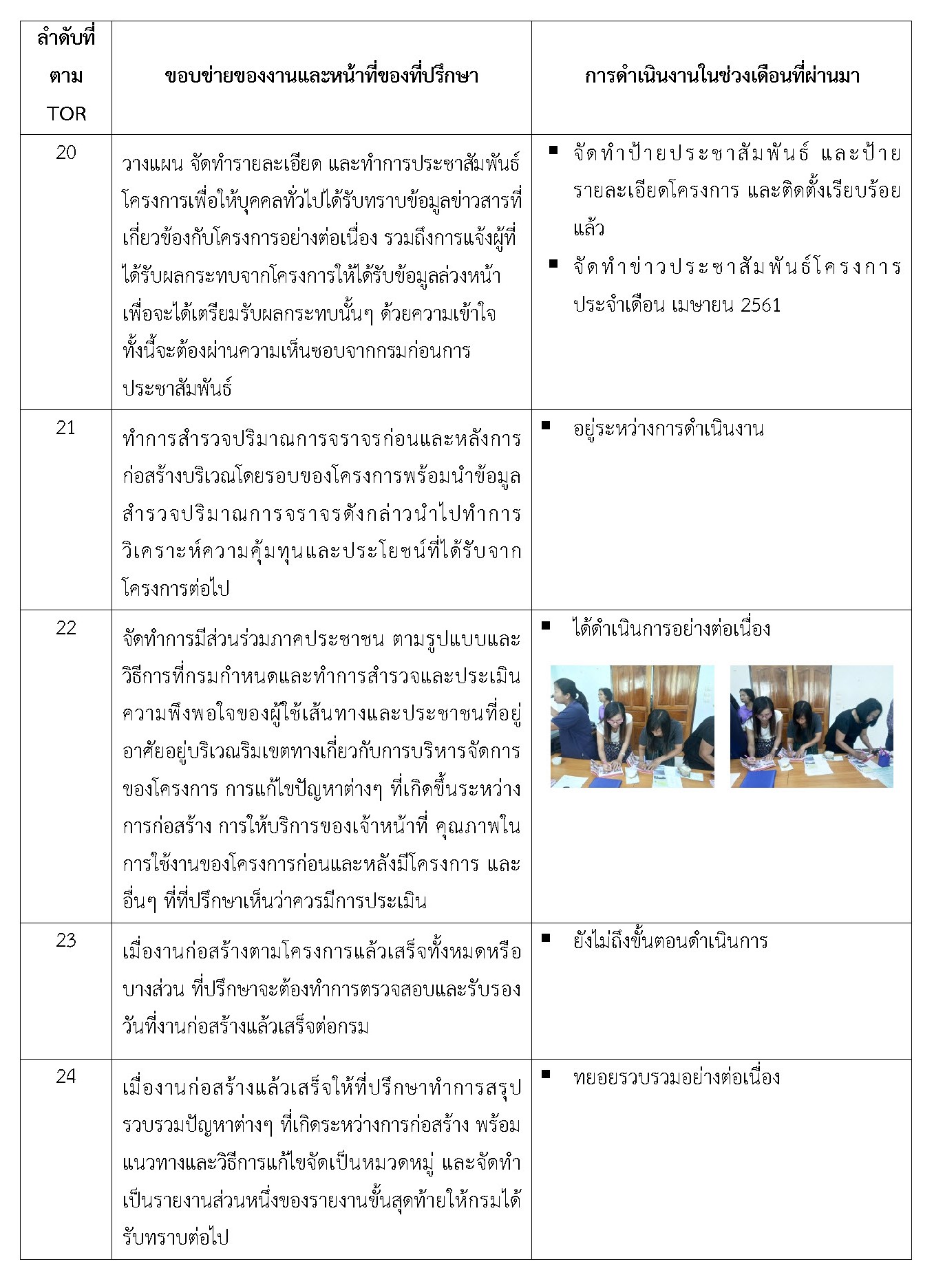 - จัดทำรายงานการควบคุมงานก่อสร้าง ประจำเดือนเมษายน 2561