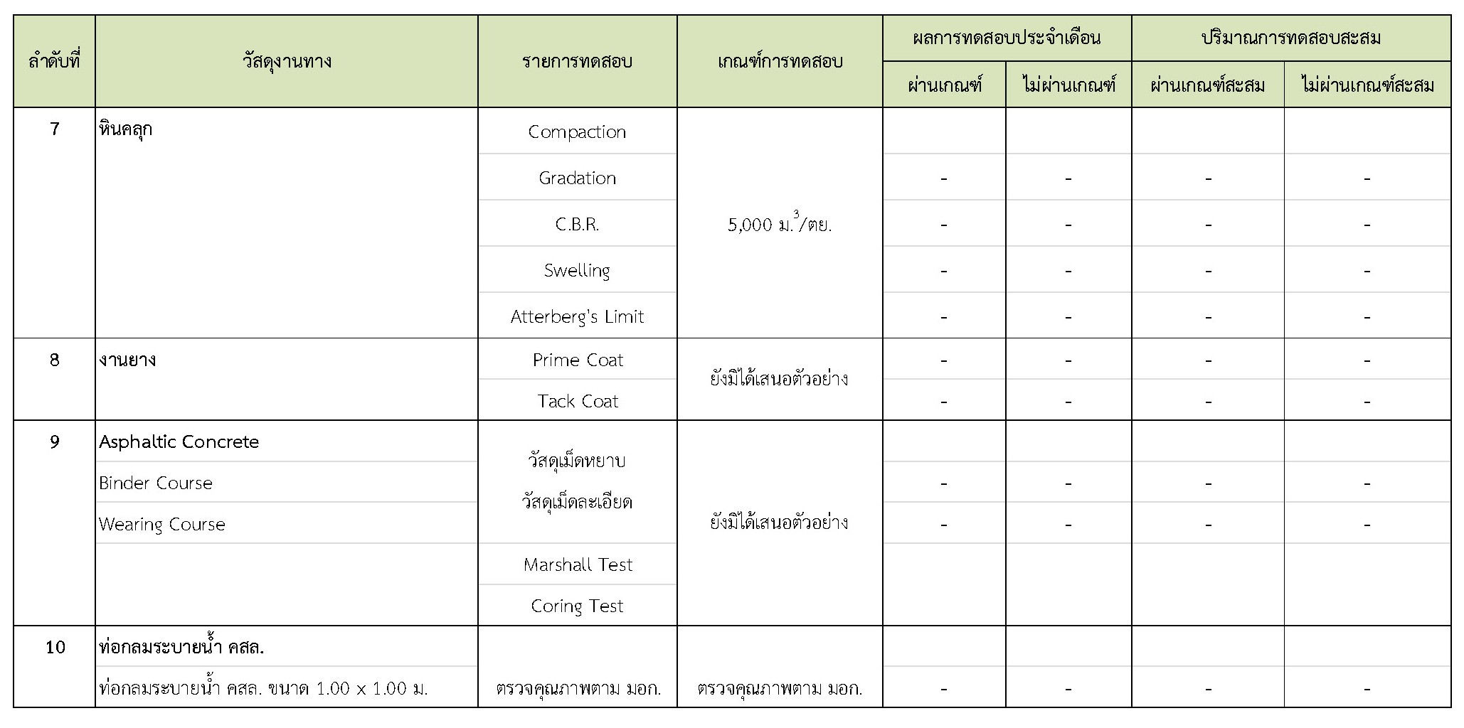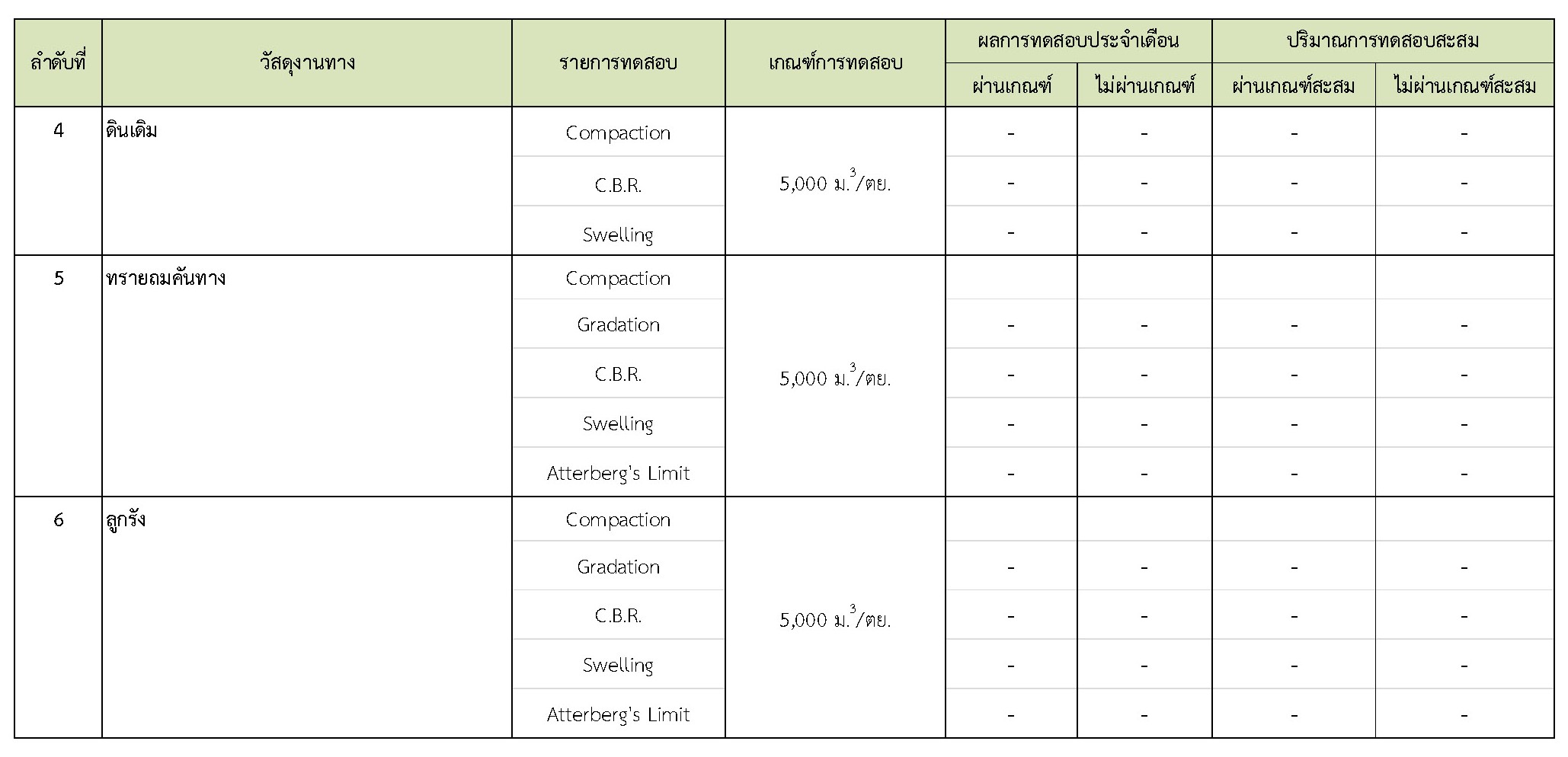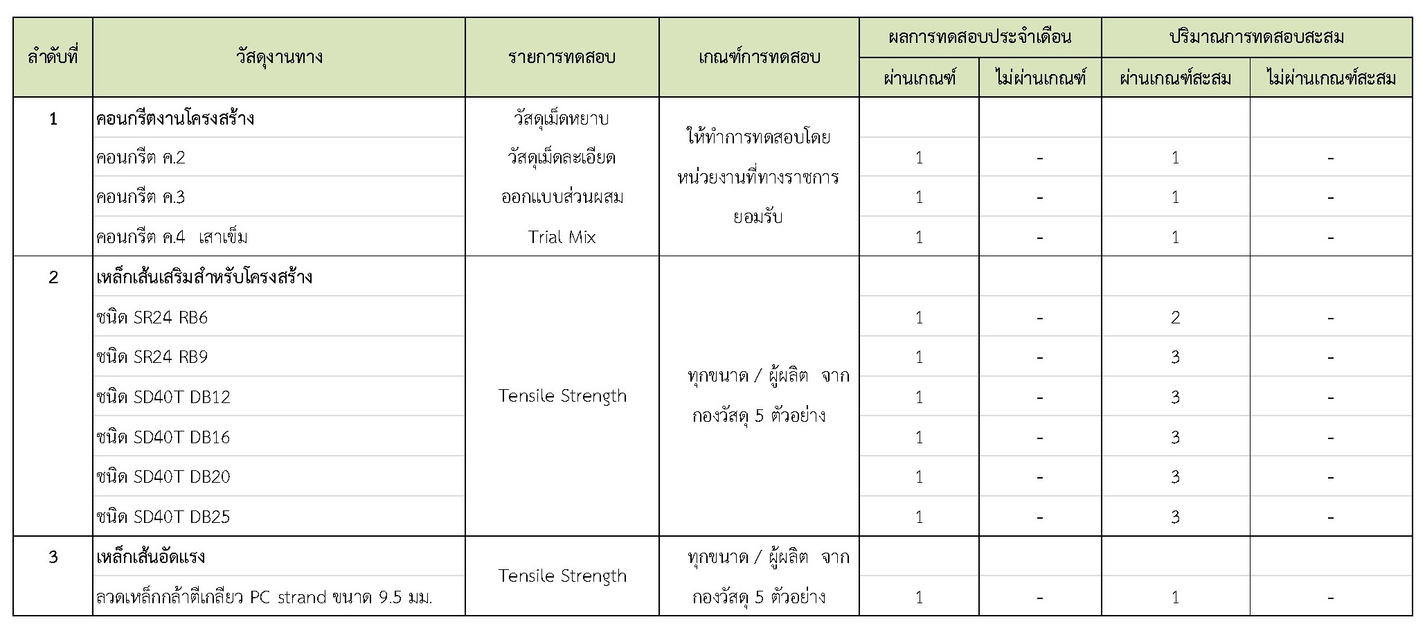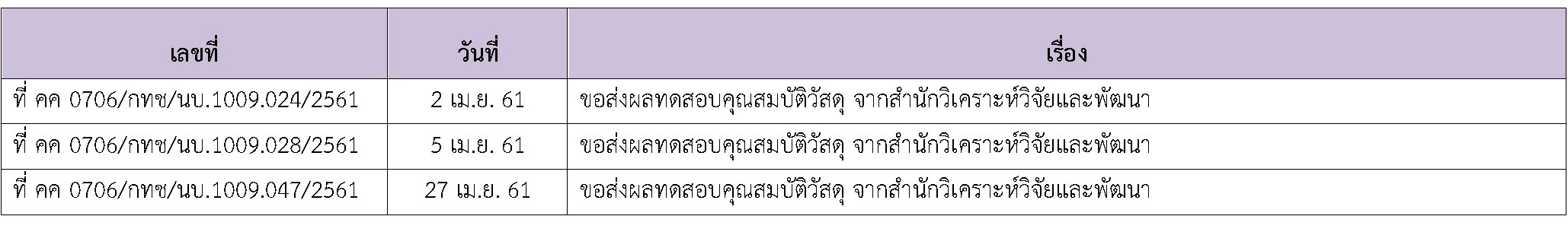 ในช่วงระหว่างวันที่ 1-30 เมษายน 2561 ผู้รับจ้างได้จัดส่งวัสดุเพื่อทำการทดสอบ