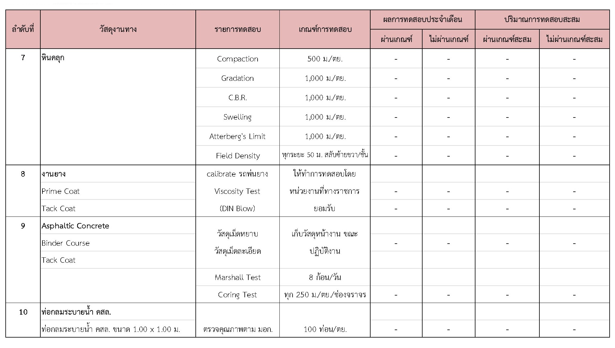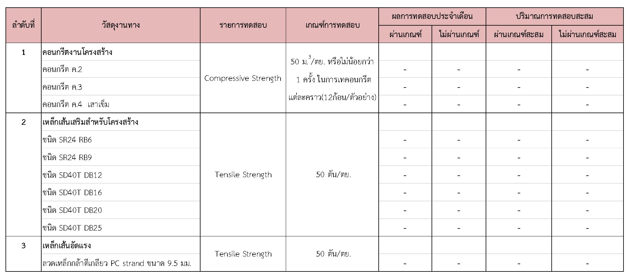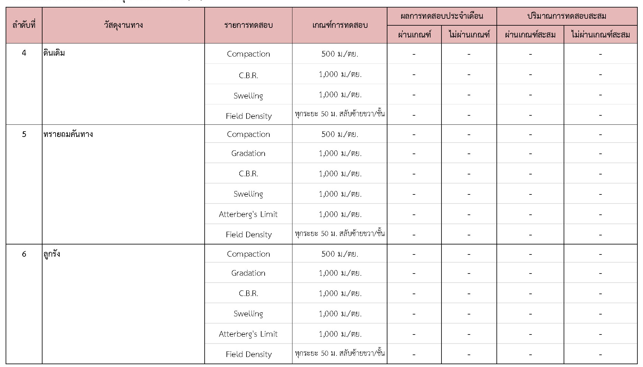 ในช่วงระหว่างวันที่ 1-30 เมษายน 2561 ผู้รับจ้างได้จัดส่งวัสดุเพื่อทำการทดสอบ