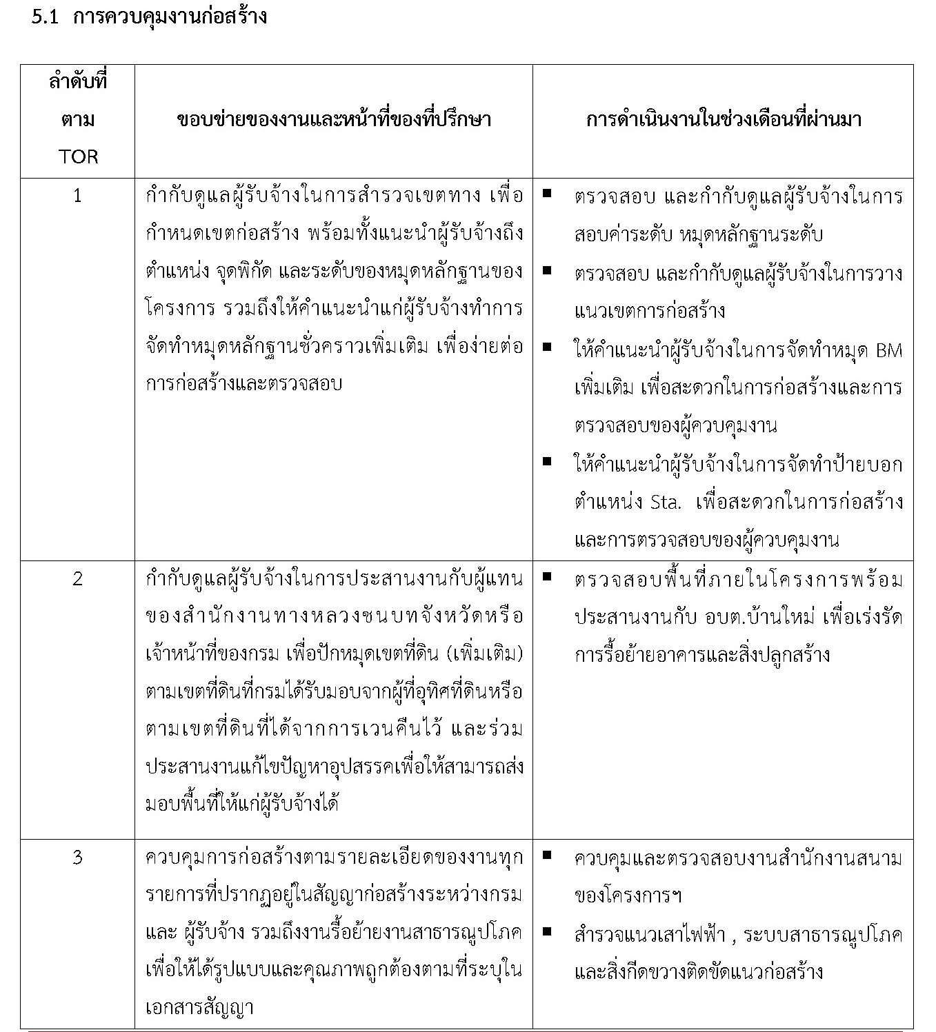 บทที่ 5 รายงานการปฏิบัติการของงานที่ปรึกษา