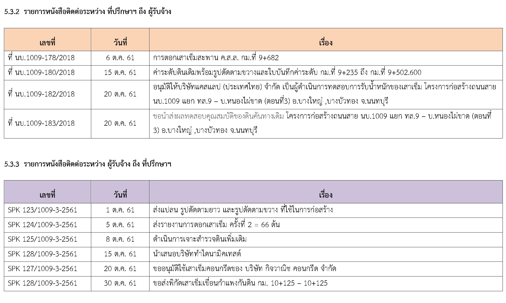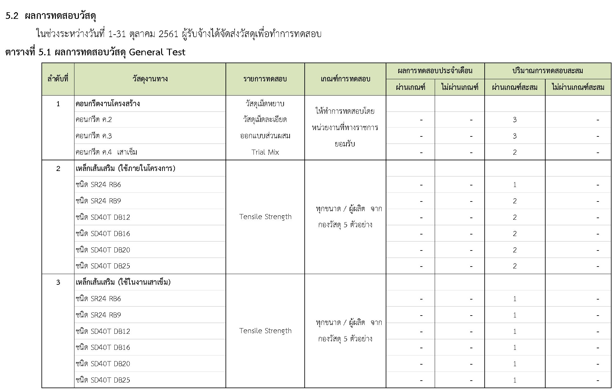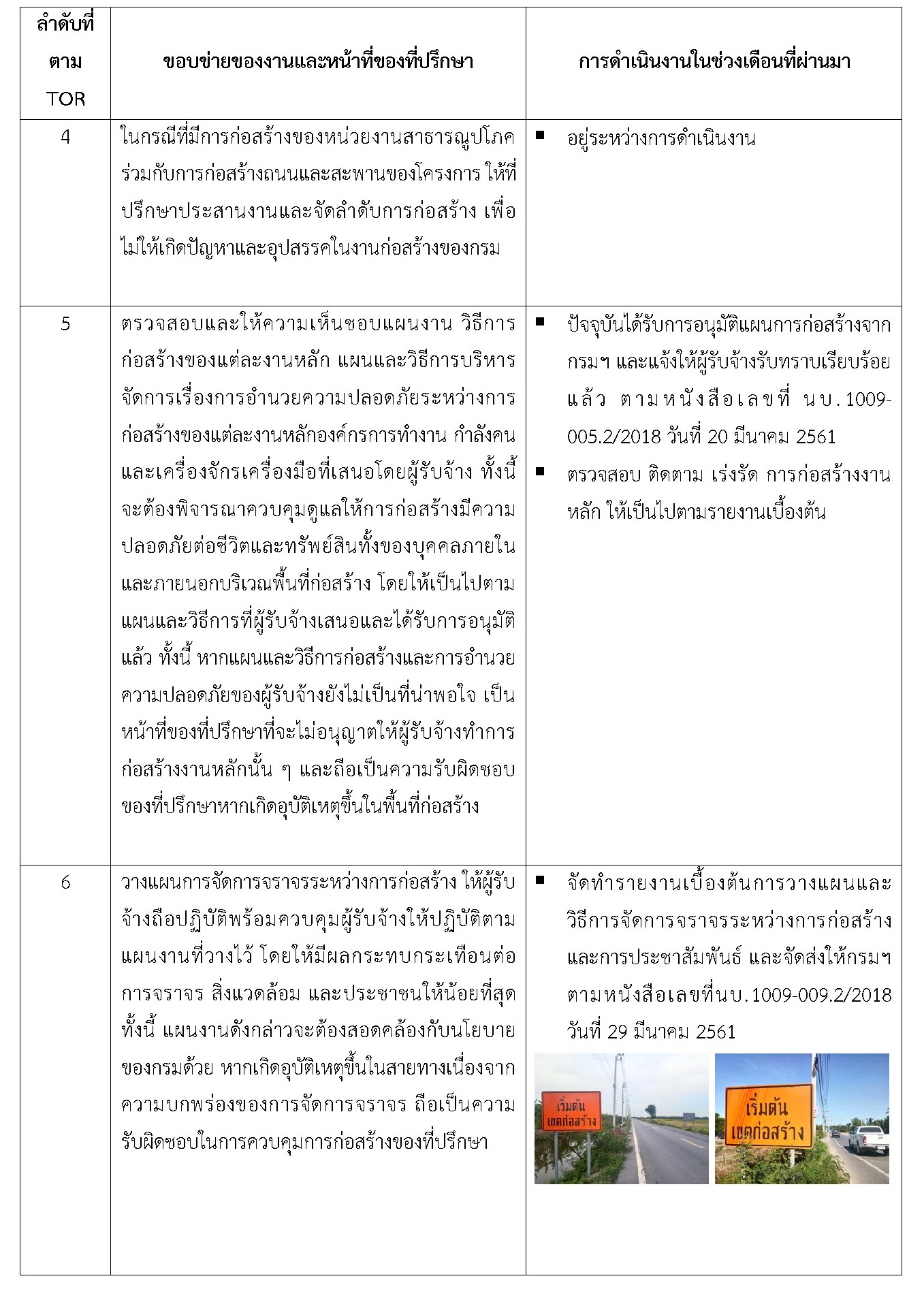 - จัดทำรายงานการควบคุมงานก่อสร้าง ประจำเดือนตุลาคม 2561