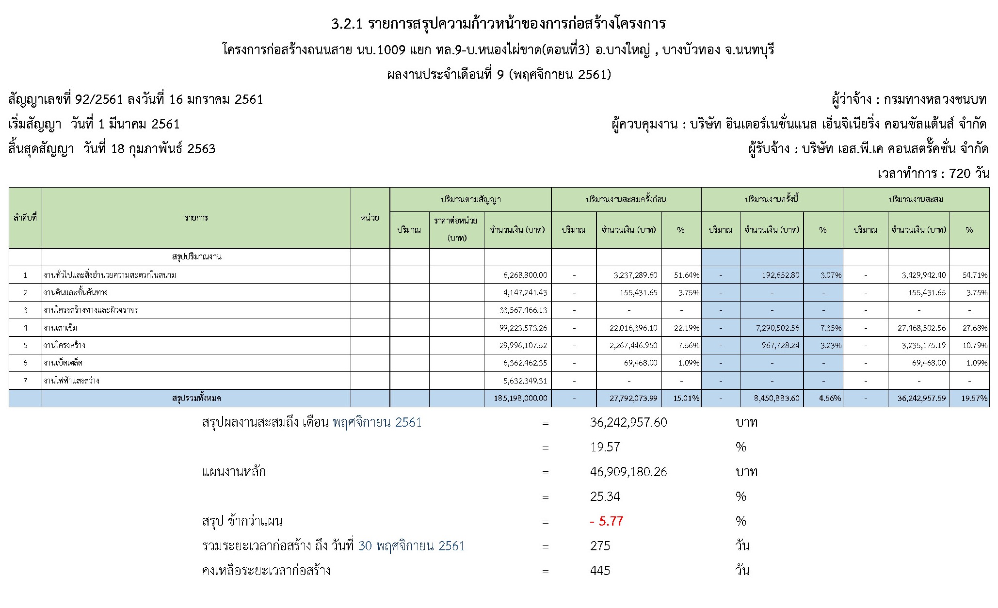 3.1 สรุปผลความก้าวหน้าของงานก่อสร้างโครงการ
