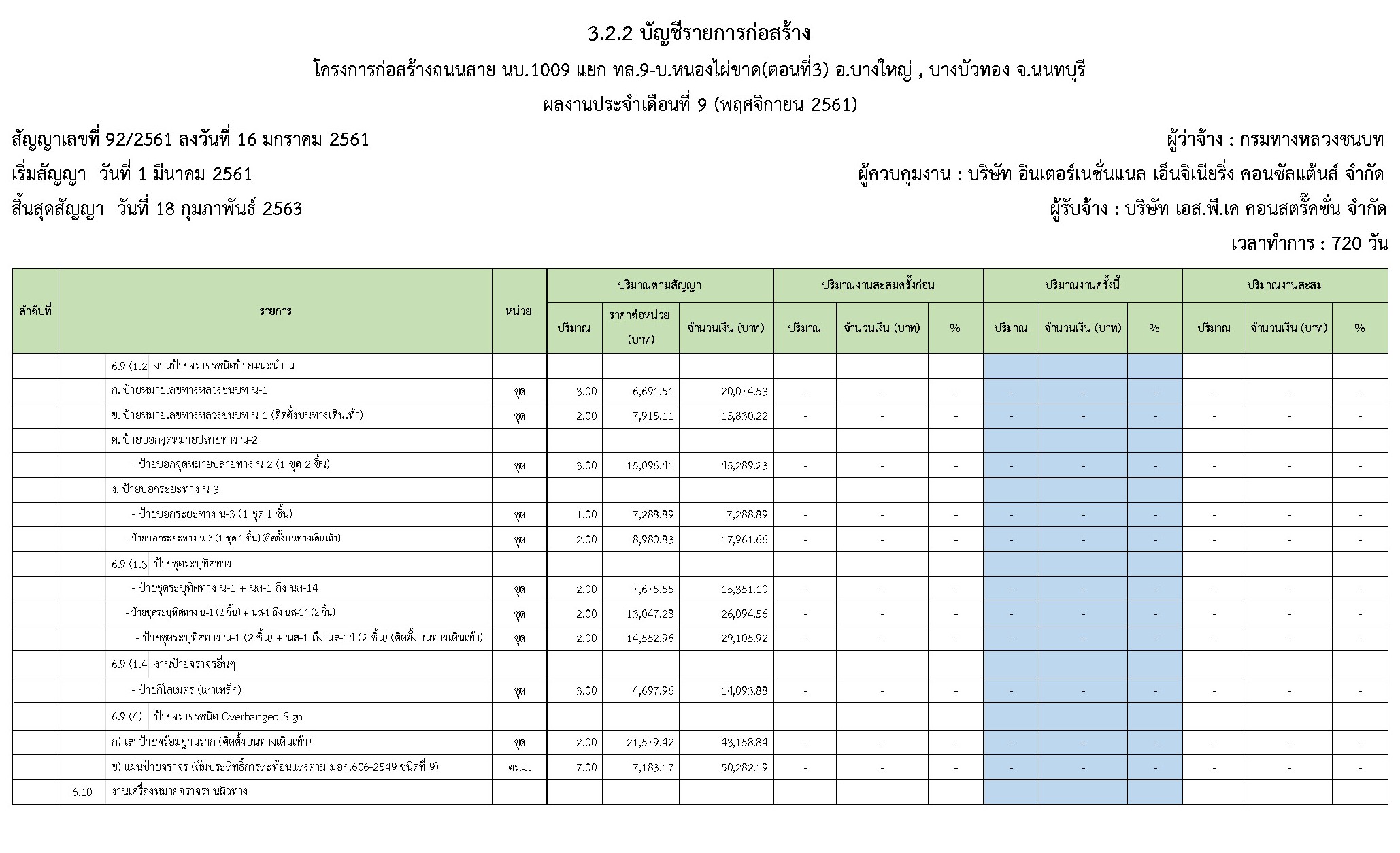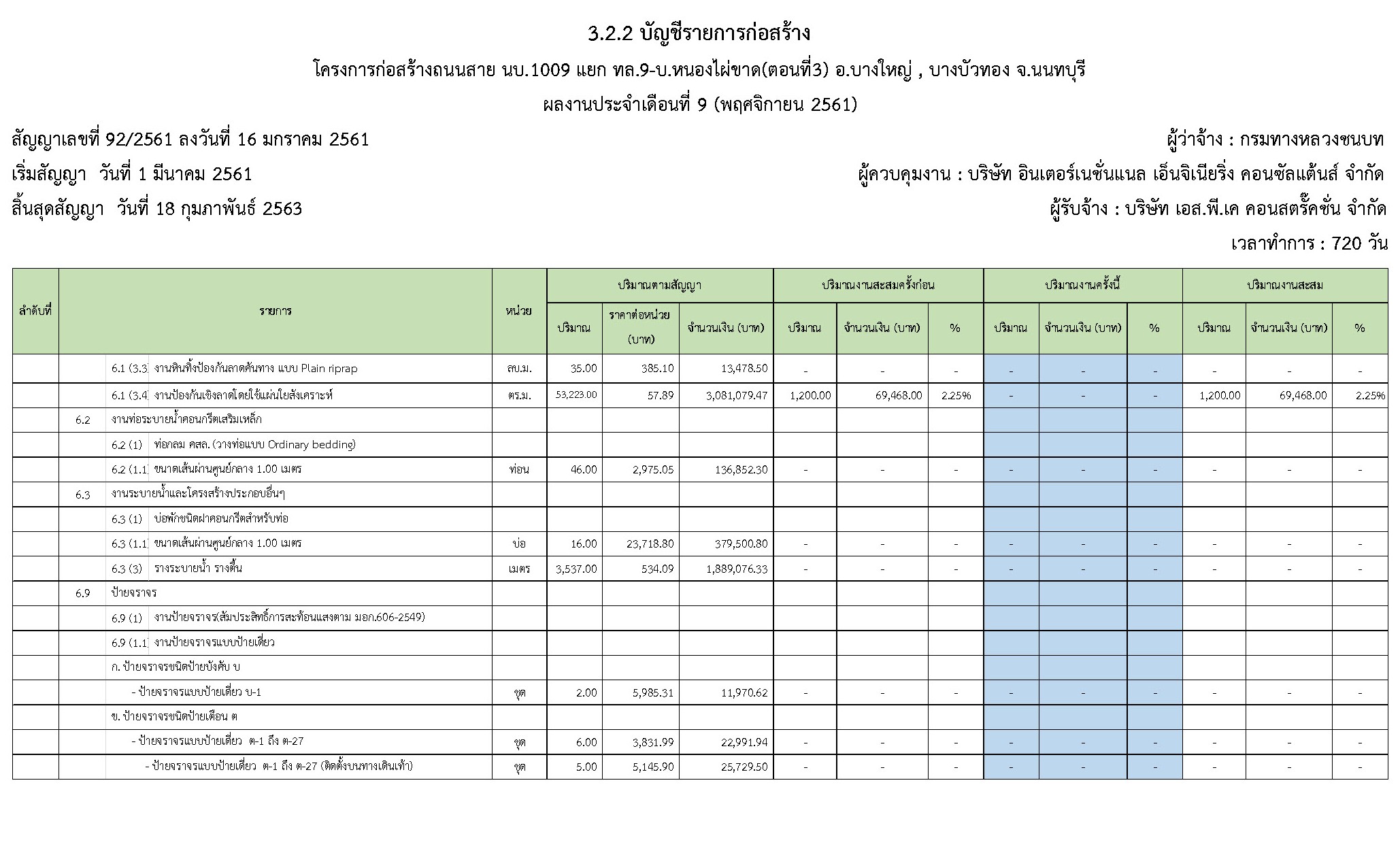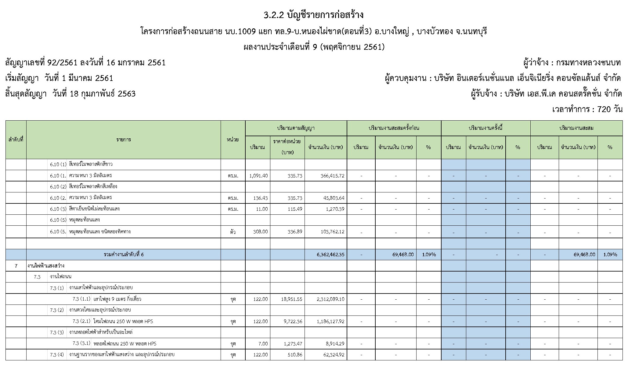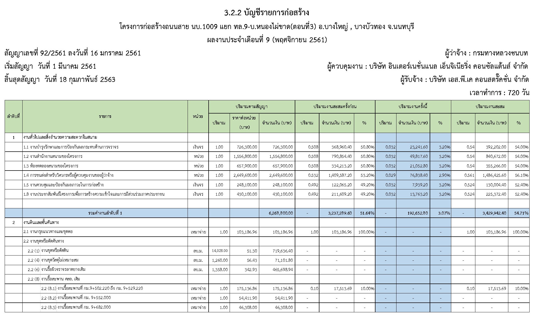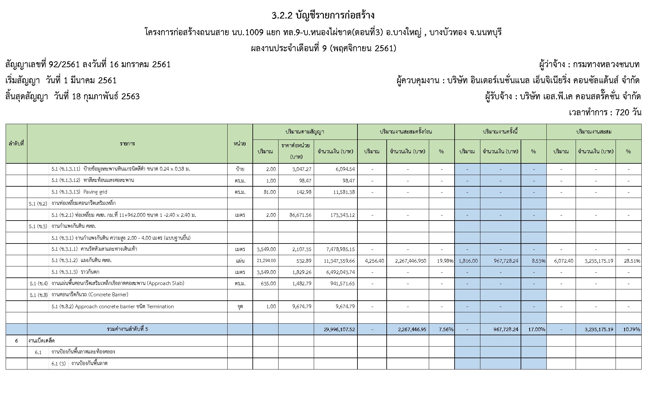 ในระหว่างวันที่ 1 พฤศจิกายน 2561 ถึง วันที่ 30 พฤศจิกายน 2561 ผู้รับจ้างได้ดำเนินงานในส่วนต่างๆดังนี้