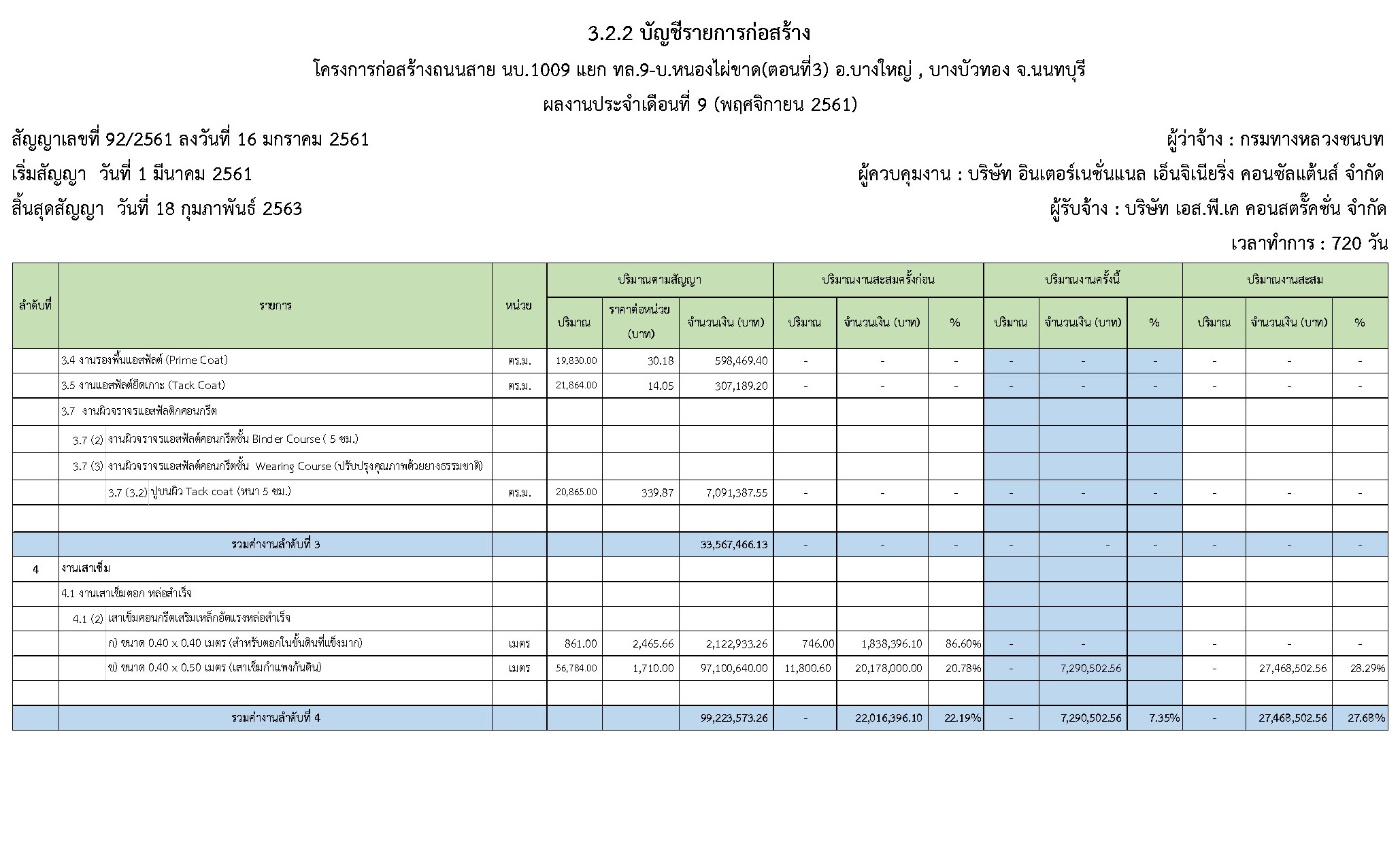3.2 ความก้าวหน้าของงานแยกตามรายการ