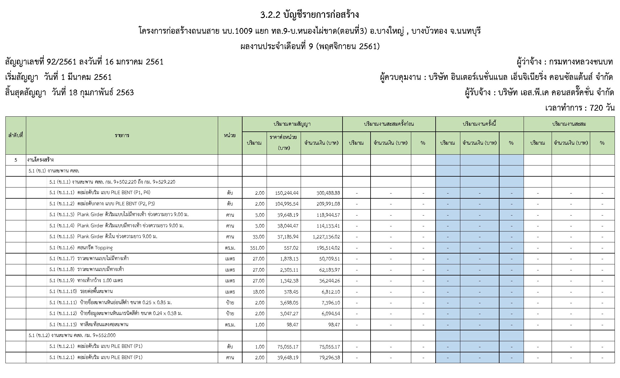 - ระยะเวลาก่อสร้างตามสัญญา : 720 วัน