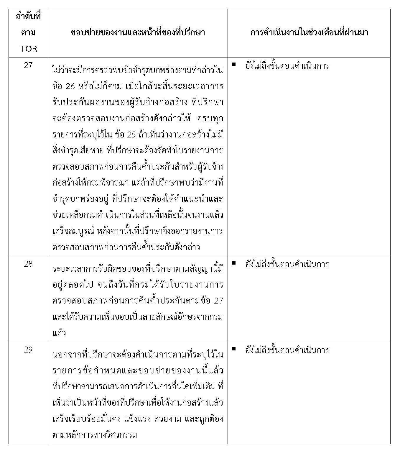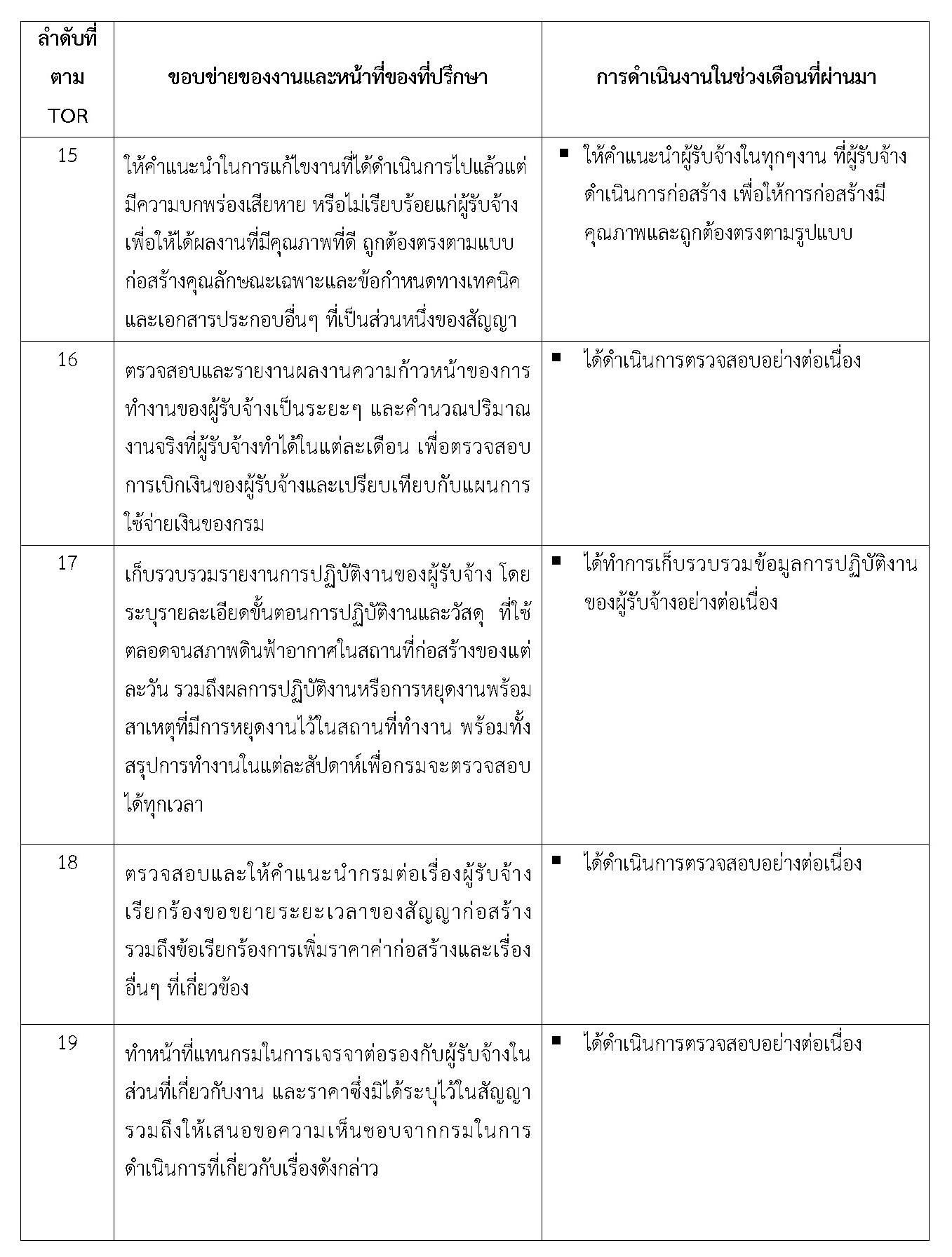 - จัดทำรายงานการปฏิบัติการของที่ปรึกษา ประจำเดือนพฤศจิกายน2561