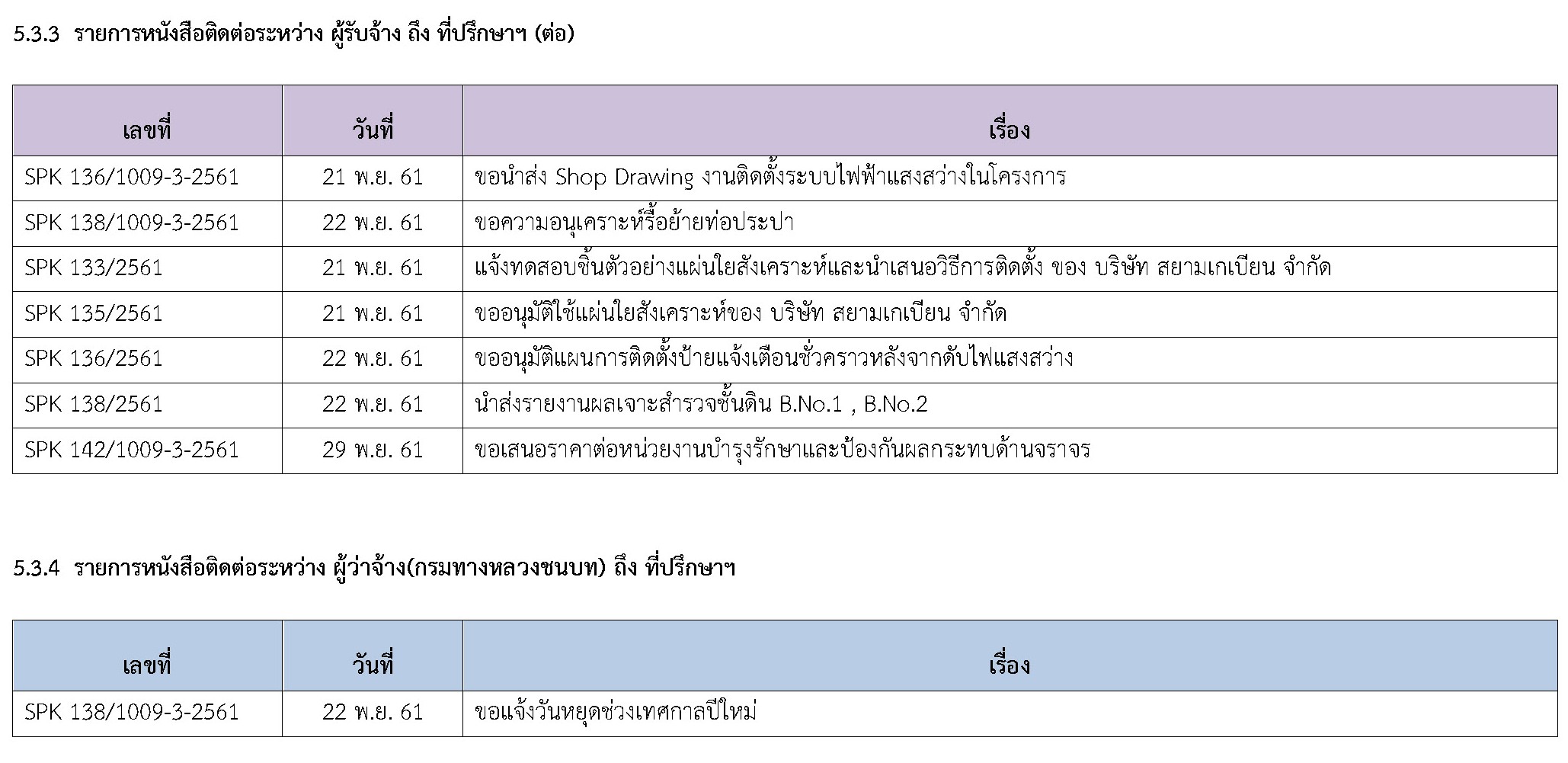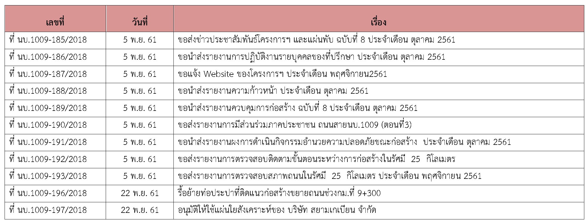 - จัดทำรายงานการควบคุมงานก่อสร้าง ประจำเดือนพฤศจิกายน 2561