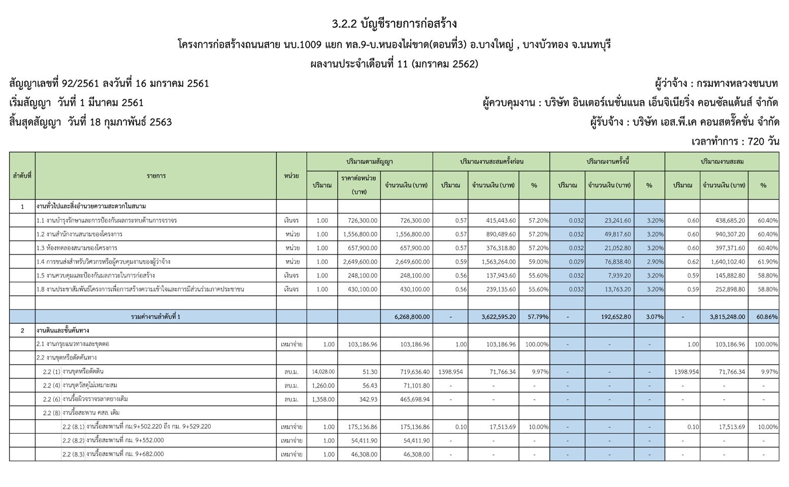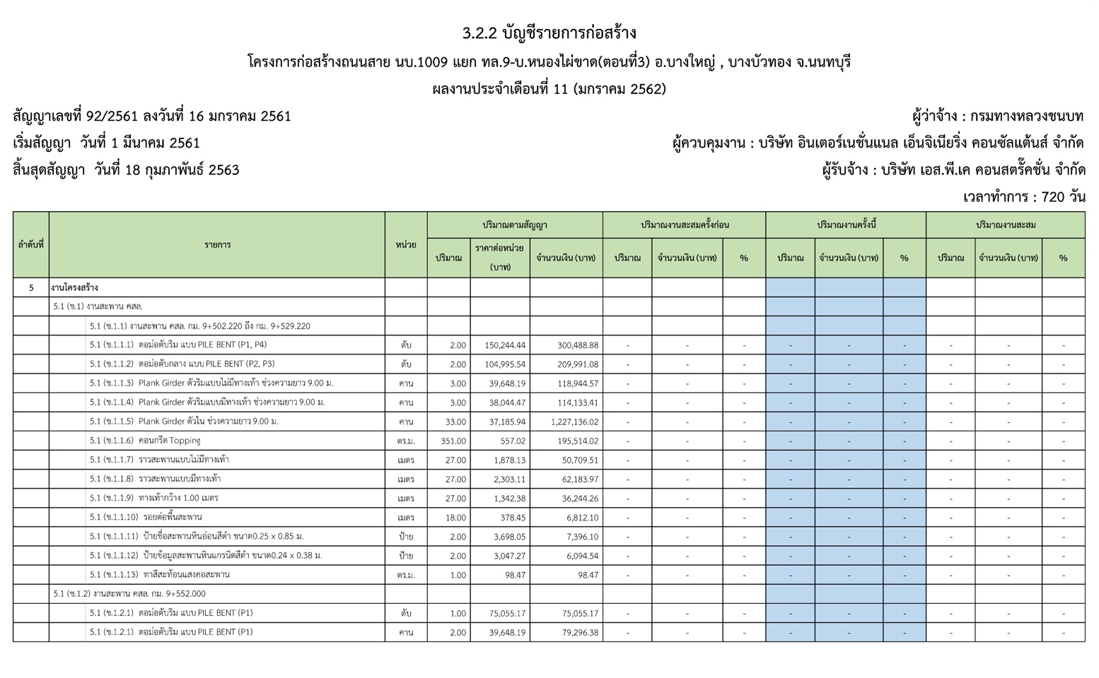 - ระยะเวลาก่อสร้างตามสัญญา : 720 วัน