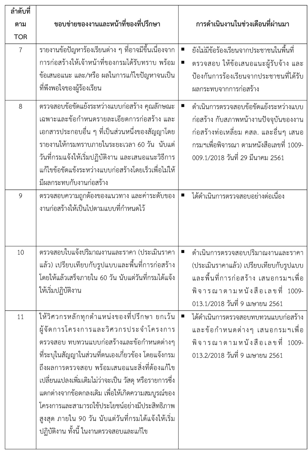 - จัดทำรายงานการควบคุมงานก่อสร้าง ประจำเดือนมกราคม 2562