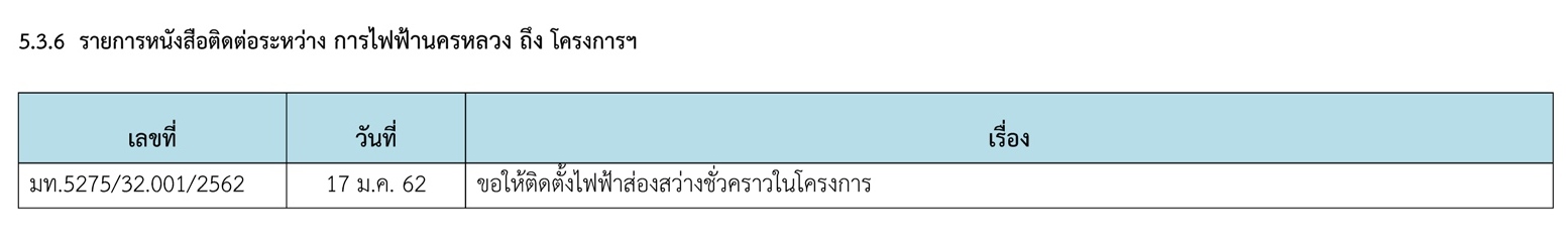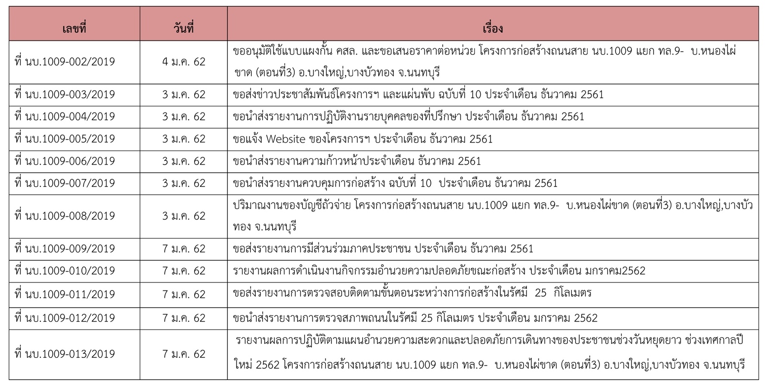 5.3.1 รายการหนังสือติดต่อระหว่าง ที่ปรึกษาฯ ถึง ผู้ว่าจ้าง(กรมทางหลวงชนบท)