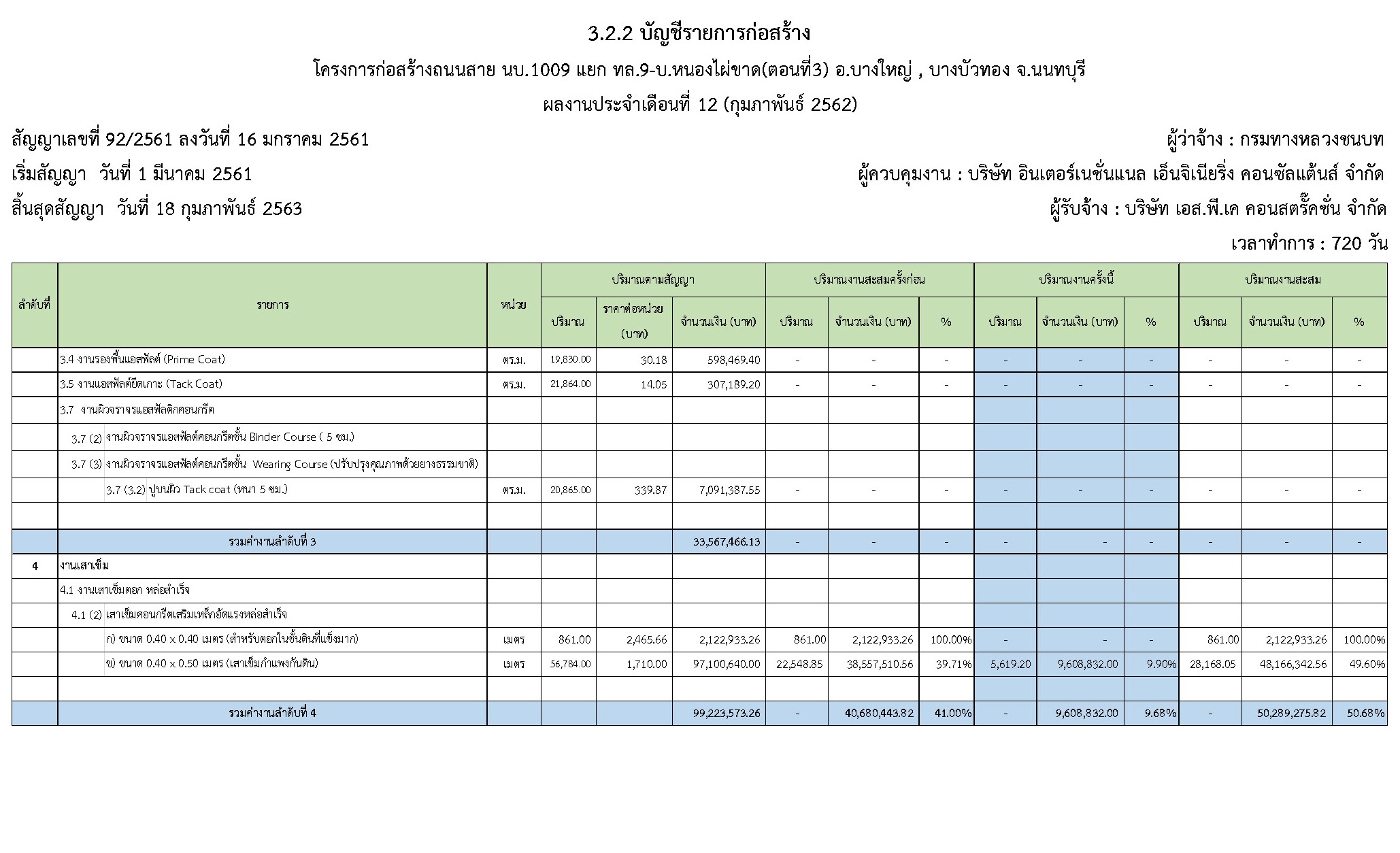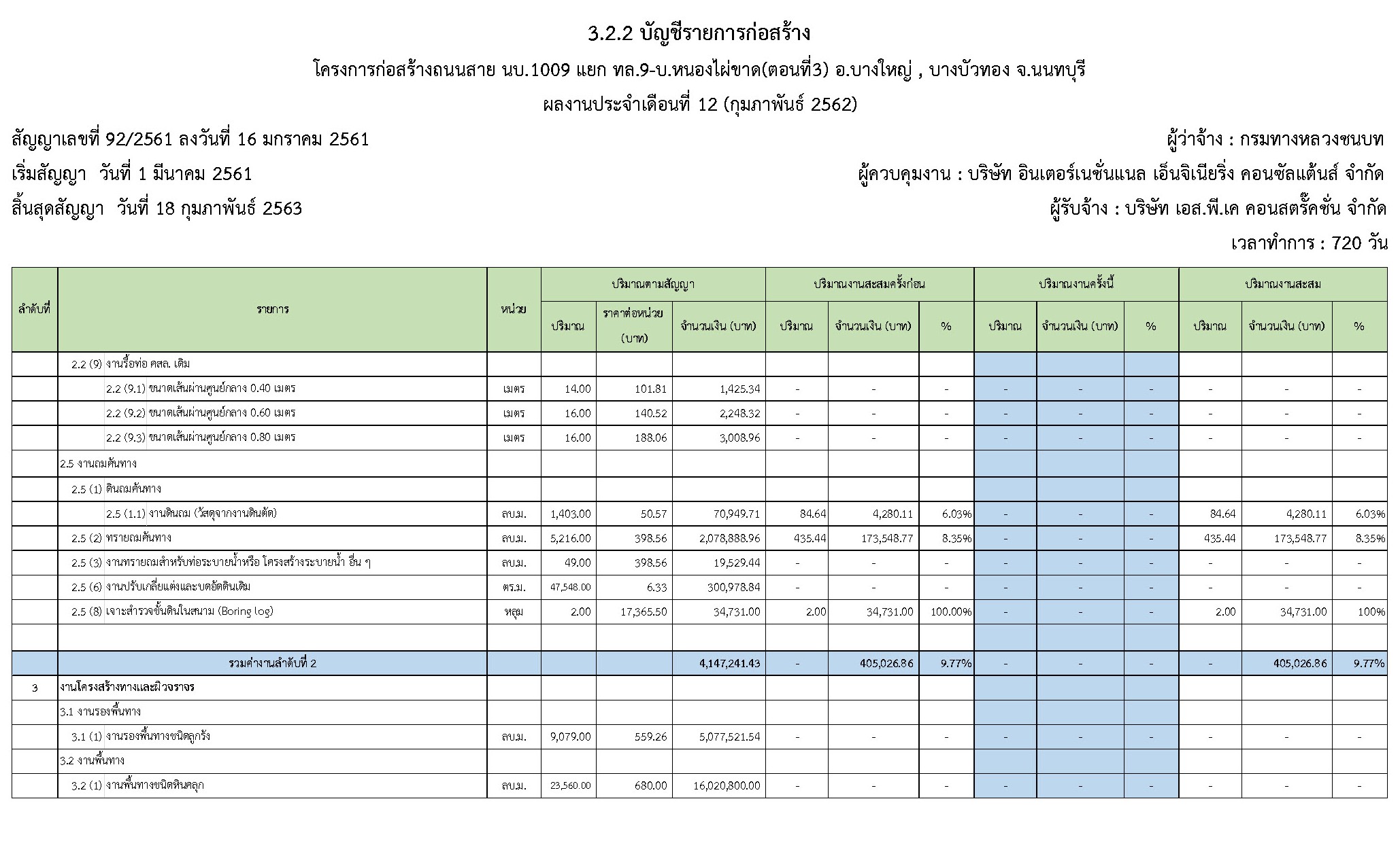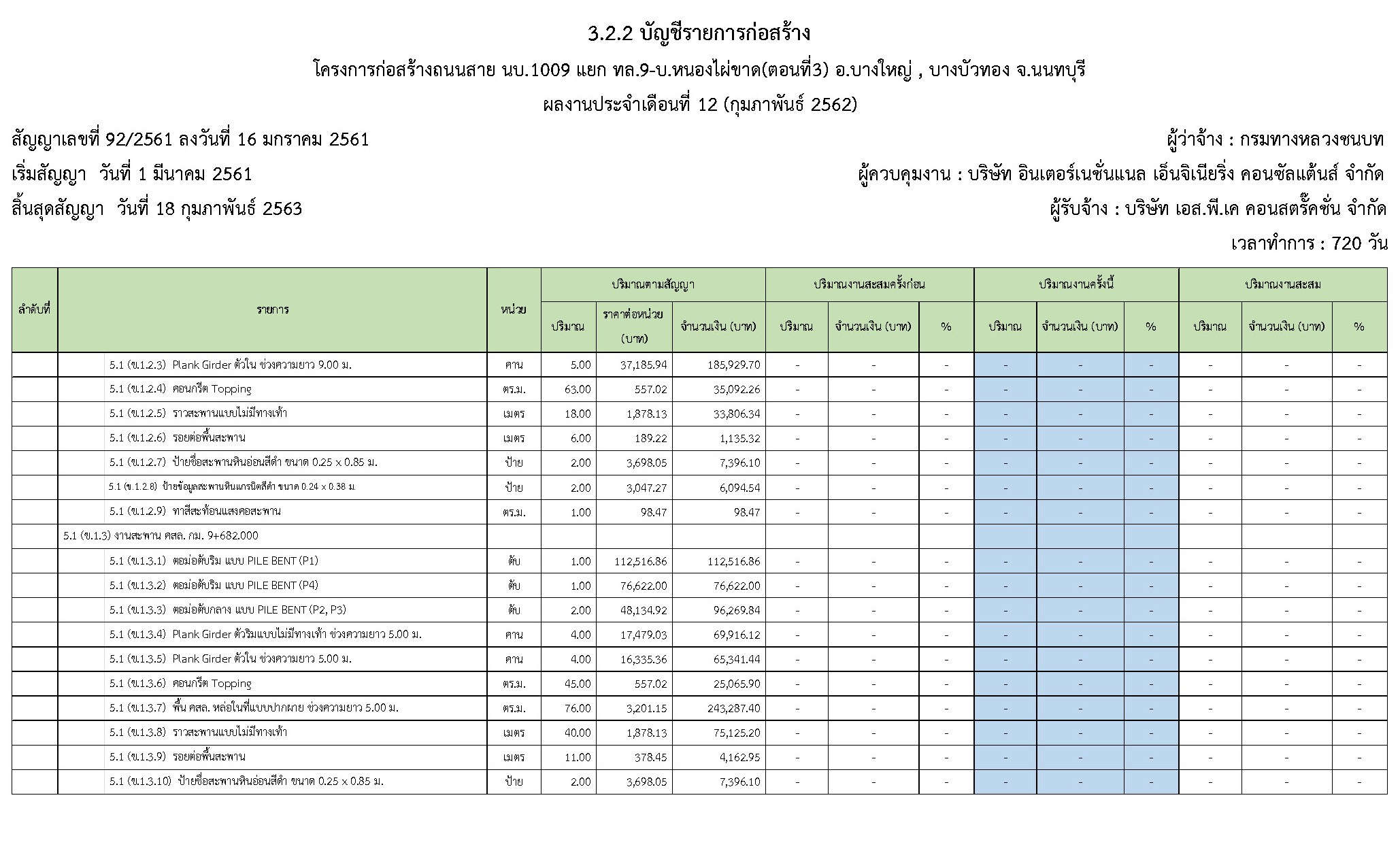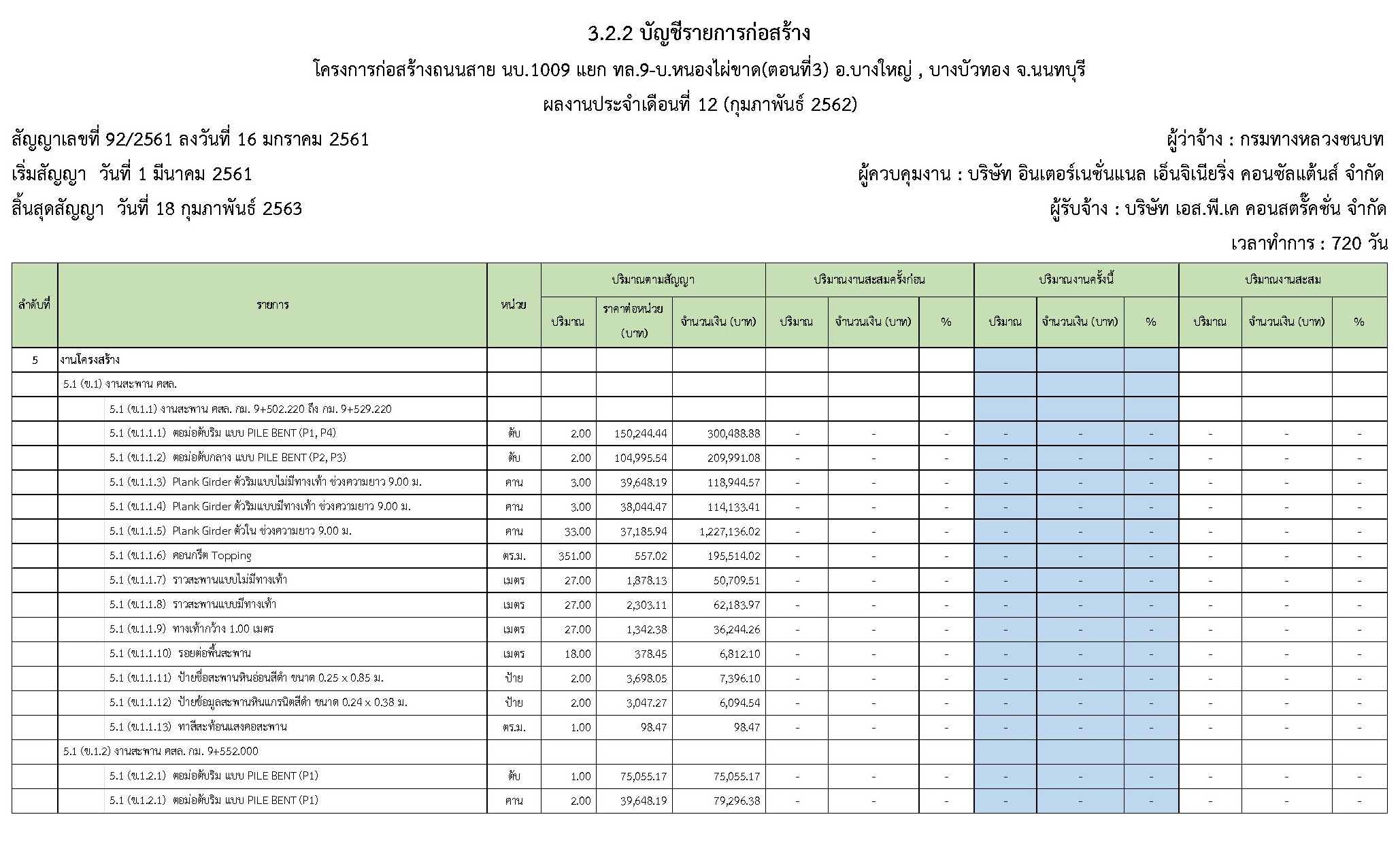 - ระยะเวลาก่อสร้างตามสัญญา : 720 วัน