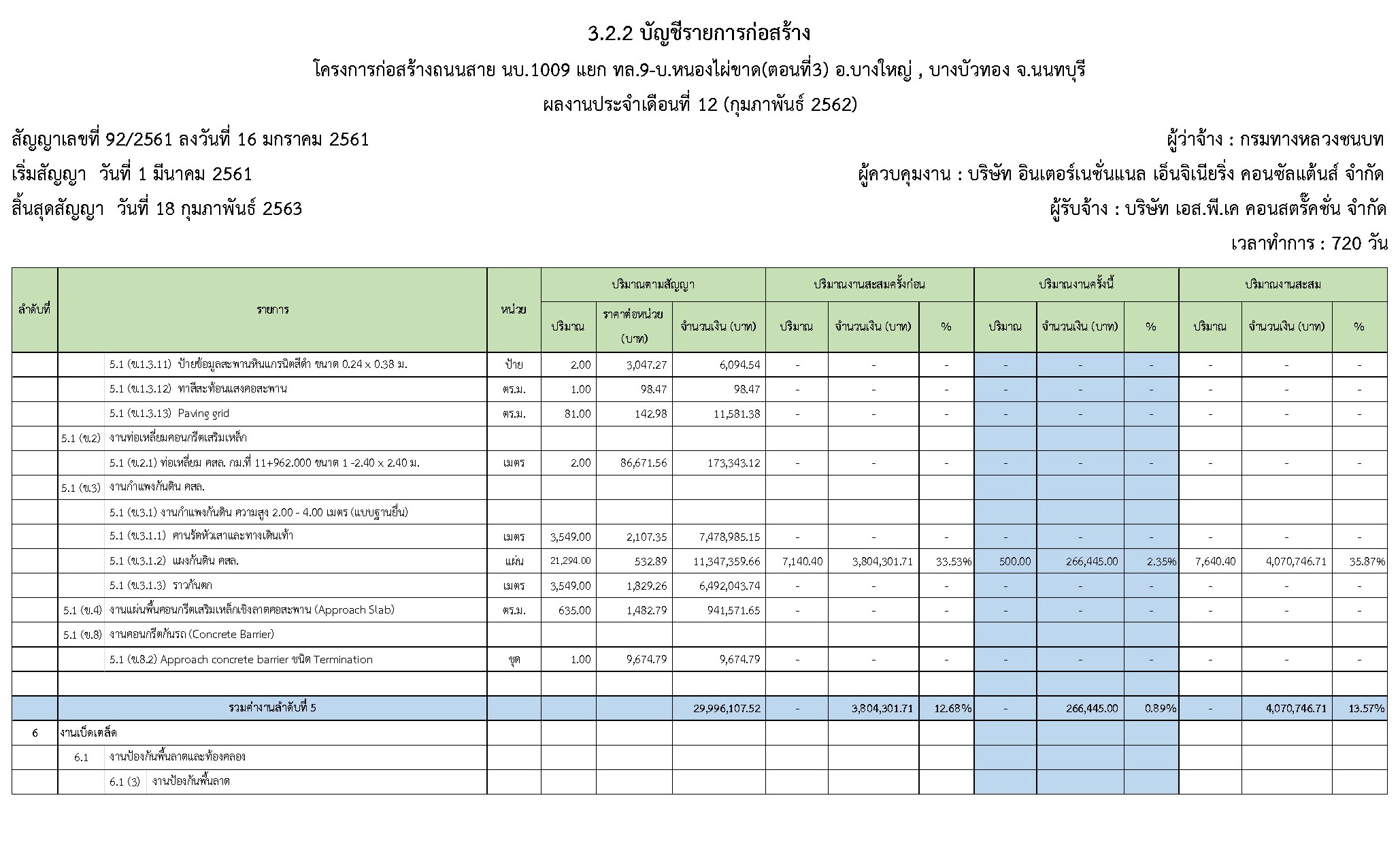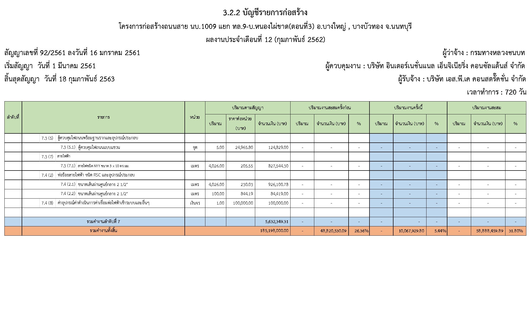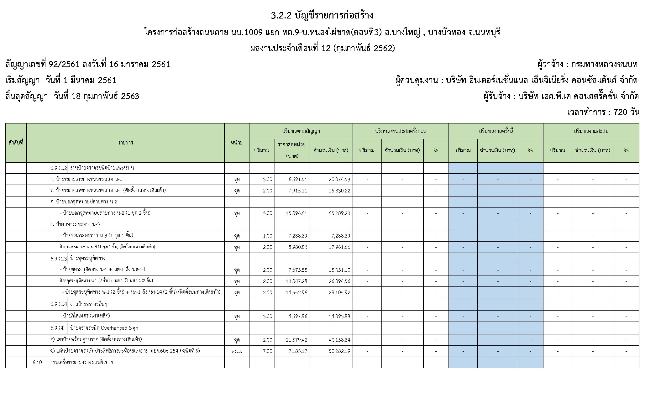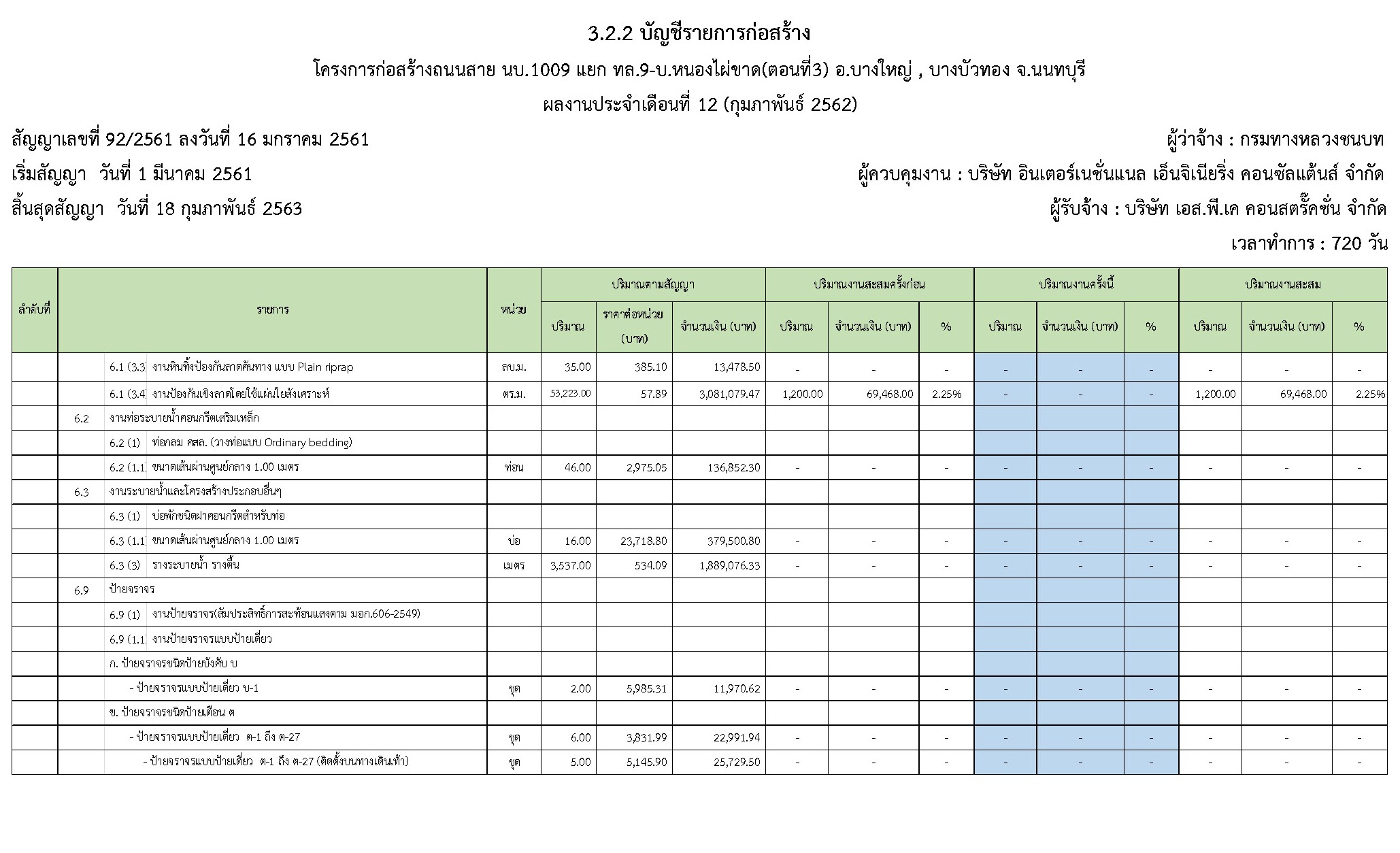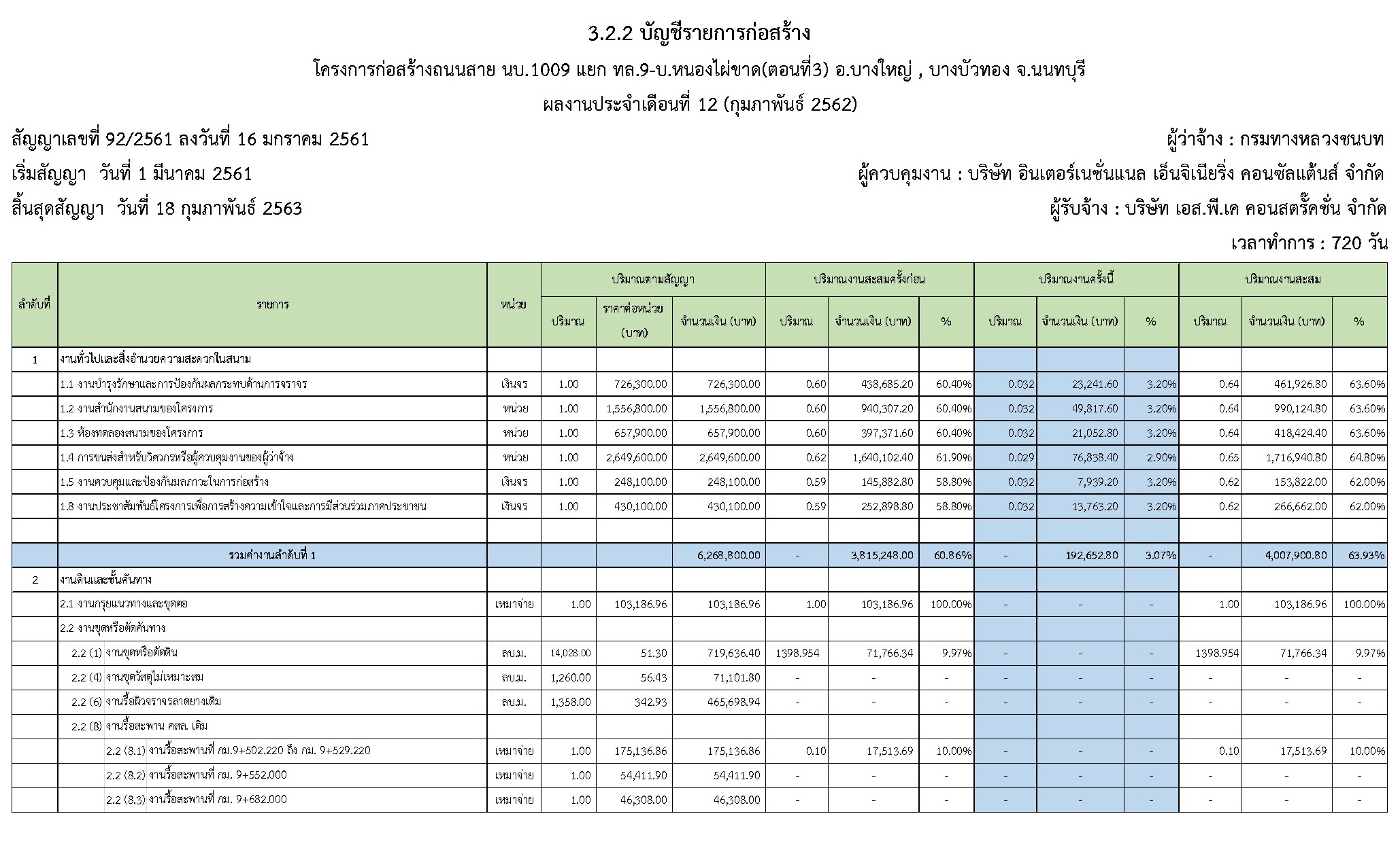 - ระยะเวลาก่อสร้างตามสัญญา : 720 วัน