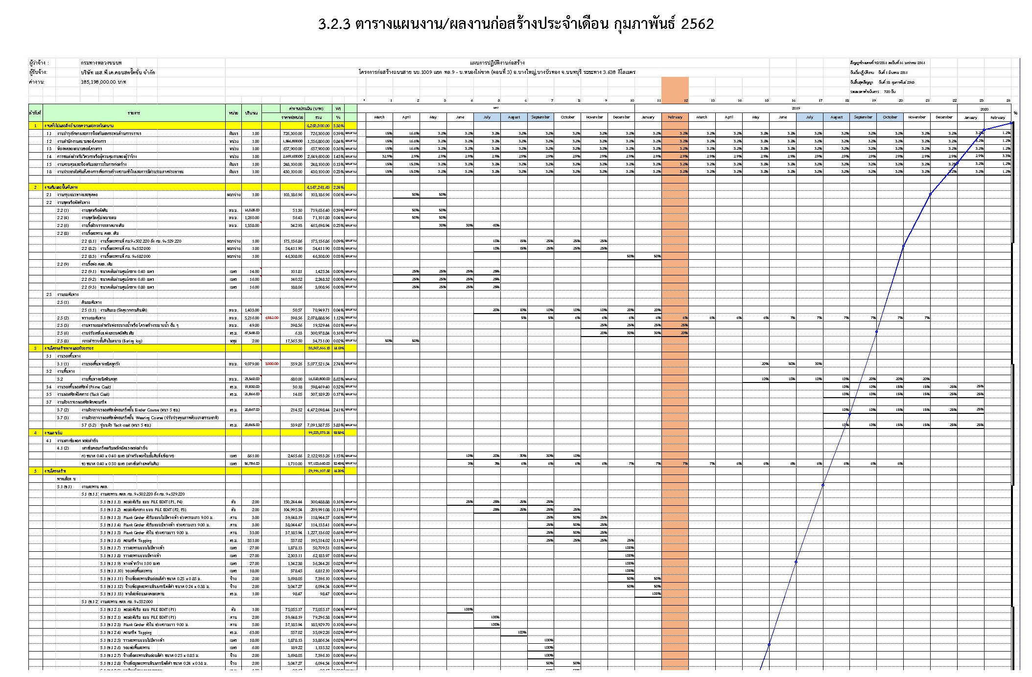 vความก้าวหน้าสะสมของโครงการ ตั้งแต่เริ่มสัญญา จนถึงวันที่ 28 กุมภาพันธ์ 2562