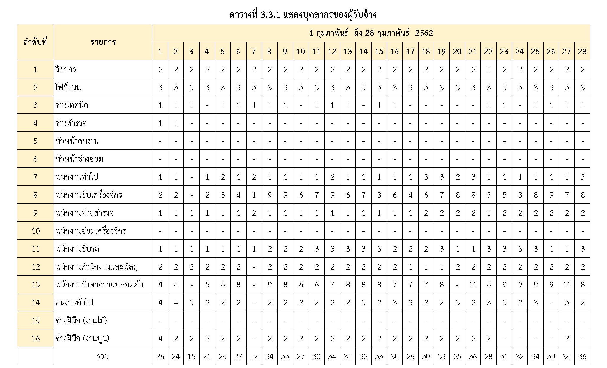 ในระหว่างวันที่ 1 กุมภาพันธ์ 2562 ถึง วันที่ 28 กุมภาพันธ์ 2562 ผู้รับจ้างได้ดำเนินงานในส่วนต่างๆดังนี้
