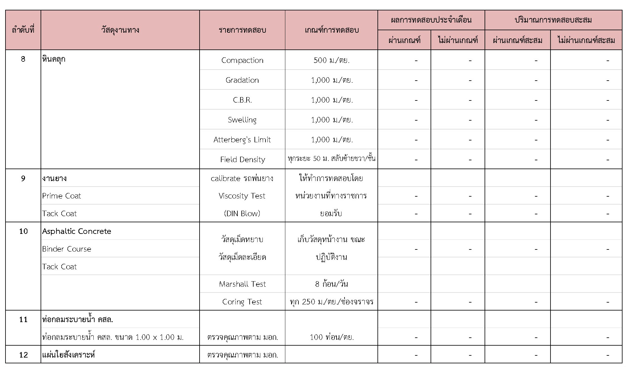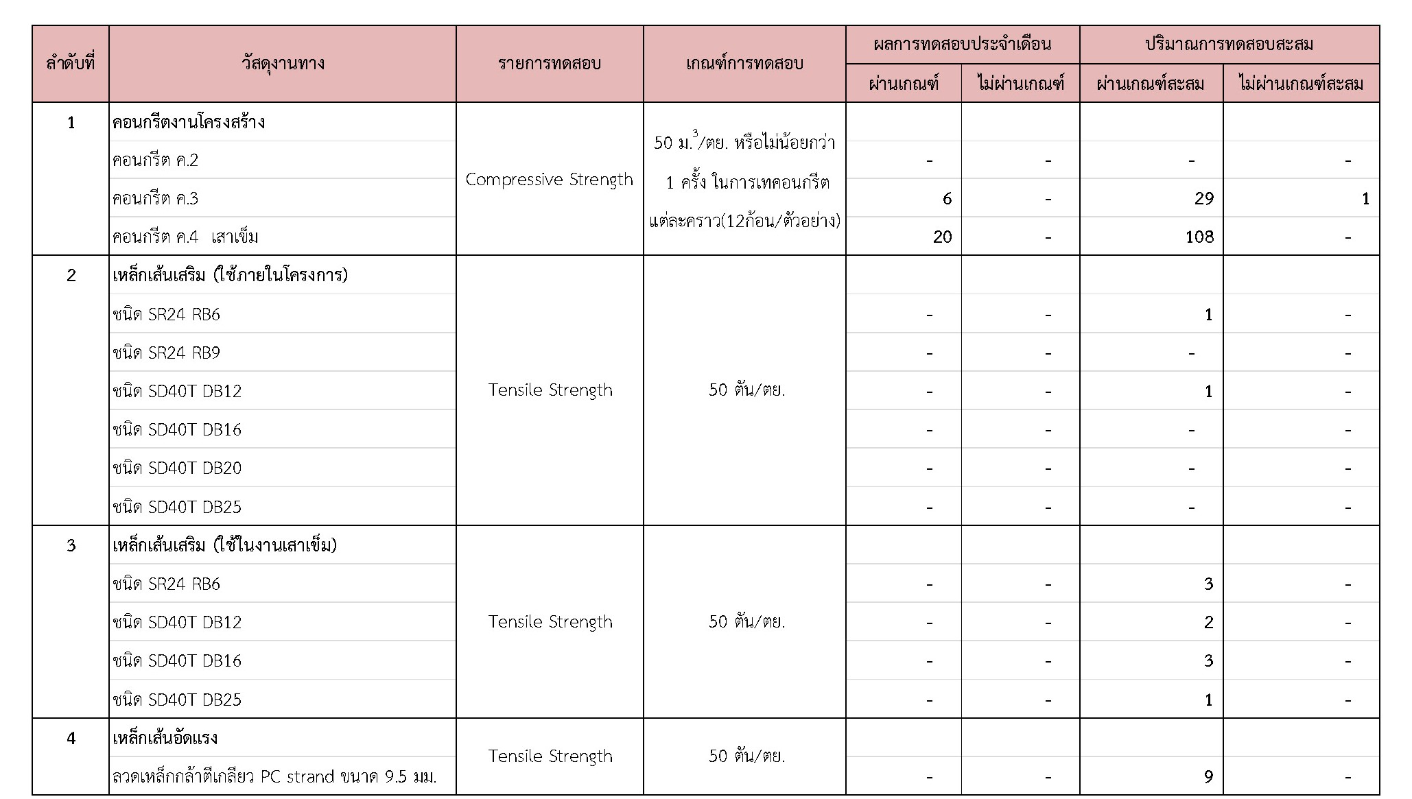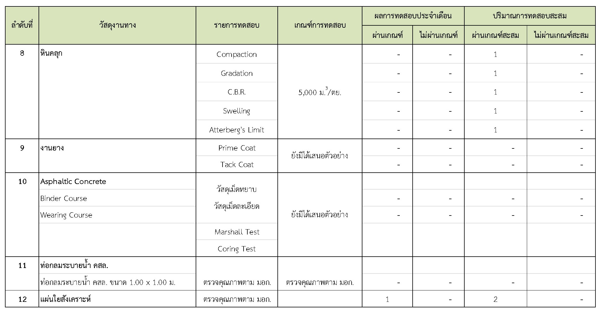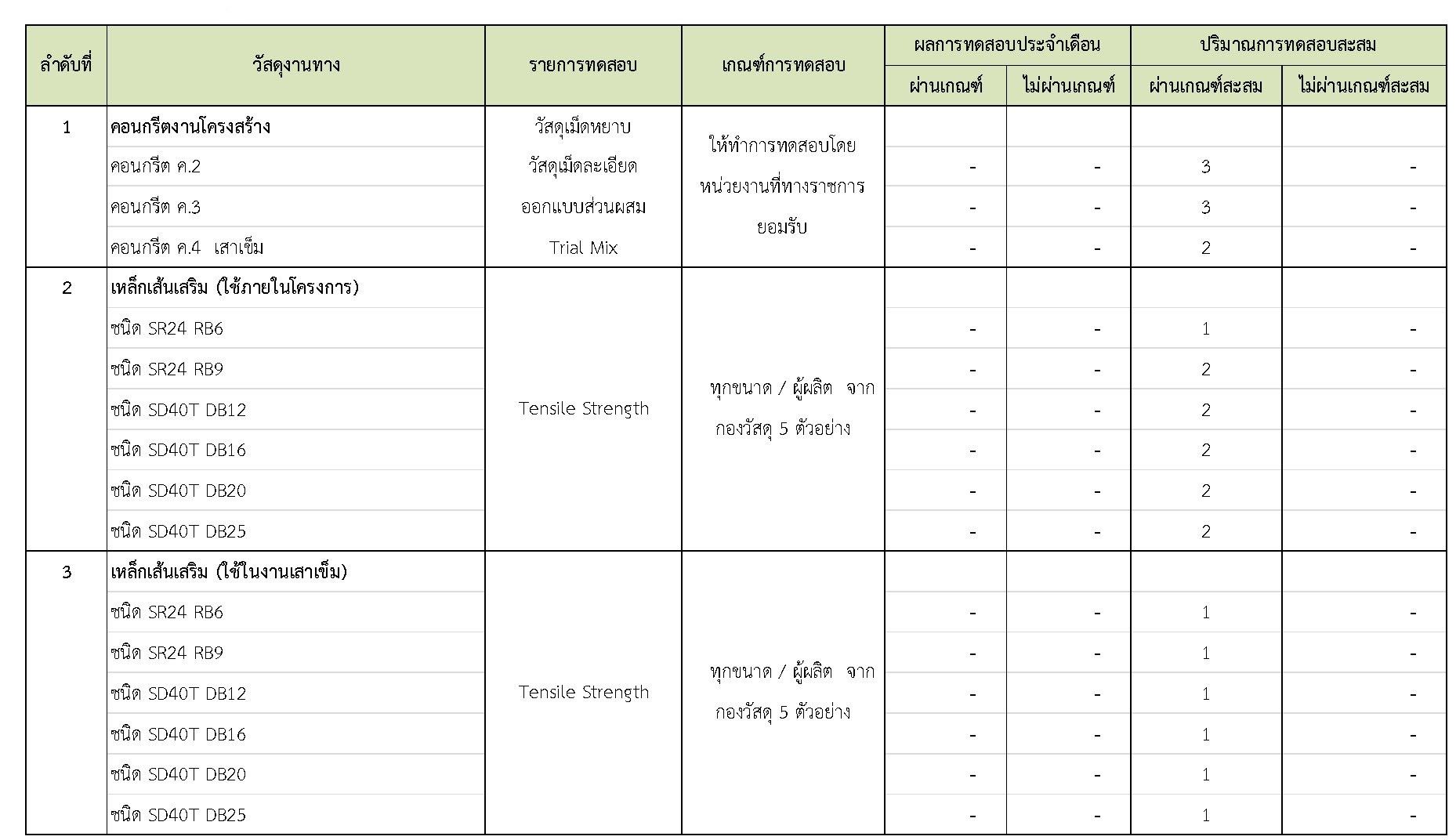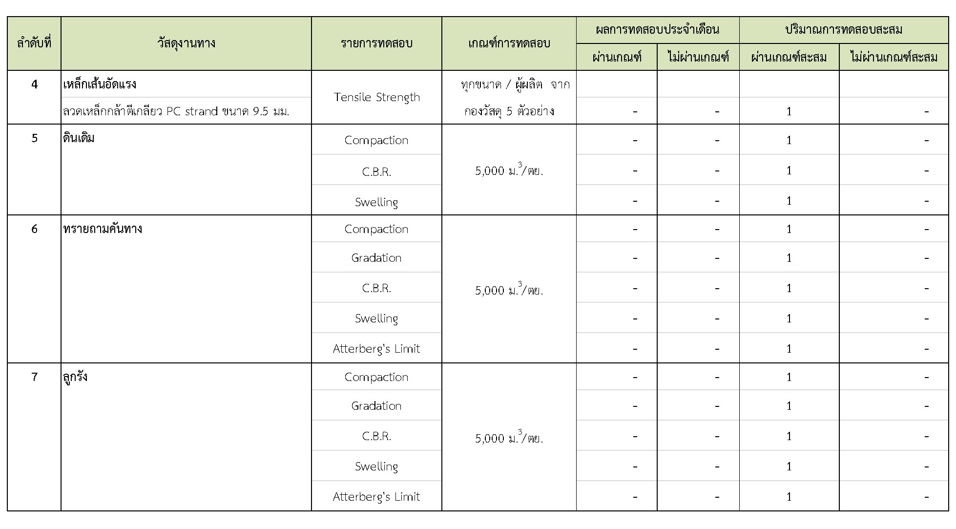 ในช่วงระหว่างวันที่ 1-31 มีนาคม 2562 ผู้รับจ้างได้จัดส่งวัสดุเพื่อทำการทดสอบ