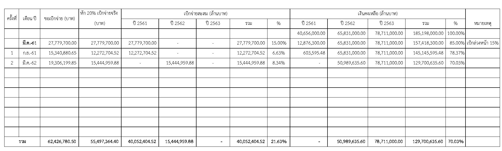 งบประมาณก่อสร้างทั้งหมด 185,198,000.-บาท ปีงบประมาณ 2561 เป็นเงิน 40,656,000 บาท ปีงบประมาณ 2562 เป็นเงิน 65,831,000 บาท ปีงบประมาณ 2563 เป็นเงิน 78,711,000 บาท