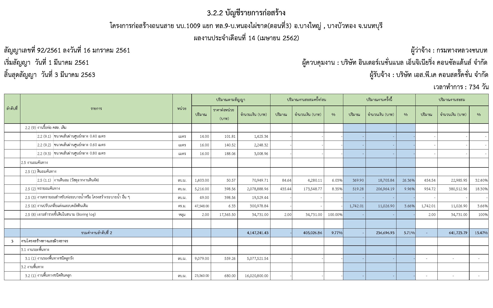 3.2 ความก้าวหน้าของงานแยกตามรายการ