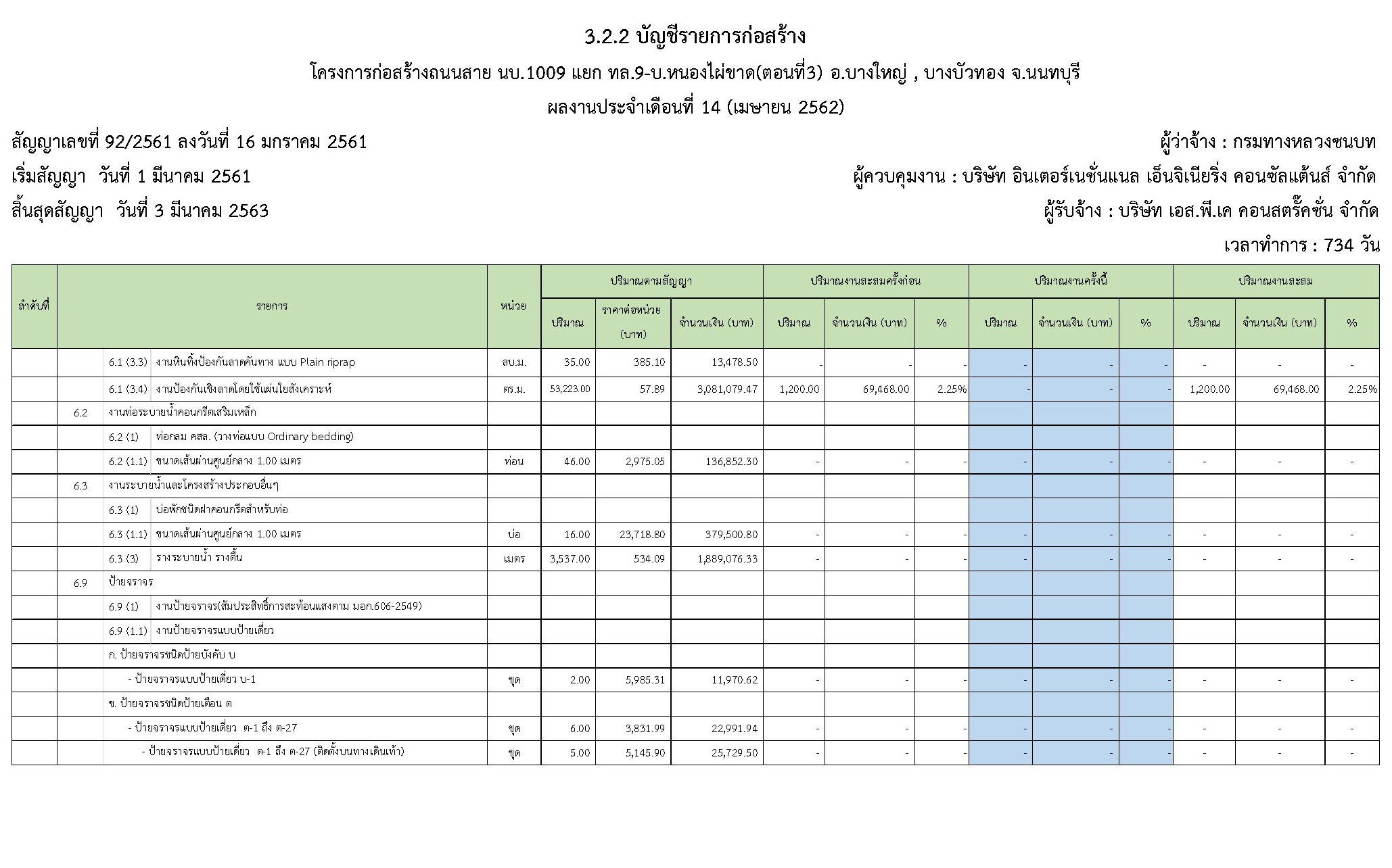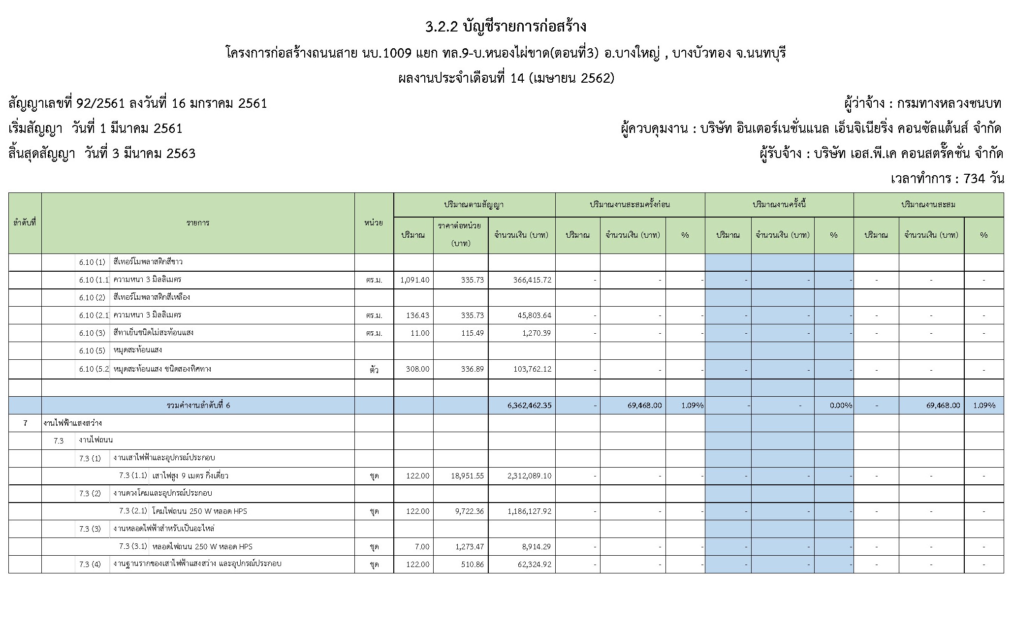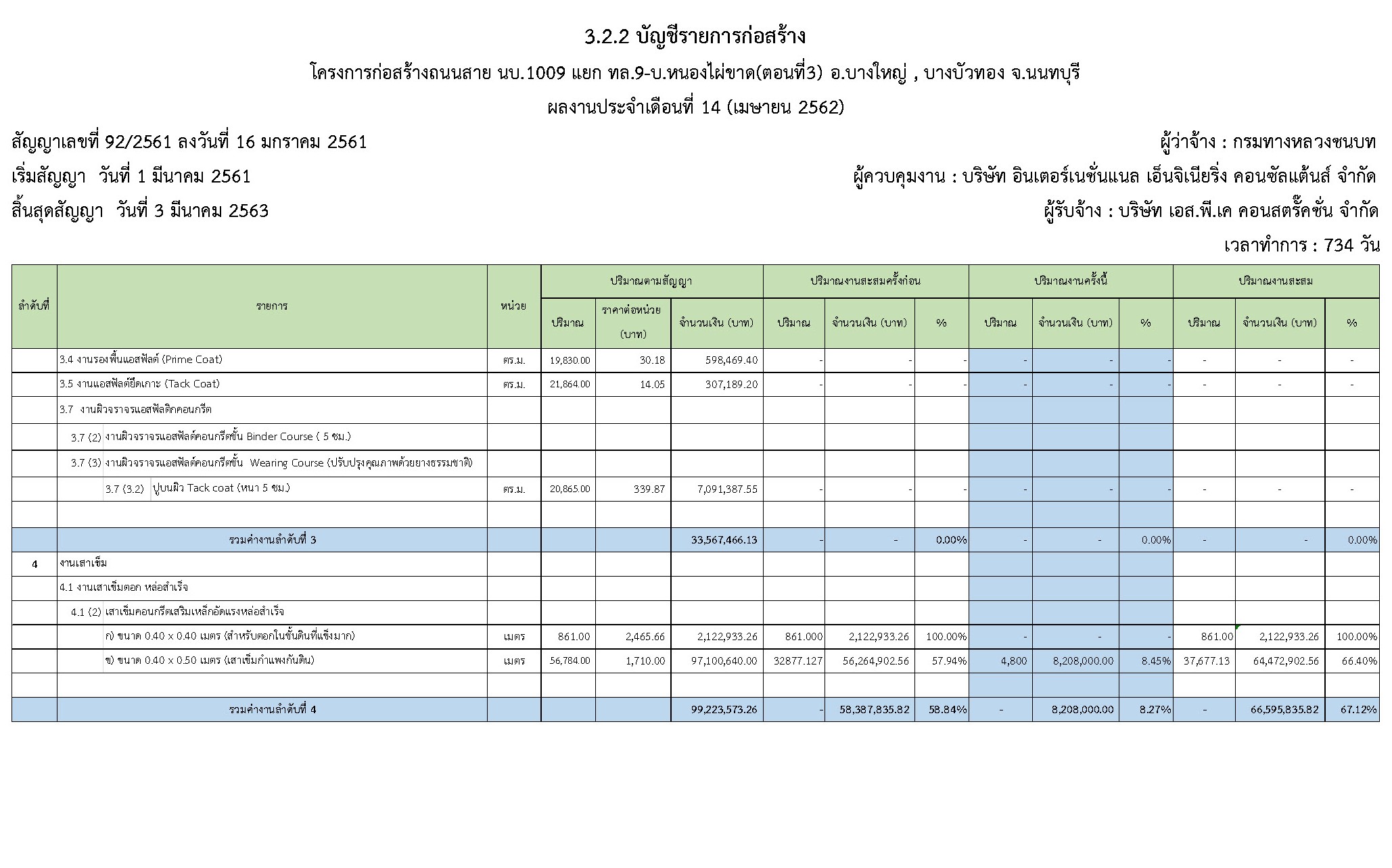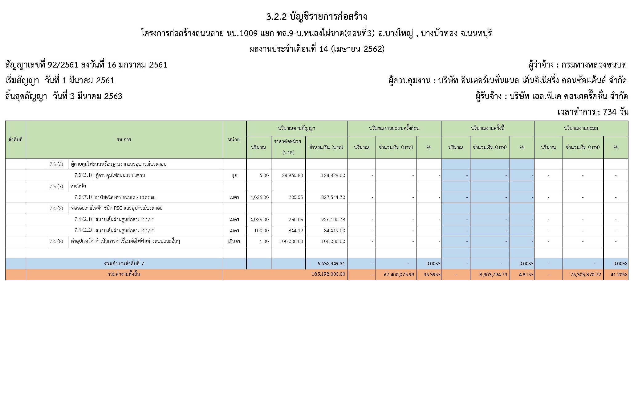 - ระยะเวลาก่อสร้างตามสัญญา : 734 วัน