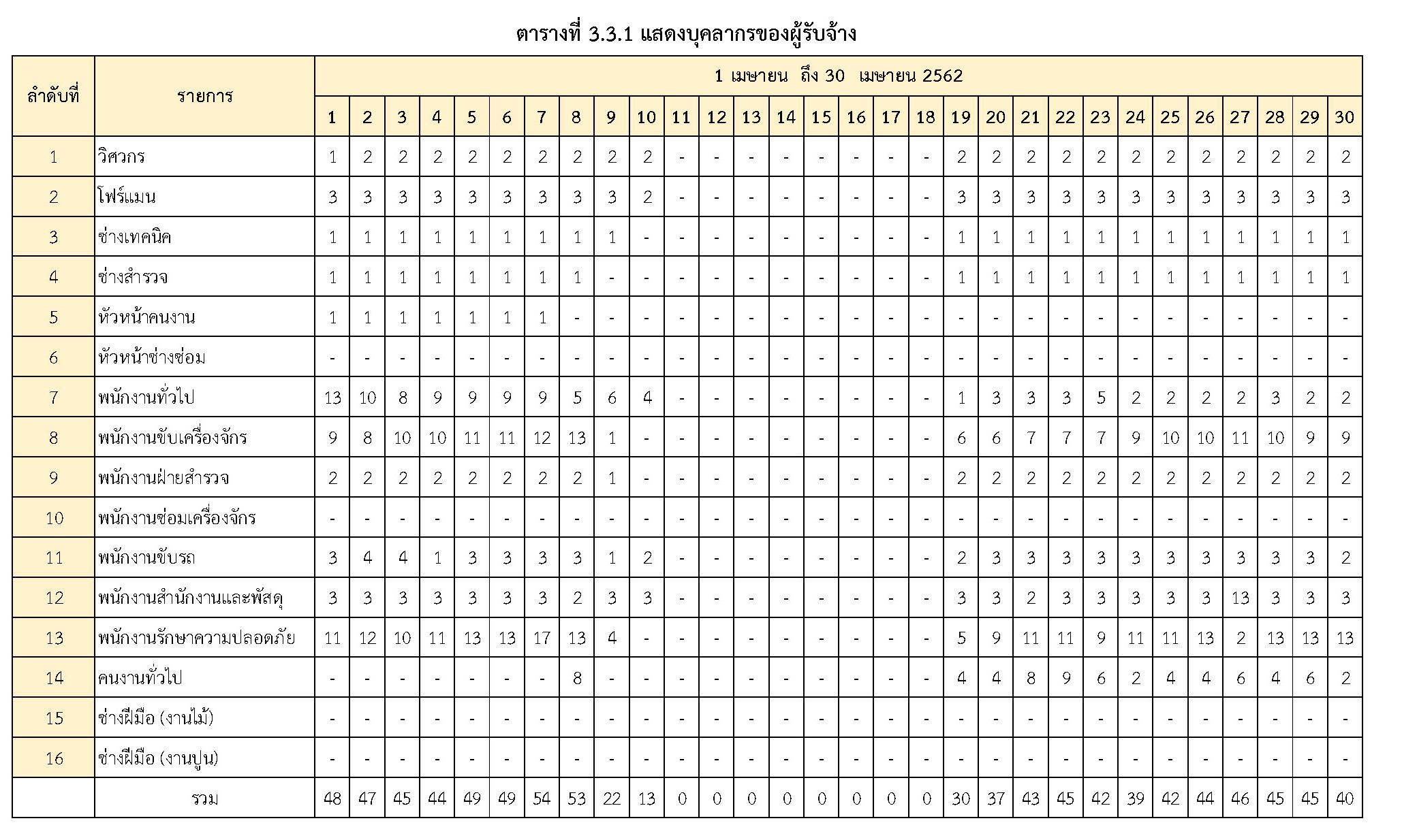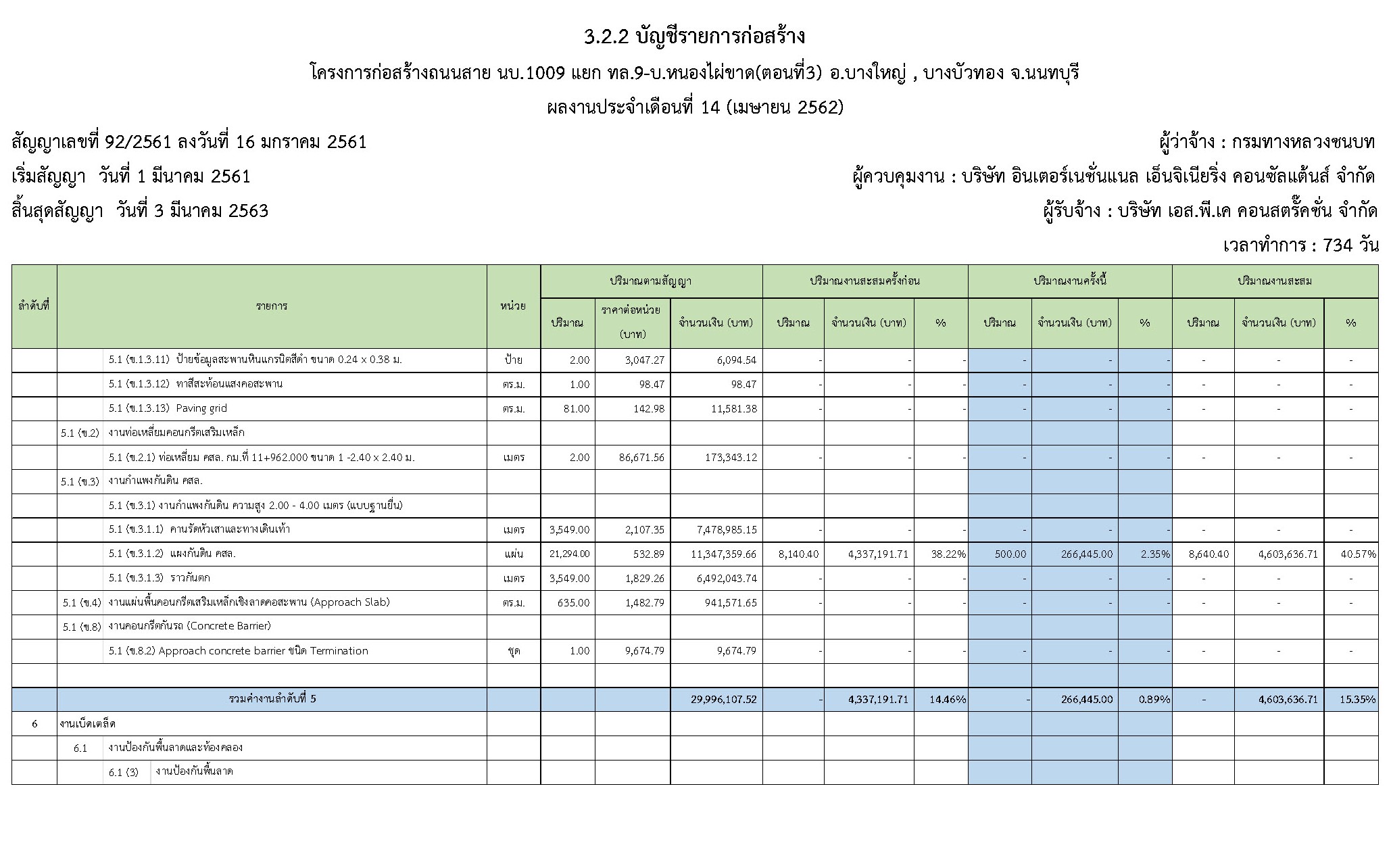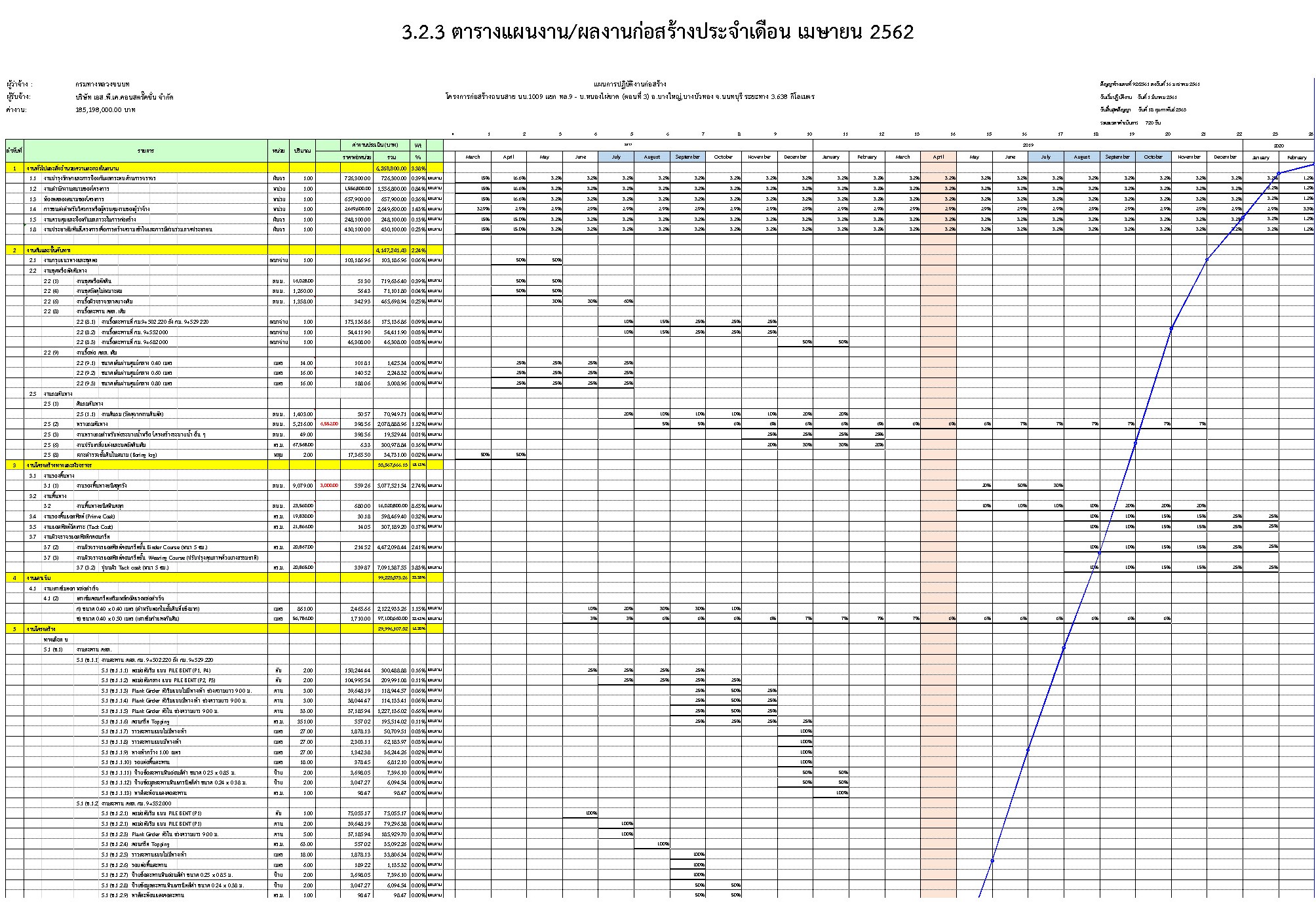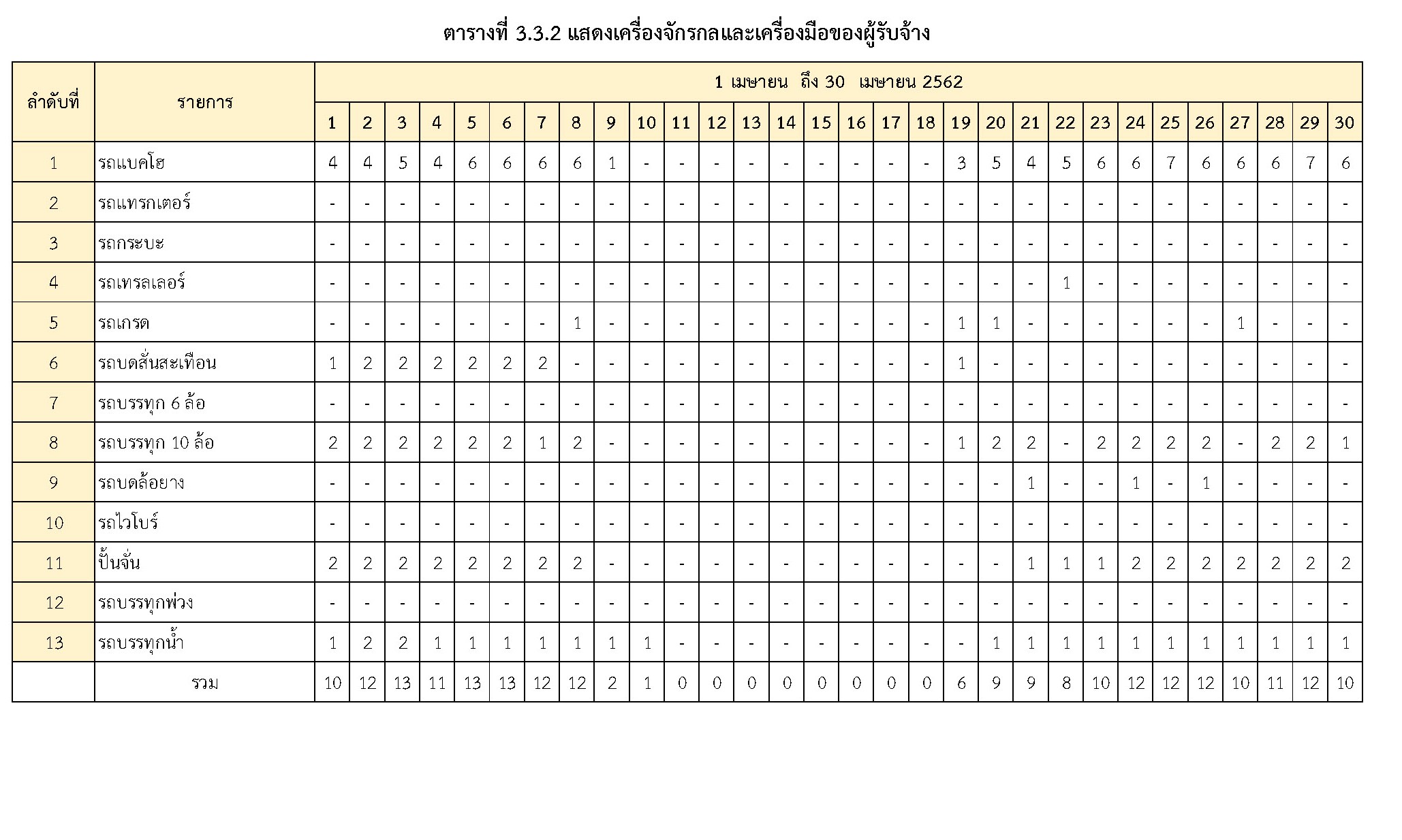ในระหว่างวันที่ 1 เมษายน 2562 ถึง วันที่ 30 เมษายน 2562 ผู้รับจ้างได้ดำเนินงานในส่วนต่างๆดังนี้