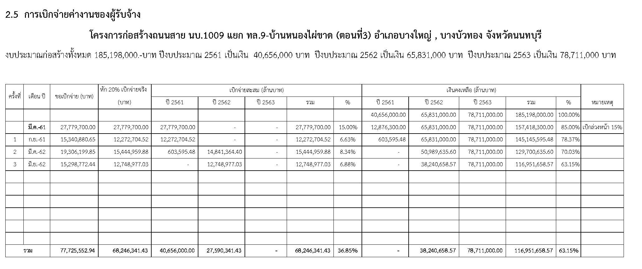 โครงการก่อสร้างถนนสายแยก ทล.9-บ้านหนองไผ่ขาด(ตอนที่3) อำเภอบางใหญ่ , บางบัวทอง จังหวัดนนทบุรี มีสถานภาพของสัญญาก่อสร้าง โดยมีรายละเอียดของสัญญาดังต่อไปนี้