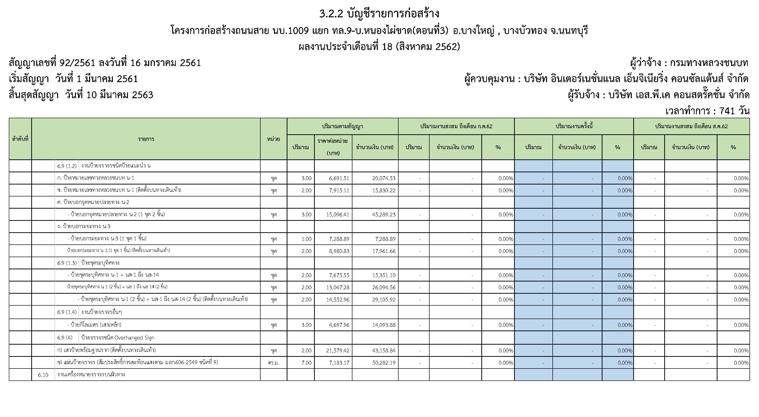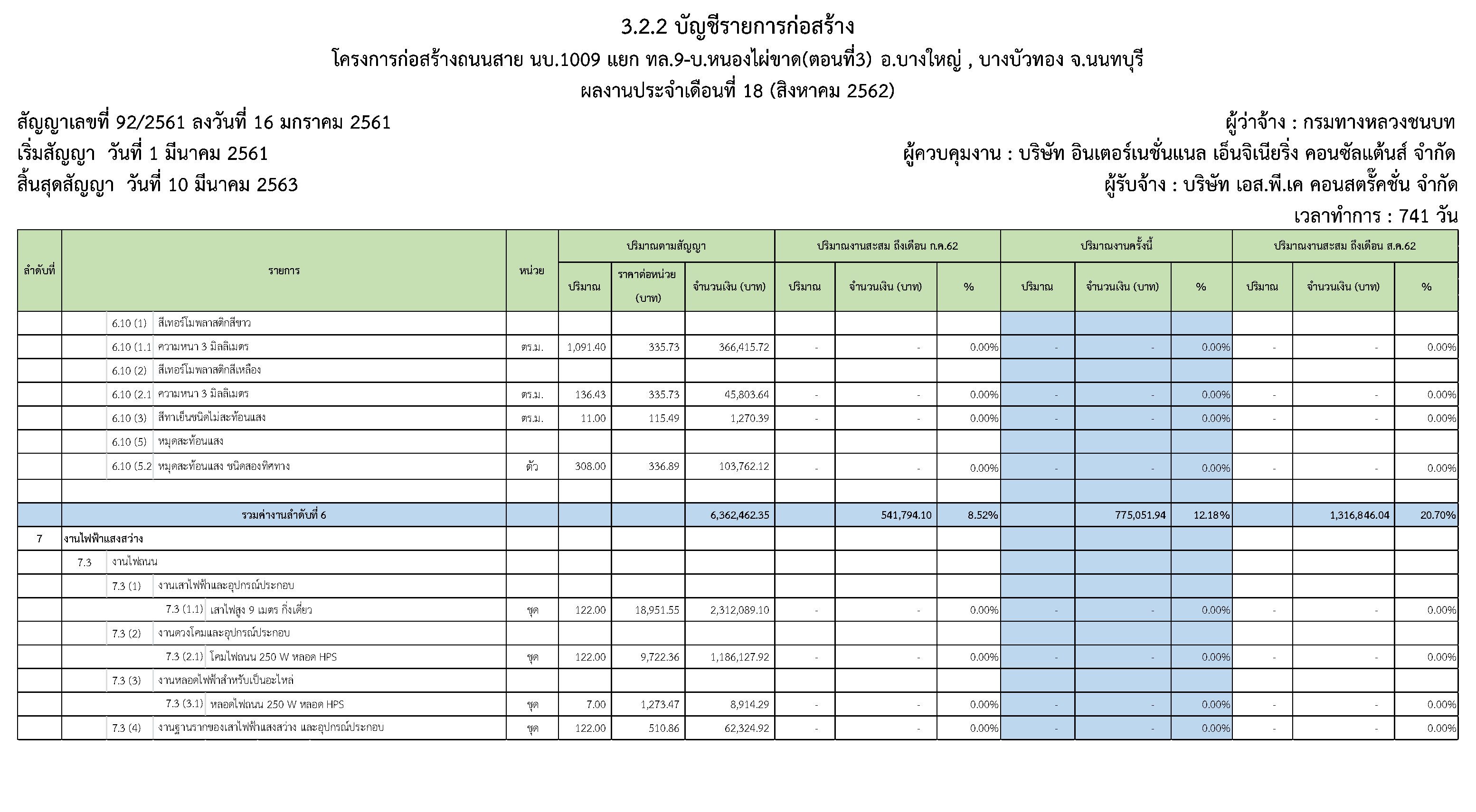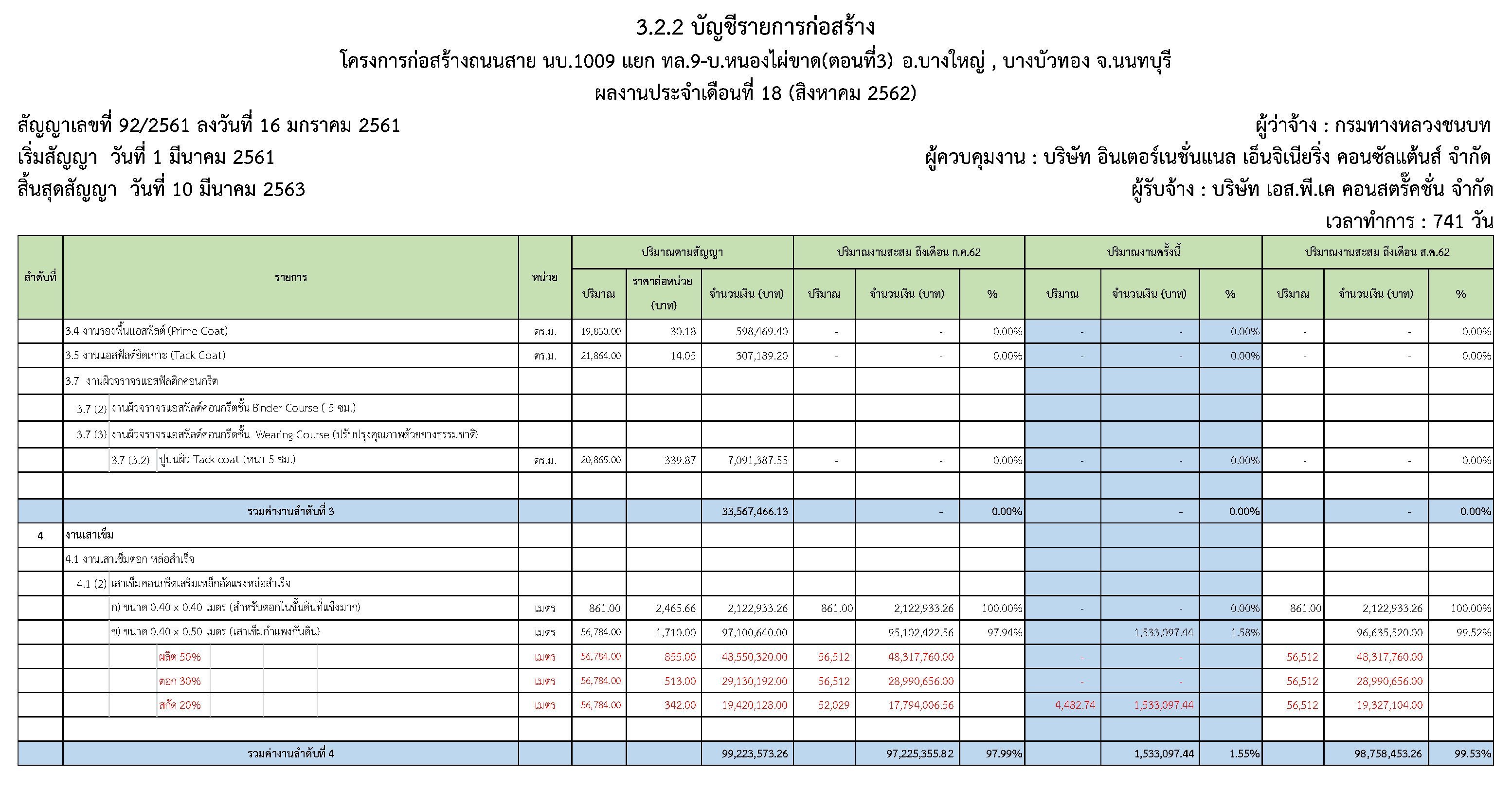 - ผลงานก่อสร้าง ช้า/เร็ว กว่าแผนงาน (-,+) : -0.18 %