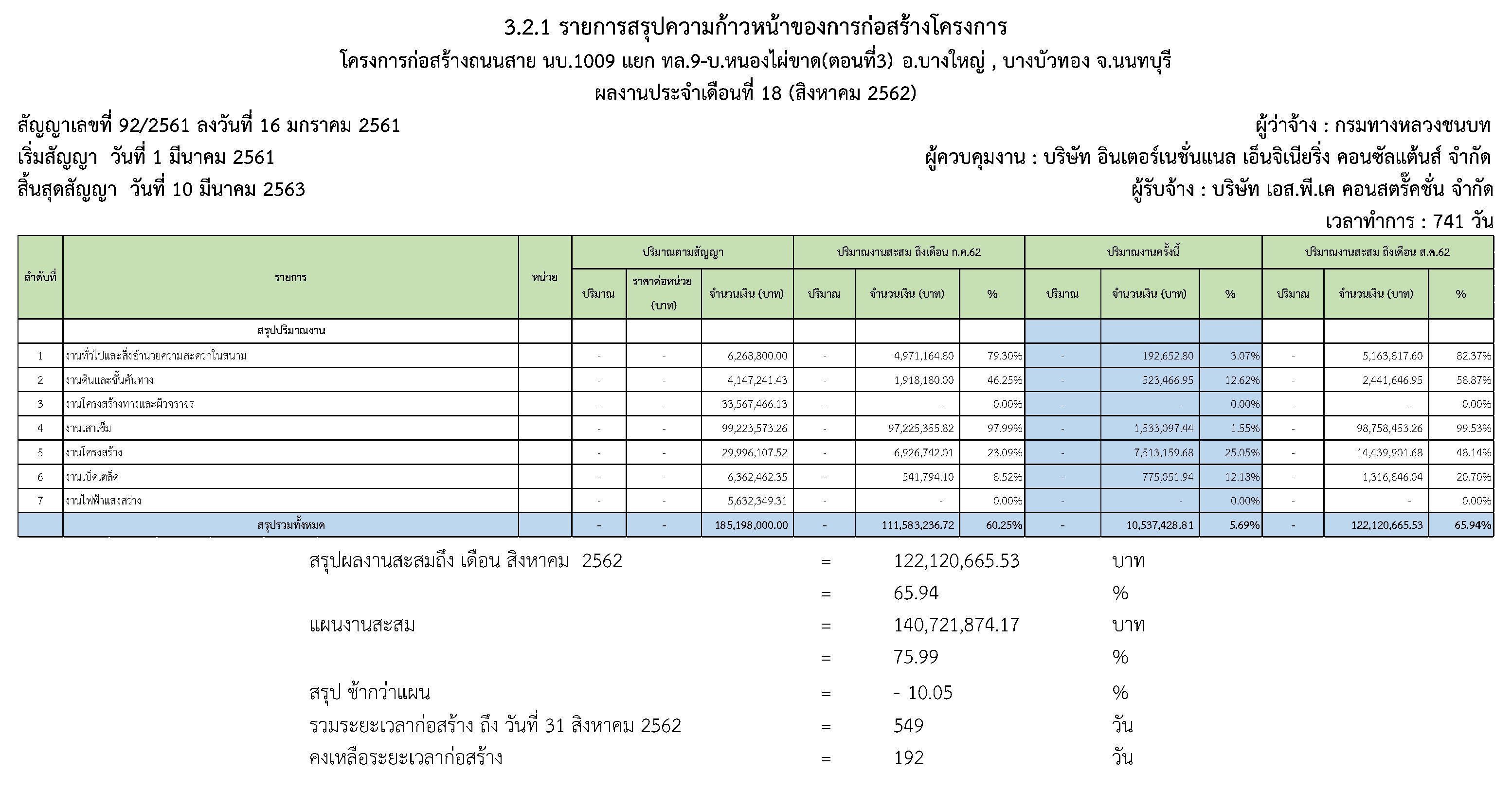 - คงเหลือระยะเวลาดำเนินการก่อสร้าง : 192 วัน