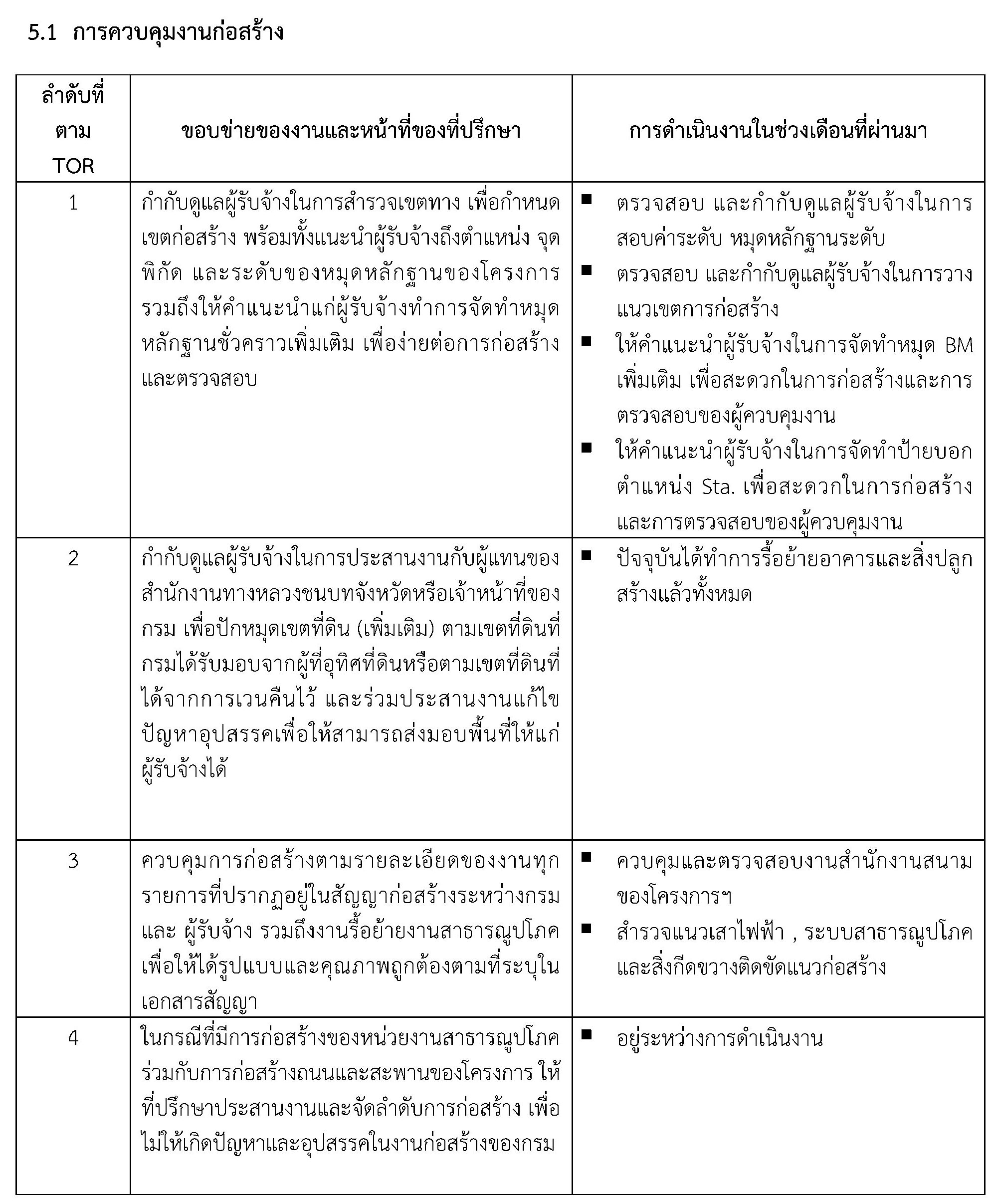 บทที่ 5 รายงานการปฏิบัติการของงานที่ปรึกษา