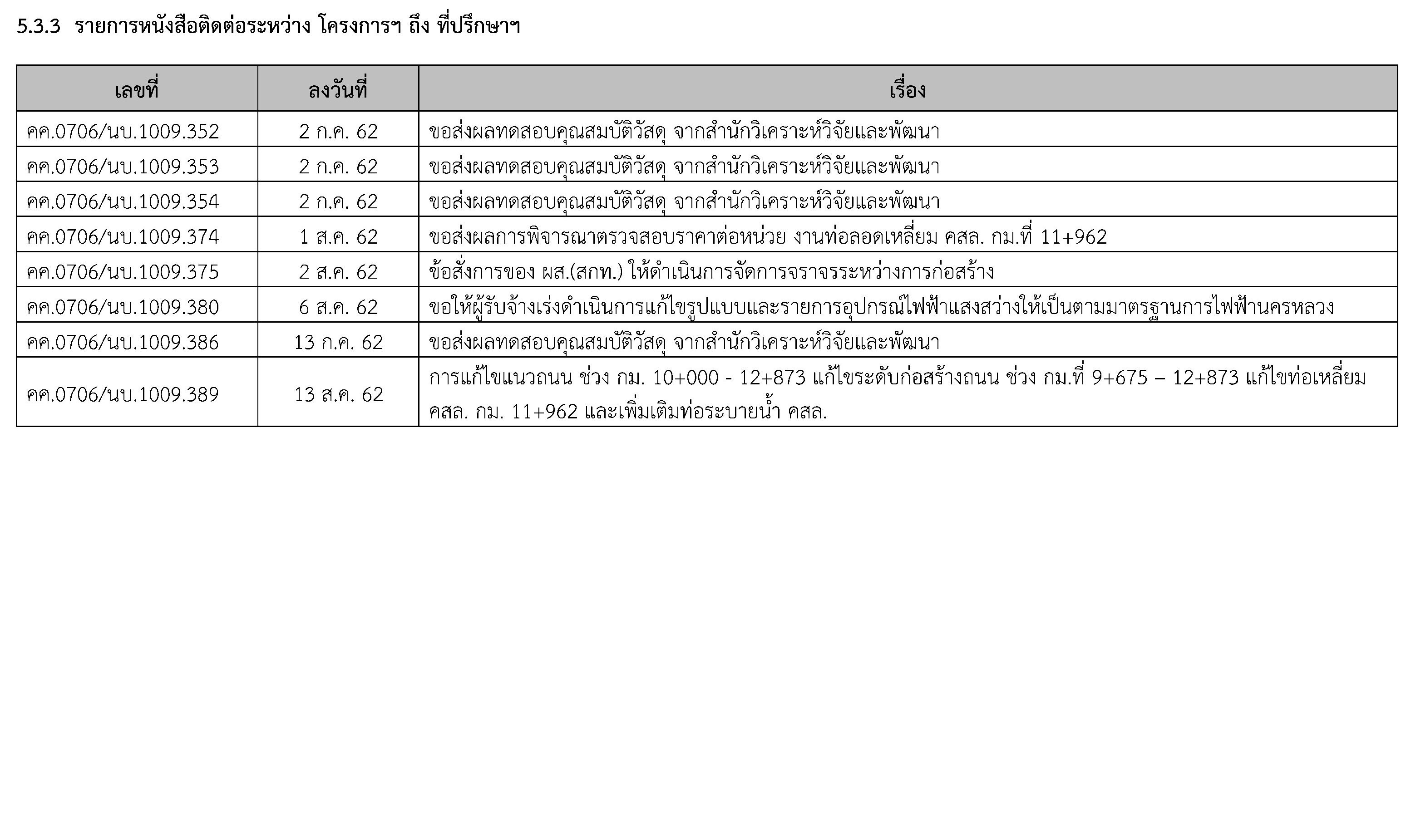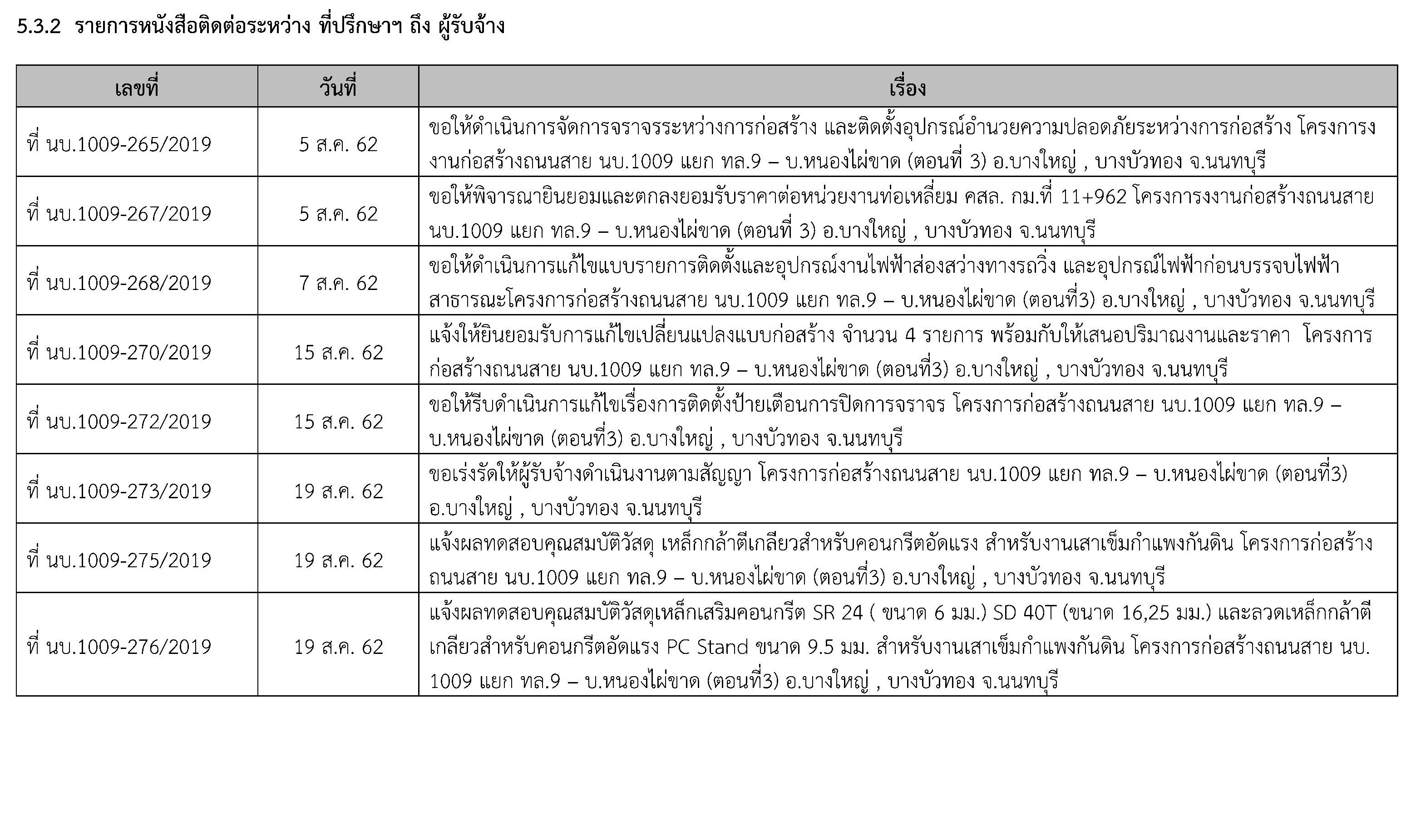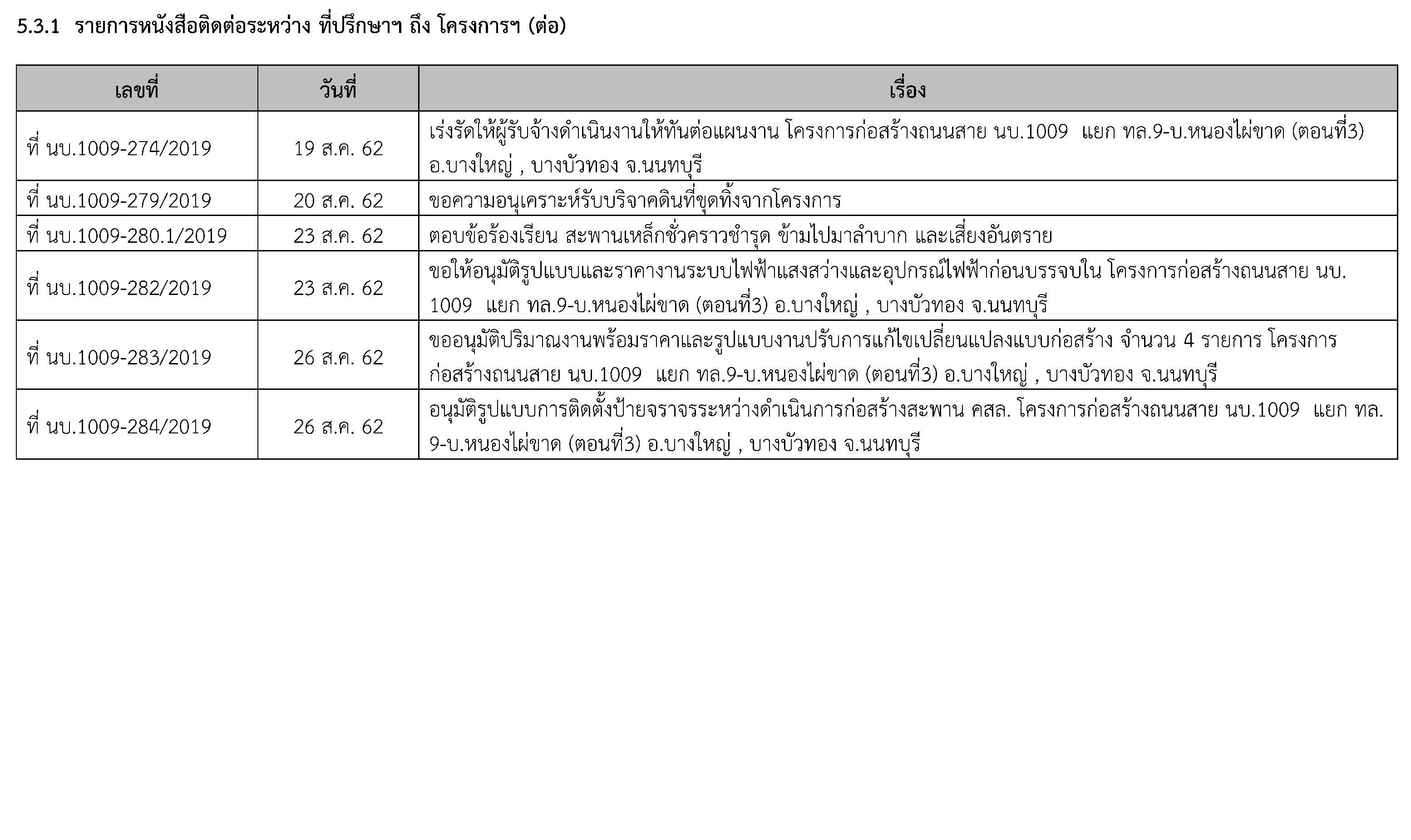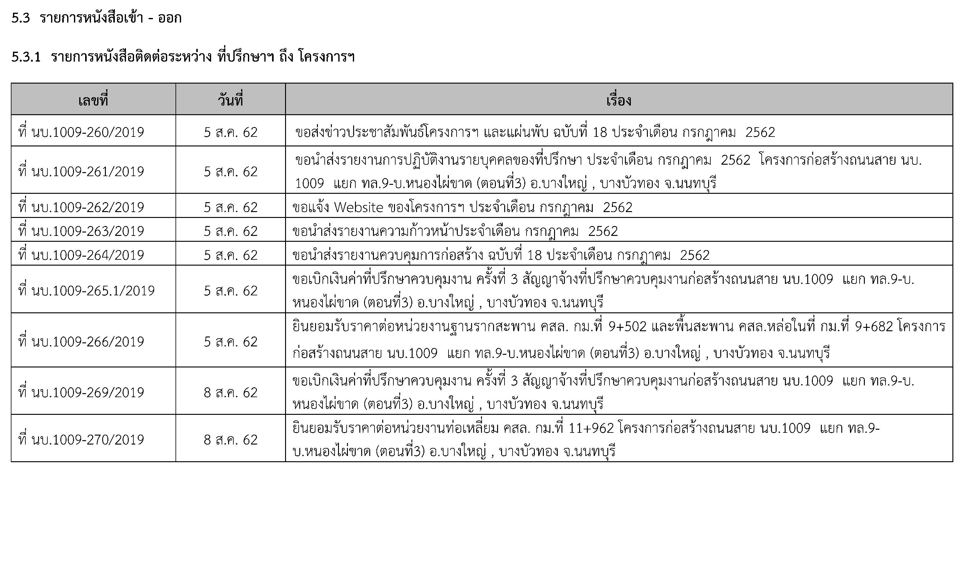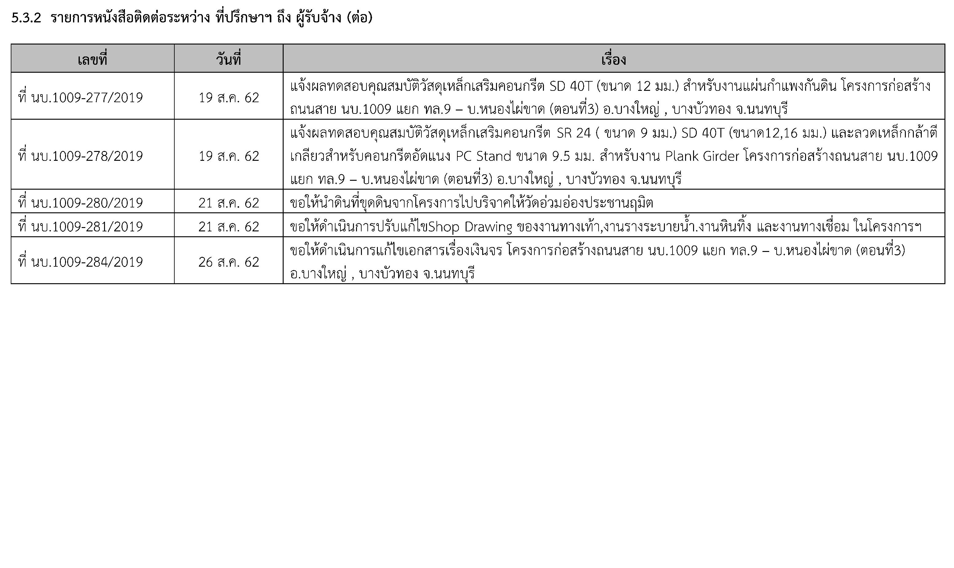 ที่ปรึกษาได้ปฏิบัติงานควบคุมการก่อสร้าง โครงการก่อสร้างก่อสร้างถนนสาย นบ.1009 แยก ทล.9-บ.หนองไผ่ขาด(ตอนที่3)อ.บางใหญ่ , บางบัวทอง จ.นนทบุรีประจำเดือน สิงหาคม2562