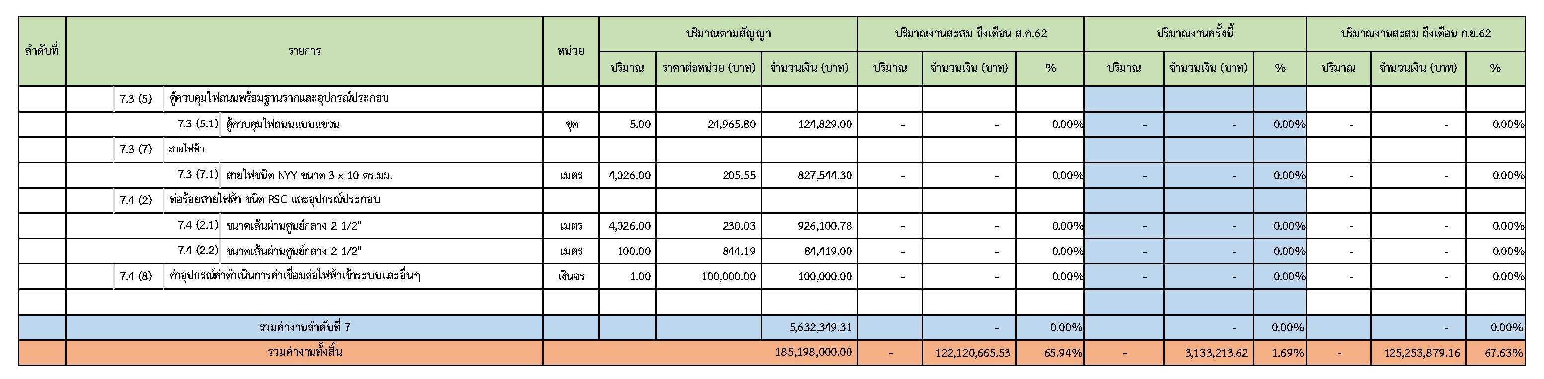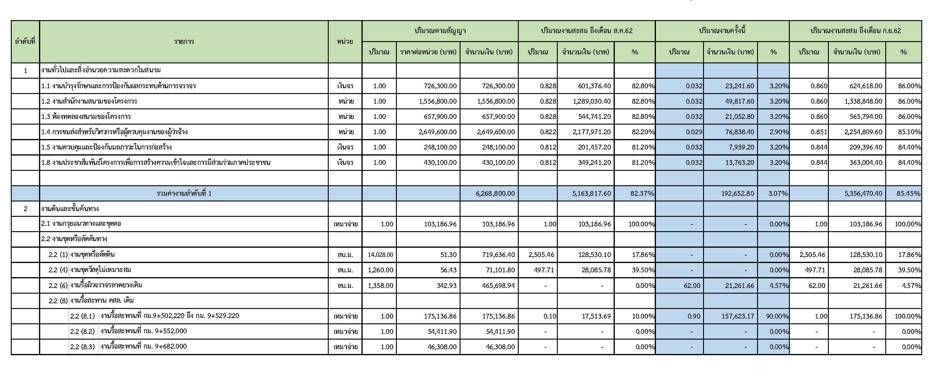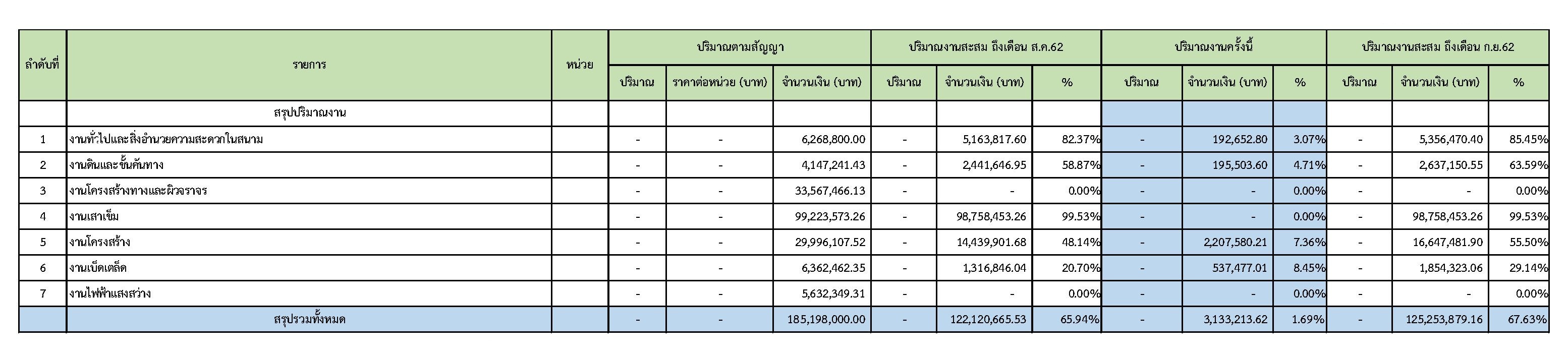 ในระหว่างวันที่1 กันยายน2562ถึงวันที่ 30กันยายน 2562ผู้รับจ้างได้ดำเนินงานในส่วนต่างๆดังนี้
