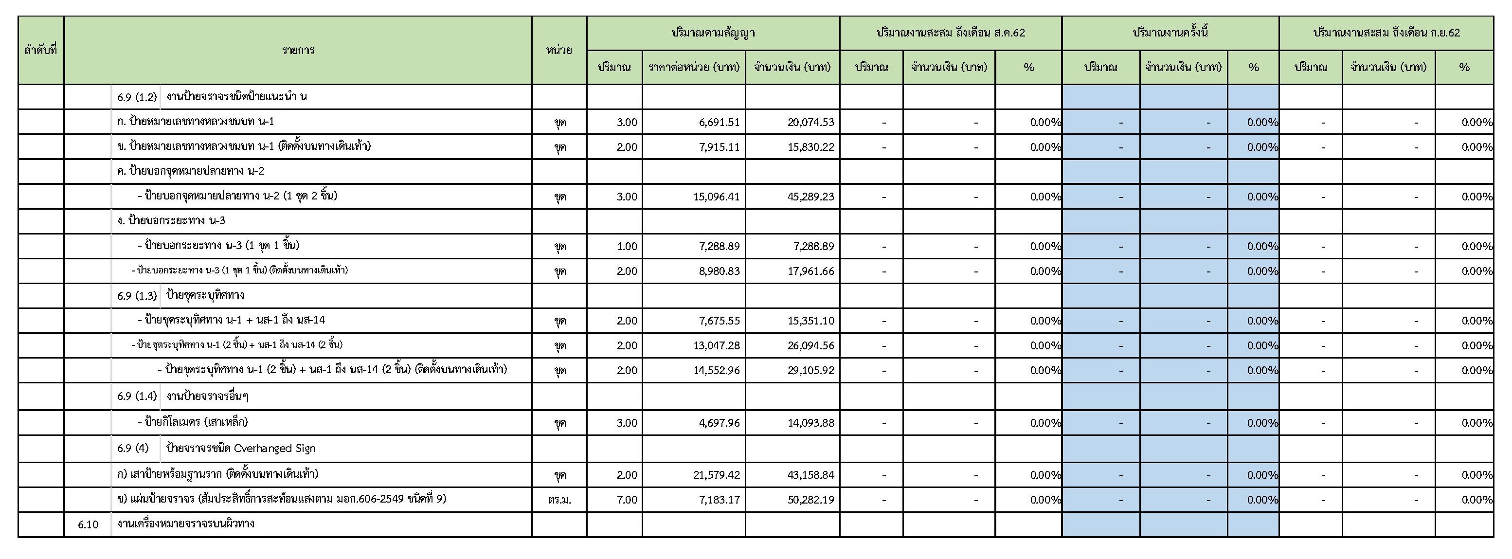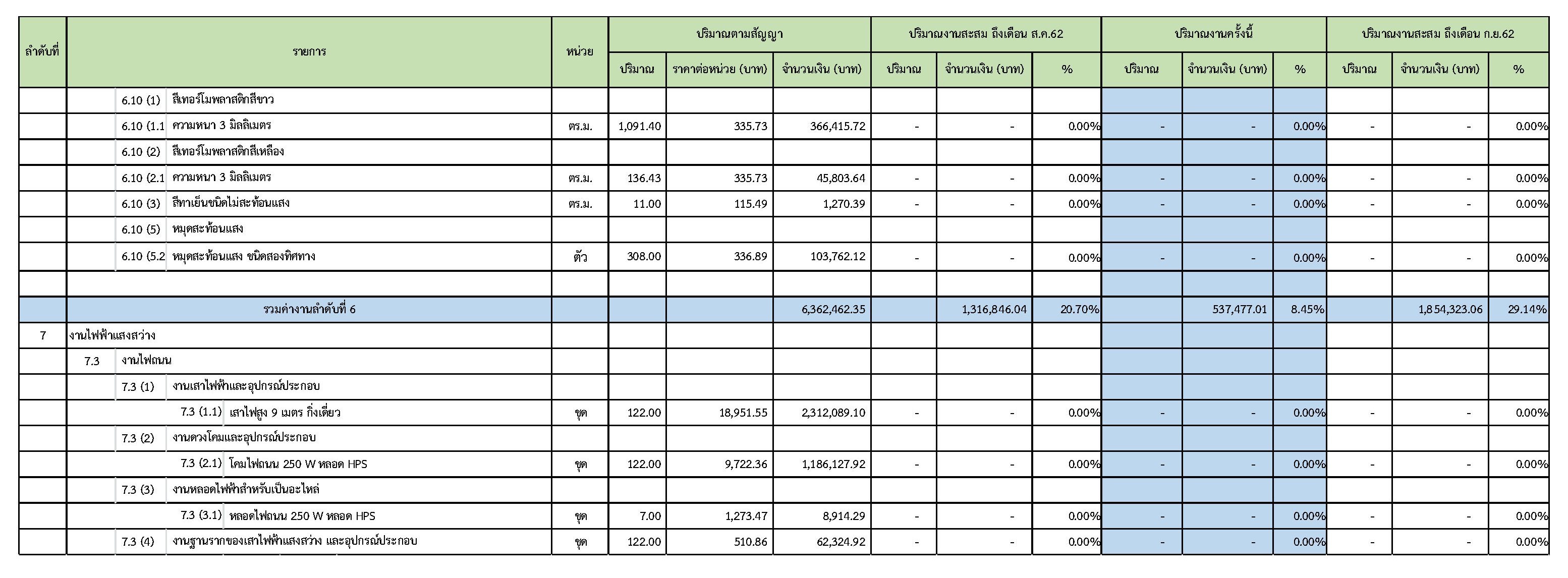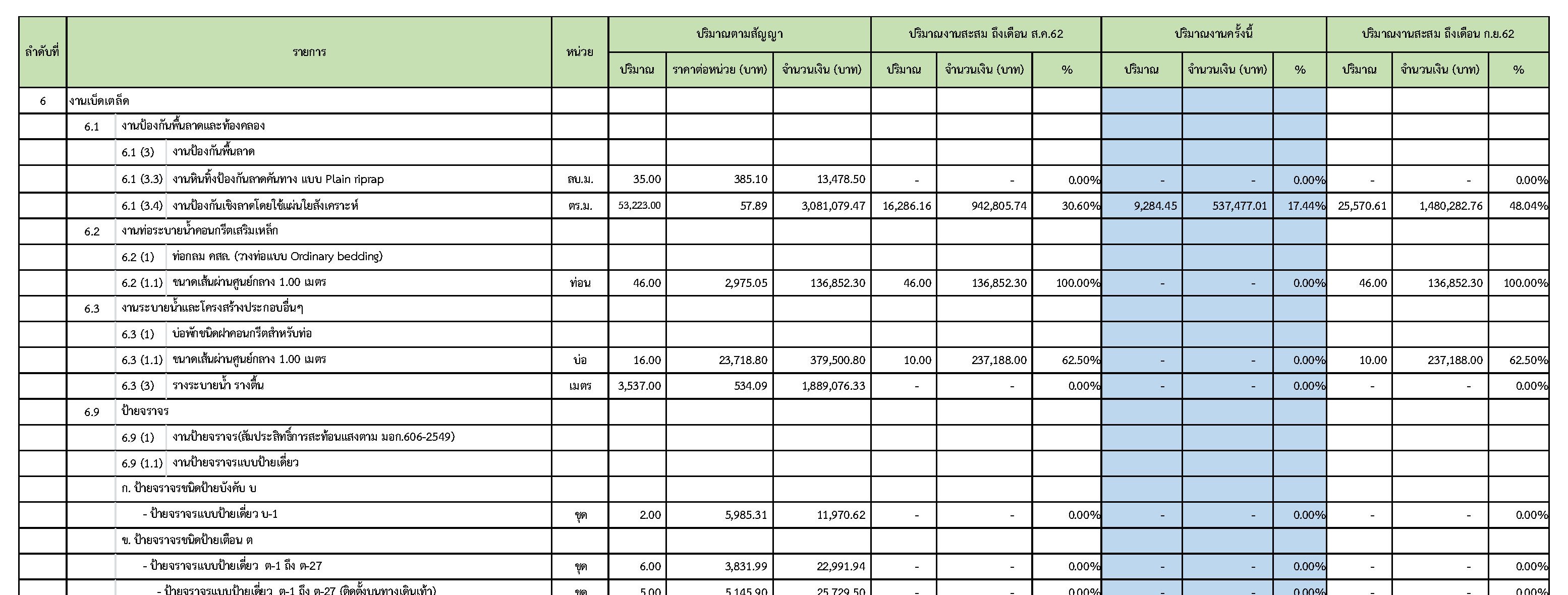 ในระหว่างวันที่1 กันยายน2562ถึงวันที่ 30กันยายน 2562ผู้รับจ้างได้ดำเนินงานในส่วนต่างๆดังนี้