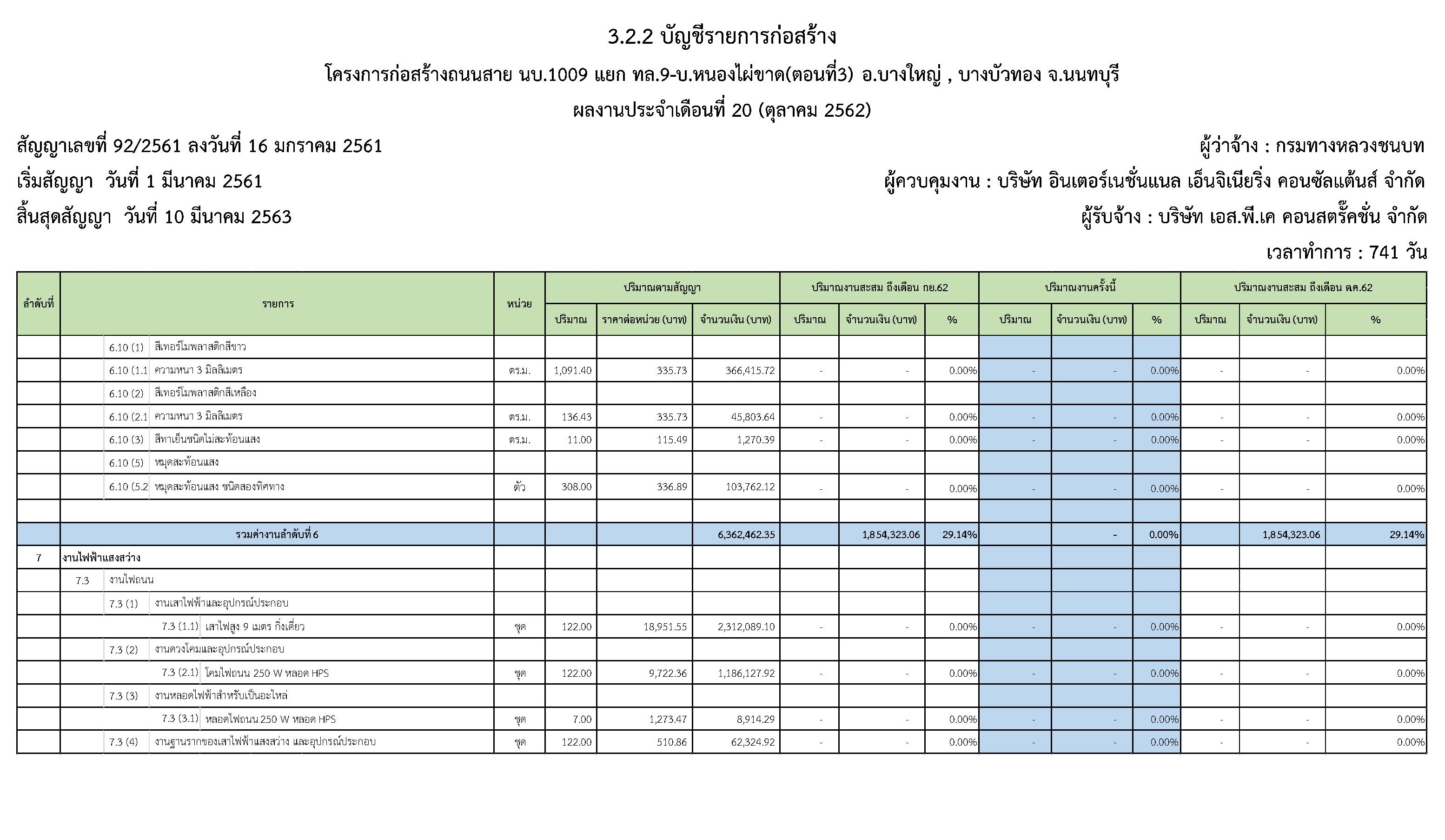 ในระหว่างวันที่1 ตุลาคม2562ถึงวันที่ 31ตุลาคม 2562ผู้รับจ้างได้ดำเนินงานในส่วนต่างๆดังนี้