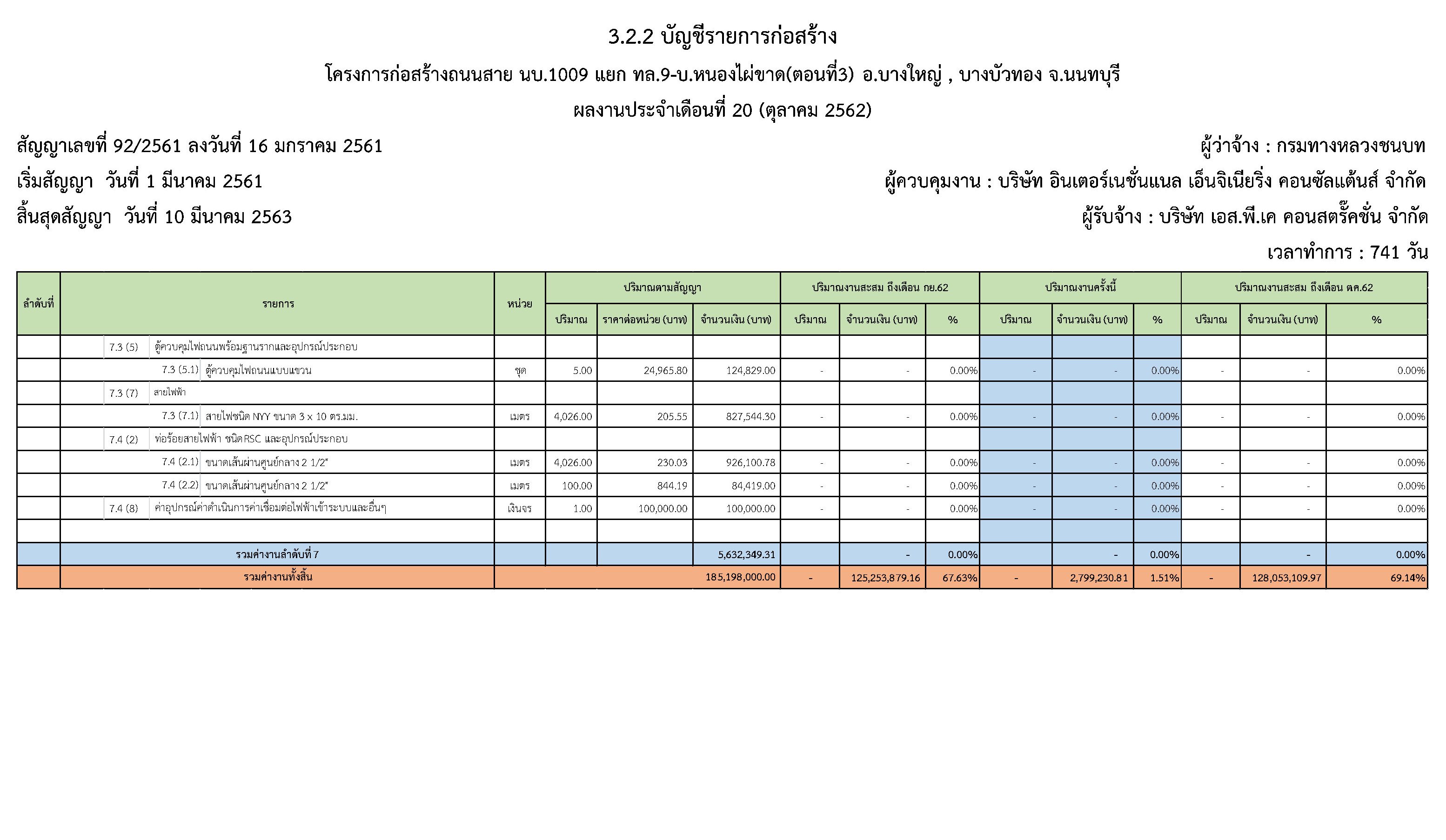 - แผนงานการก่อสร้าง : 7.09 %