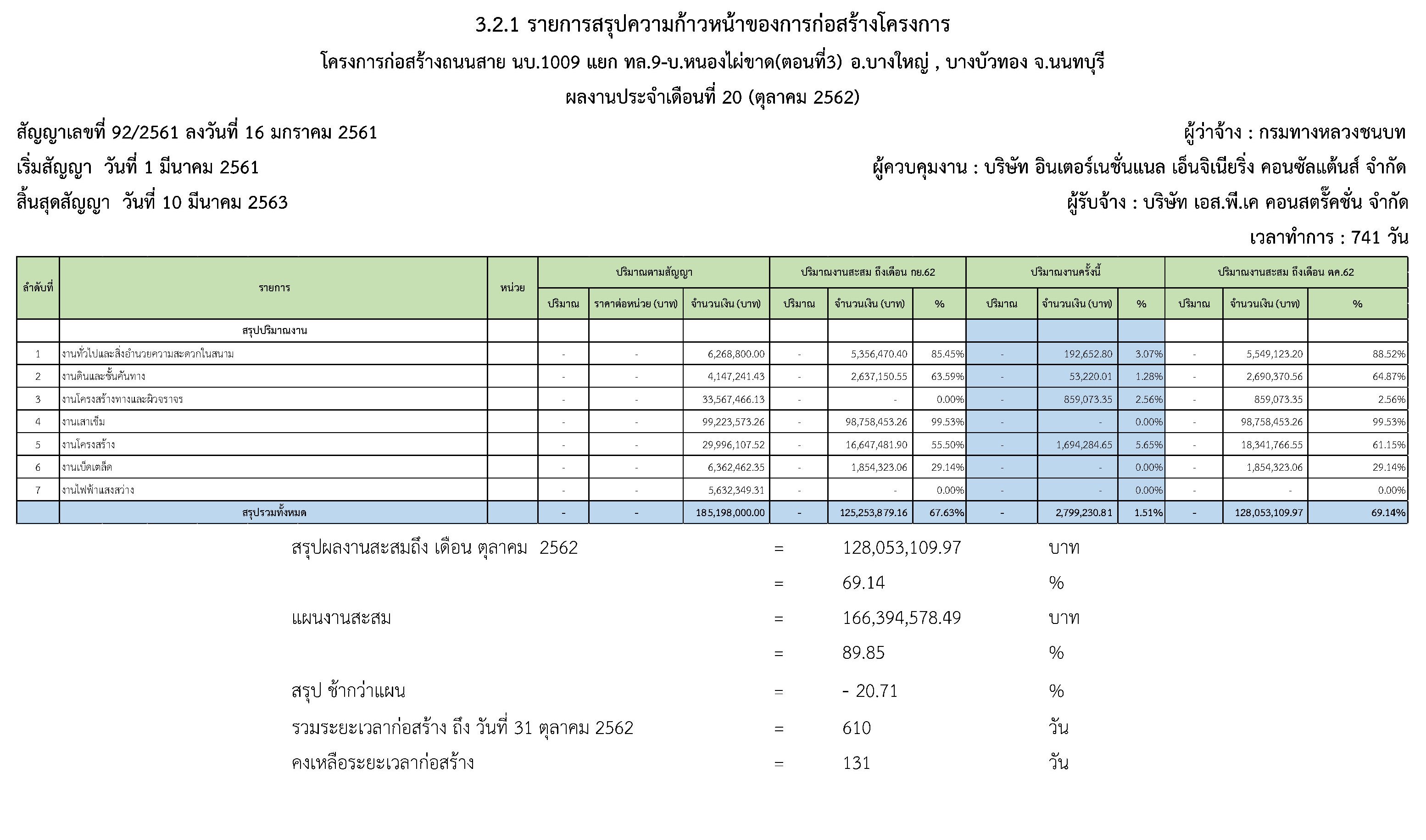 - คงเหลือระยะเวลาดำเนินการก่อสร้าง : 131 วัน