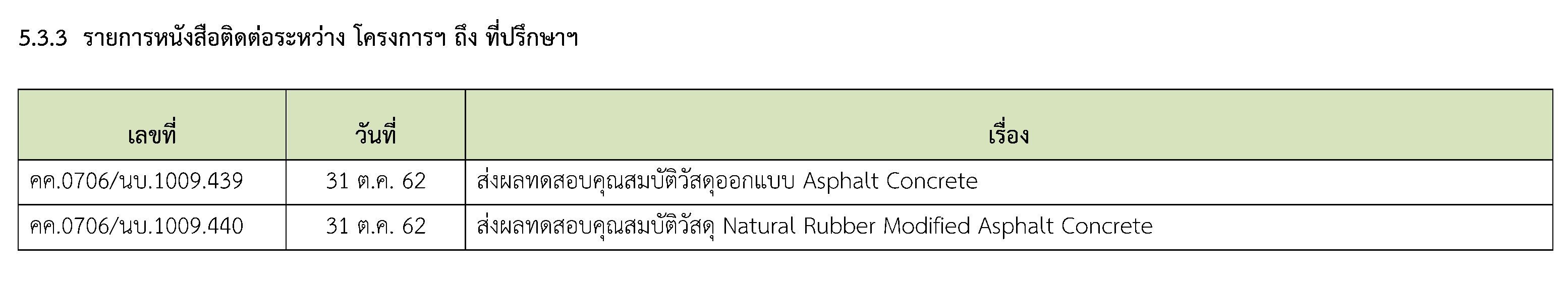 บทที่ 5 รายงานการปฏิบัติการของงานที่ปรึกษา