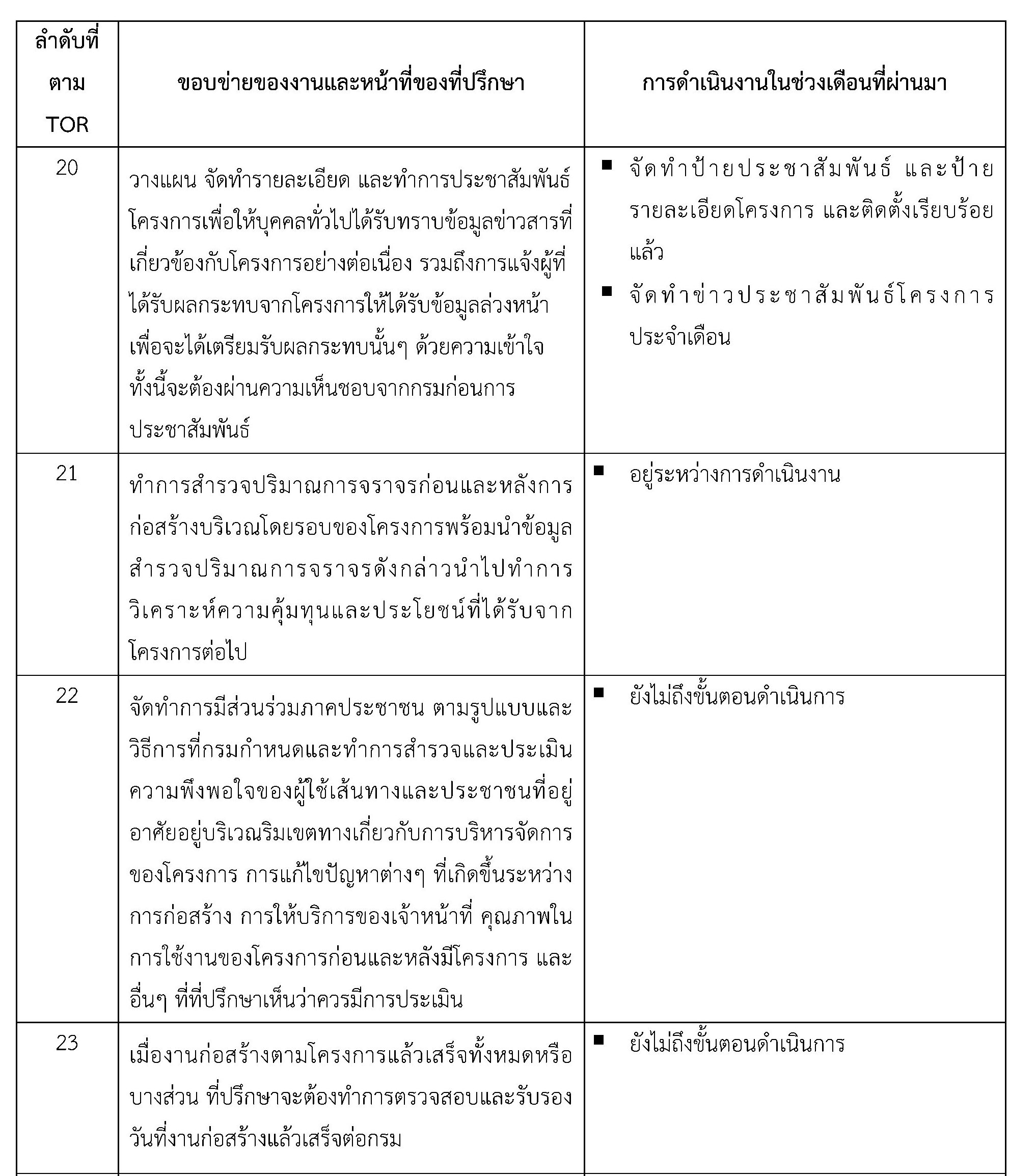 รายงานการปฏิบัติการของงานที่ปรึกษา