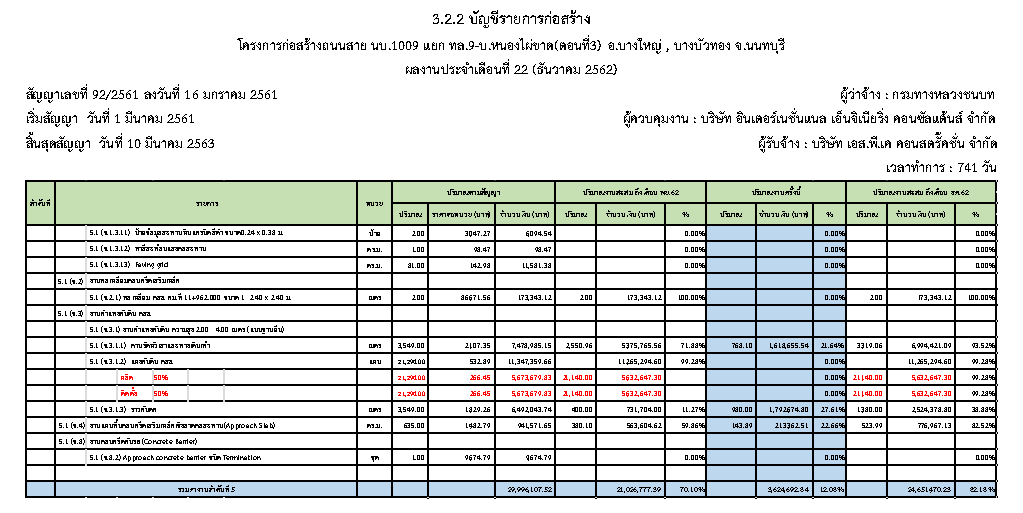 3.2.3ตารางแผนงาน/ผลงานก่อสร้างประจำเดือนธันวาคม 2562