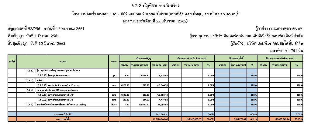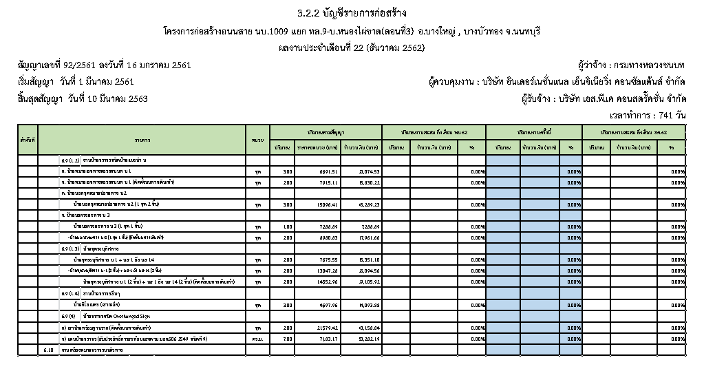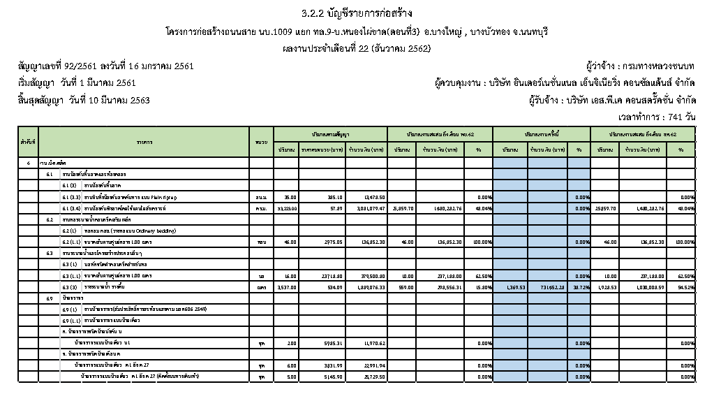 - แผนงานการก่อสร้าง : 2.57 %