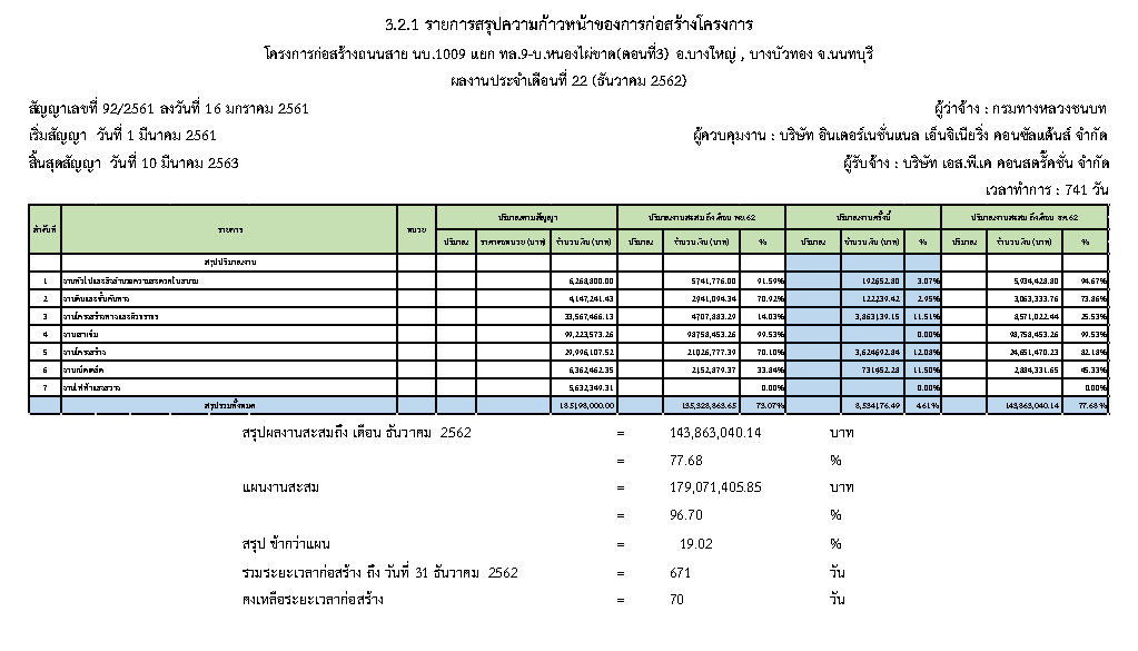 3.1 สรุปผลความก้าวหน้าของงานก่อสร้างโครงการ