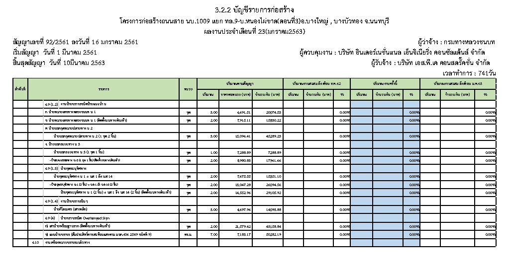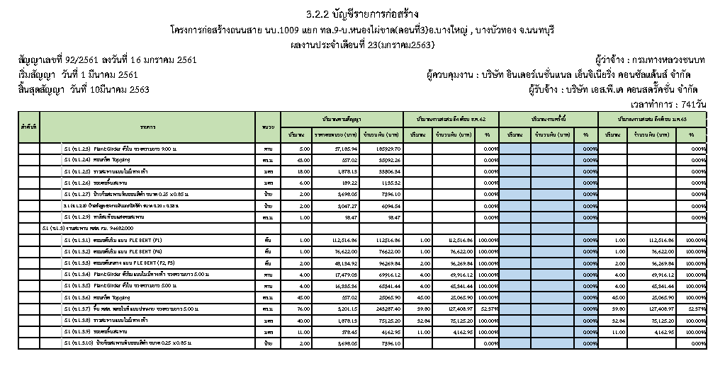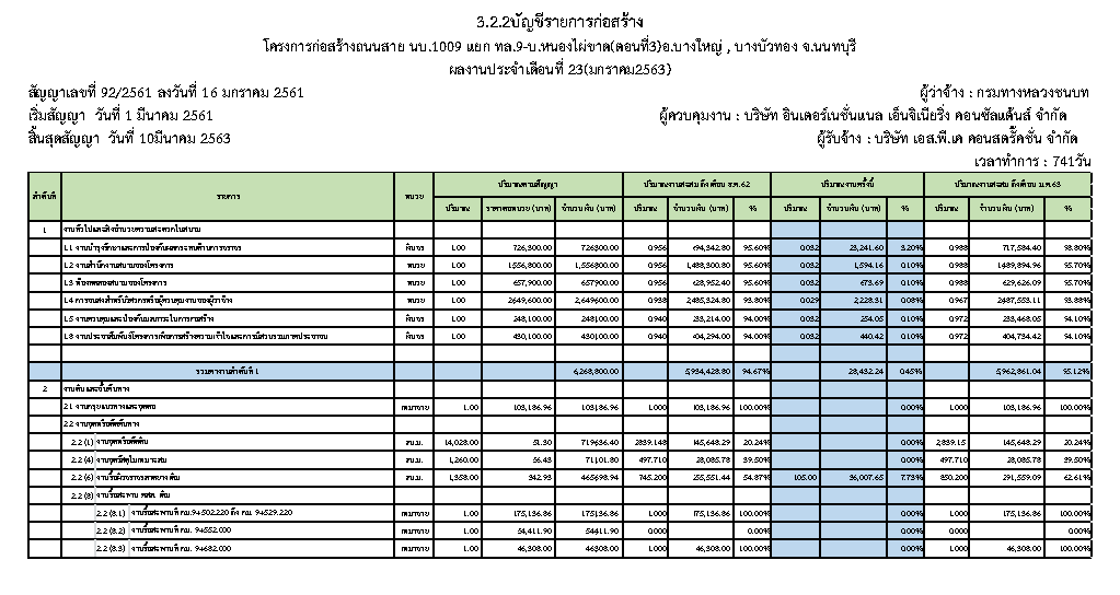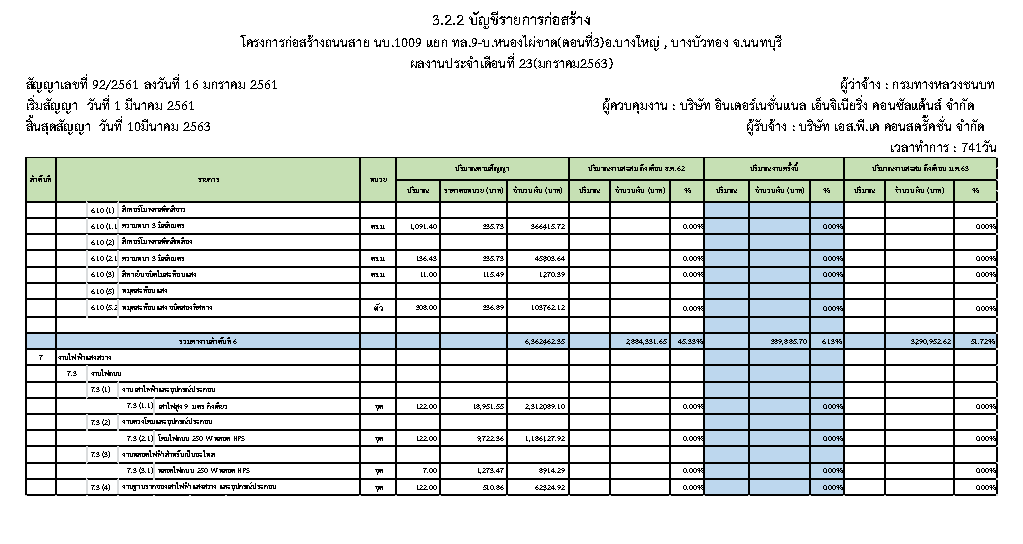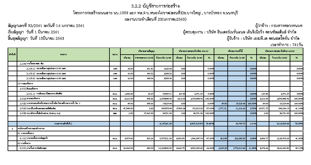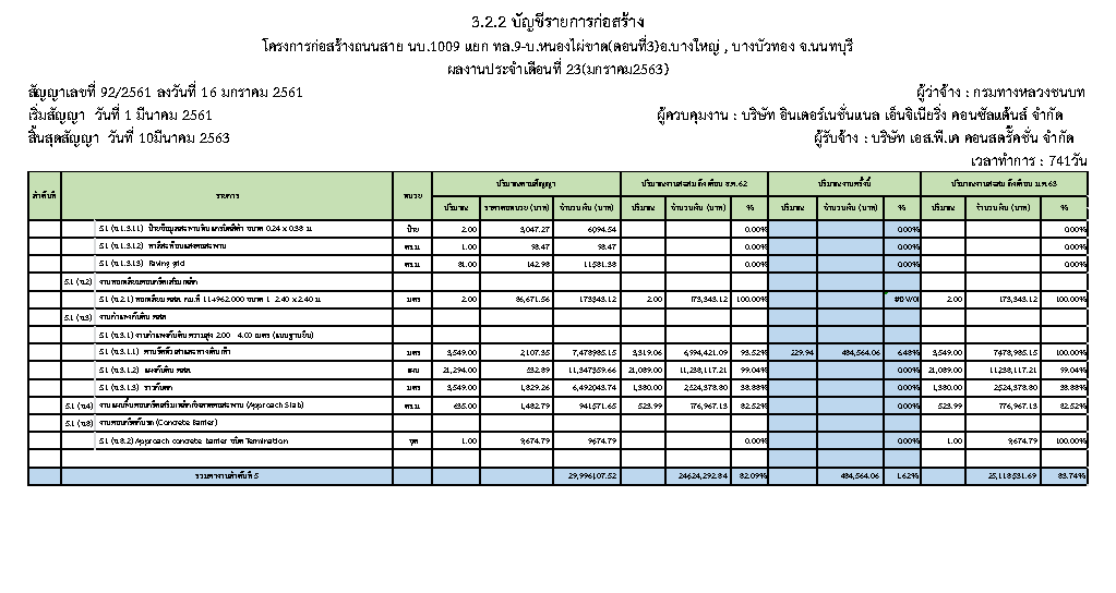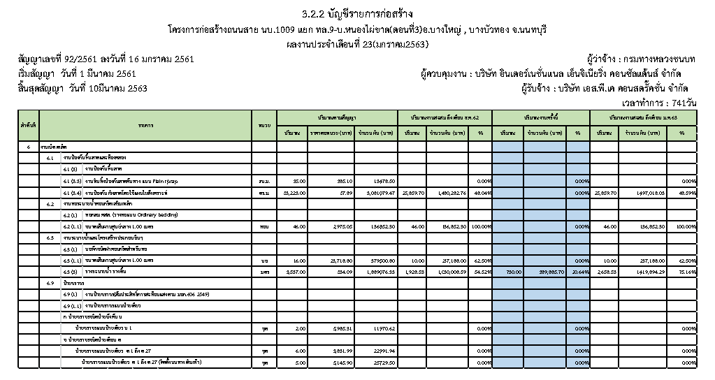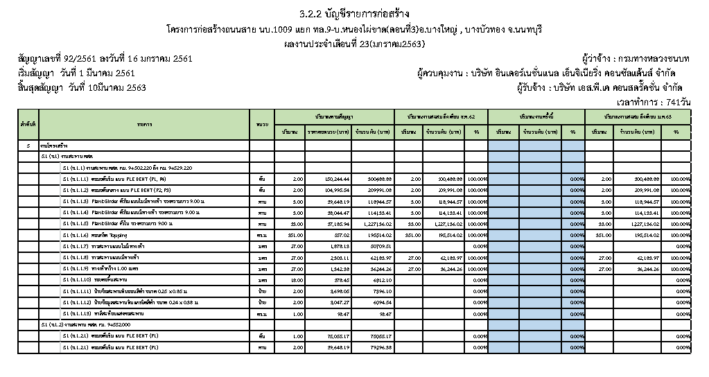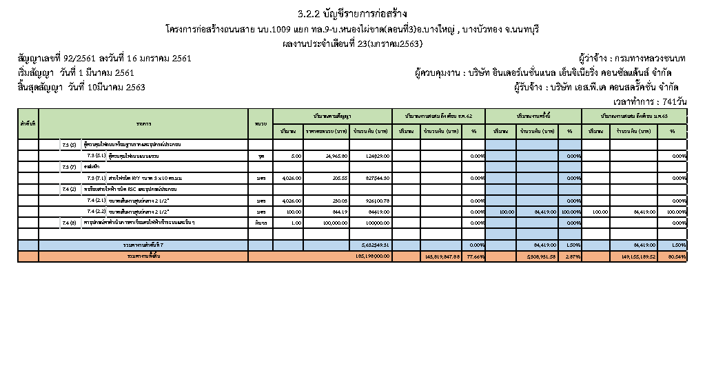 - ระยะเวลาก่อสร้างตามสัญญา : 741 วัน