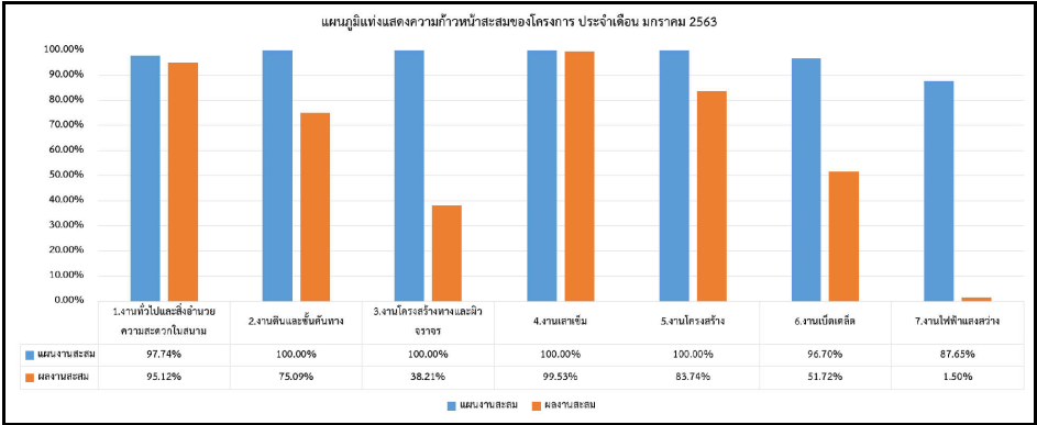 ความก้าวหน้าสะสมของโครงการ ตั้งแต่เริ่มสัญญา จนถึงวันที่ 31ม.ค. 2563