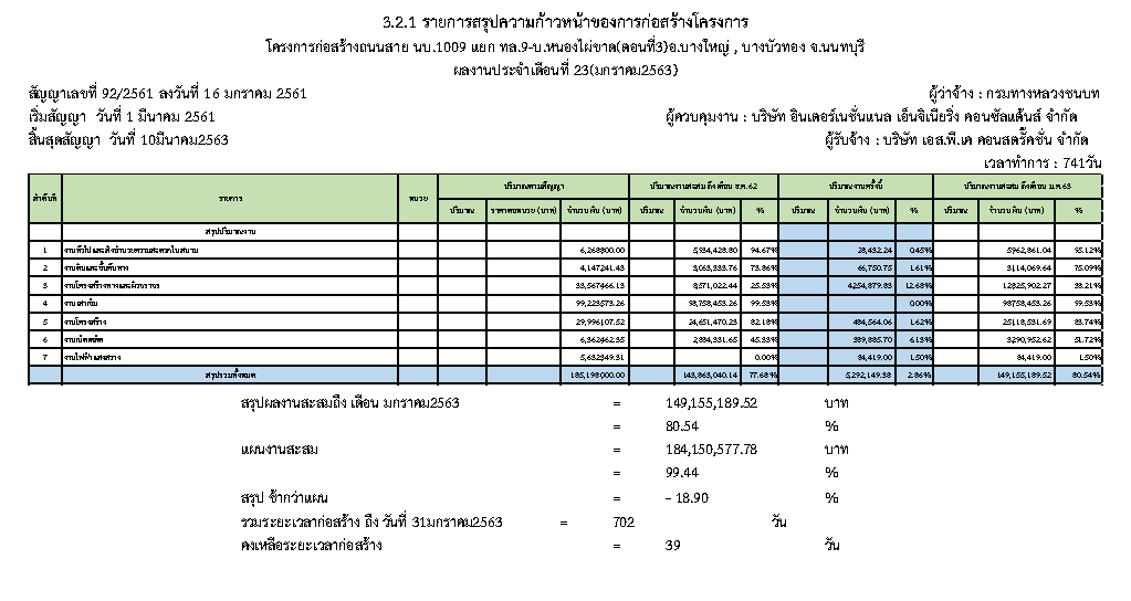 3.1 สรุปผลความก้าวหน้าของงานก่อสร้างโครงการ