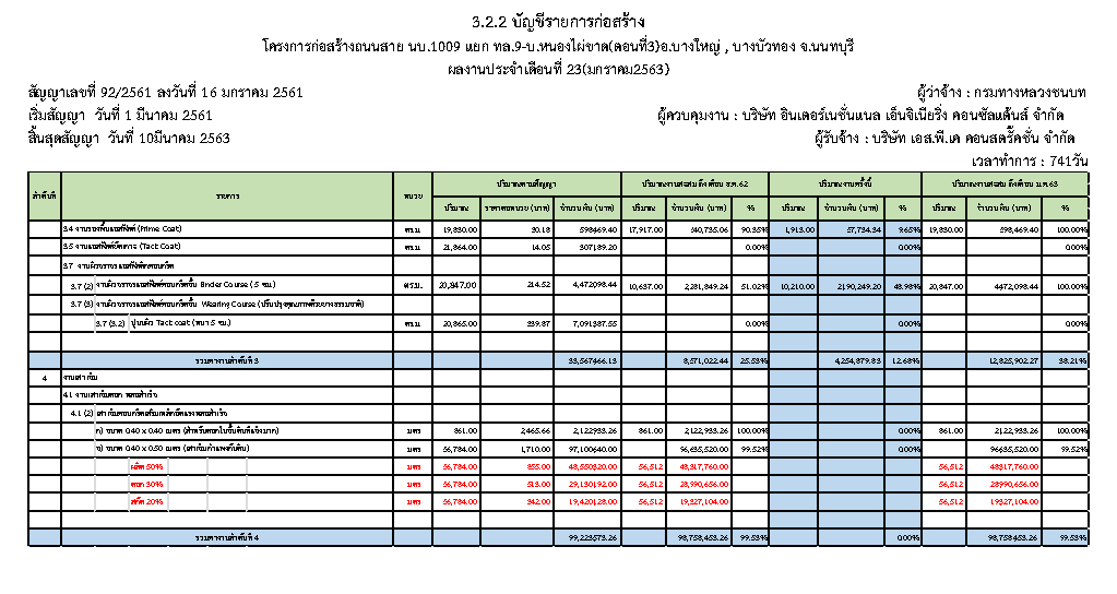 - แผนงานการก่อสร้าง : 2.74 %