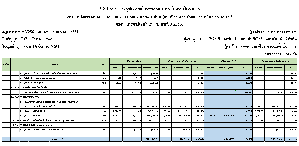 3.1 สรุปผลความก้าวหน้าของงานก่อสร้างโครงการ