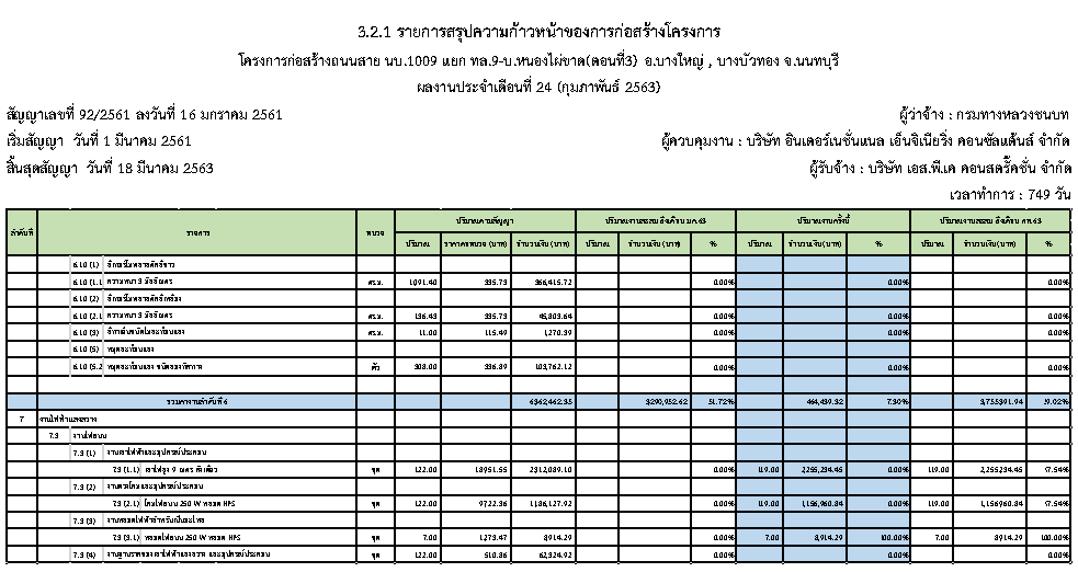 - ระยะเวลาก่อสร้างตามสัญญา : 749 วัน