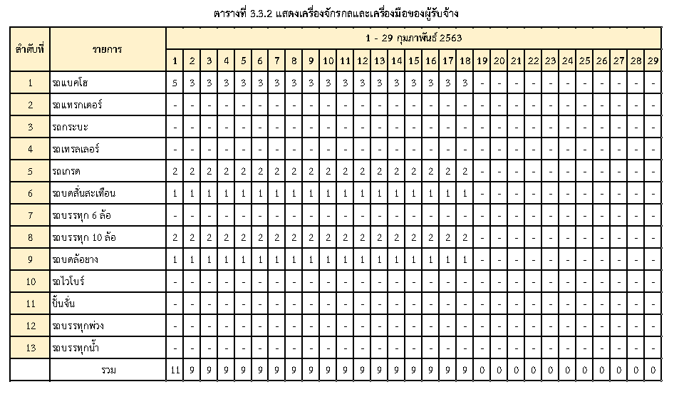 ในระหว่างวันที่1 กุมภาพันธ์2563ถึงวันที่ 29 กุมภาพันธ์2563ผู้รับจ้างได้ดำเนินงานในส่วนต่างๆดังนี้